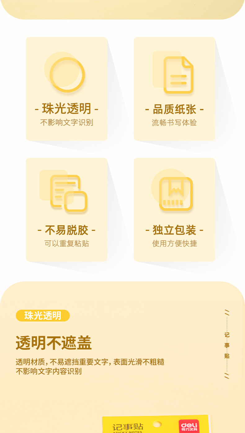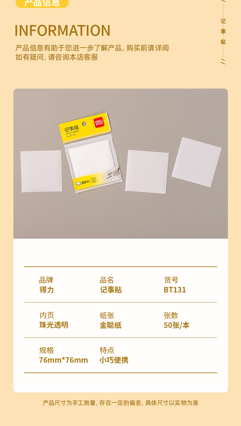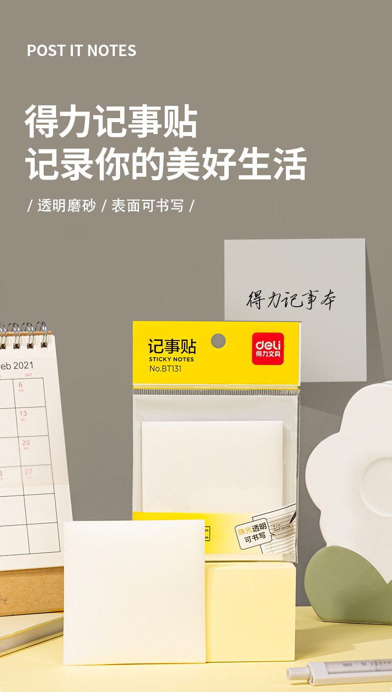 델리 BT131 메모장 76*76mm/50 (투명) 자체 접착 메시지 책 사무용품