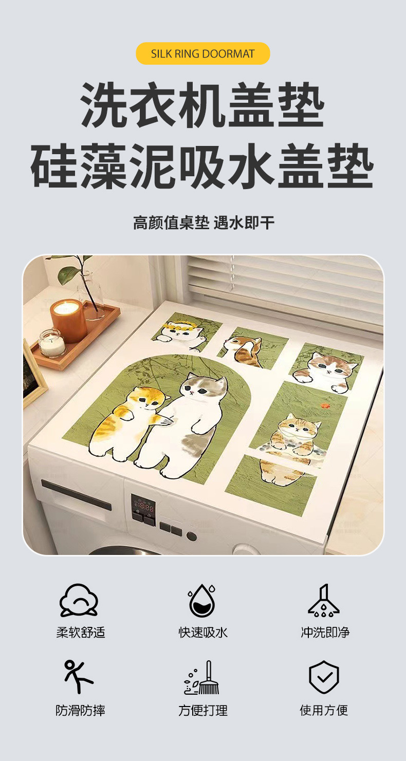 만화 디자인 규조토 세탁기 커버 매트 주방 조리대 보호 매트 전자레인지 냉장고 방진 매트 흡수성 미끄럼 방지 매트