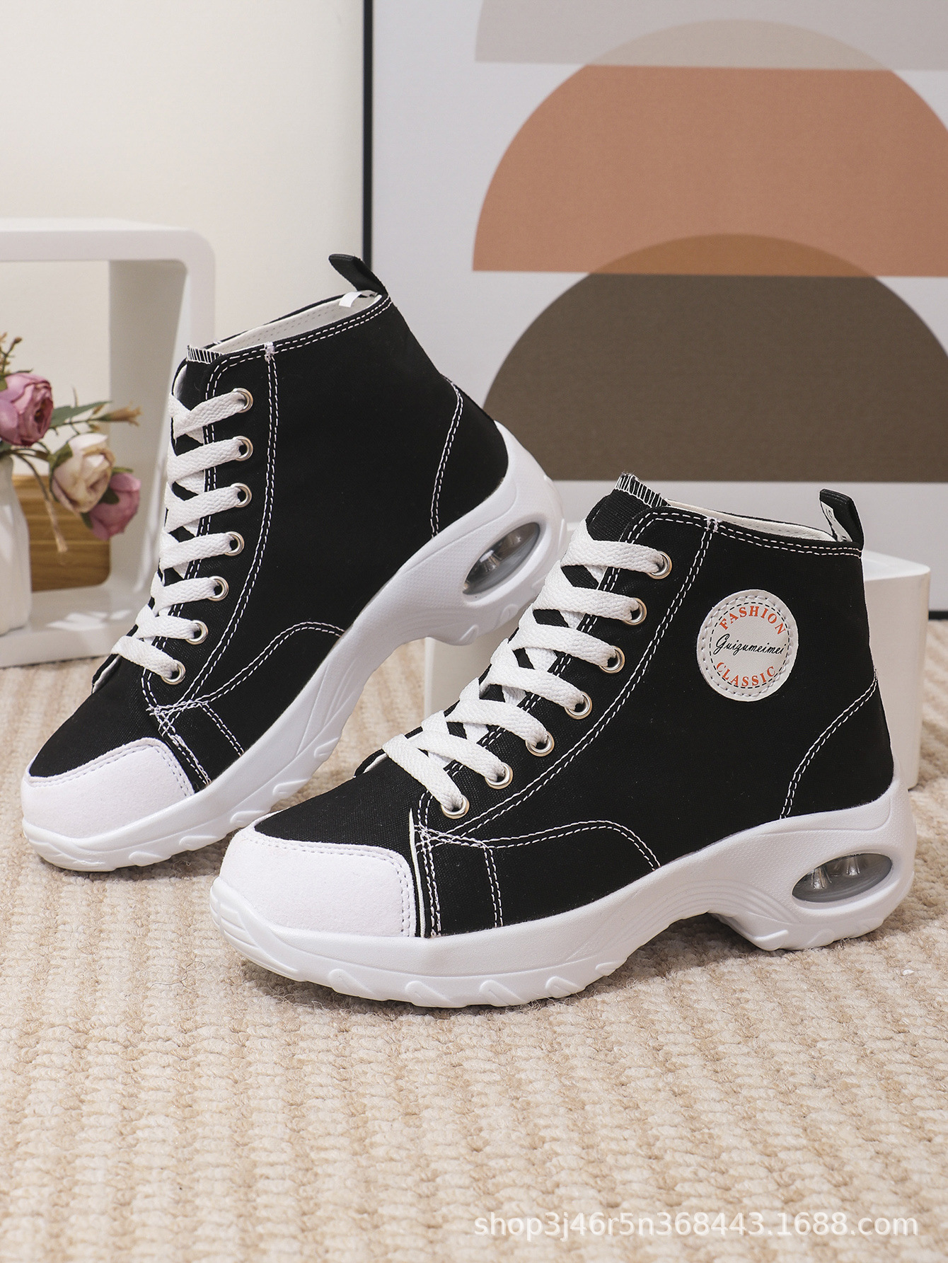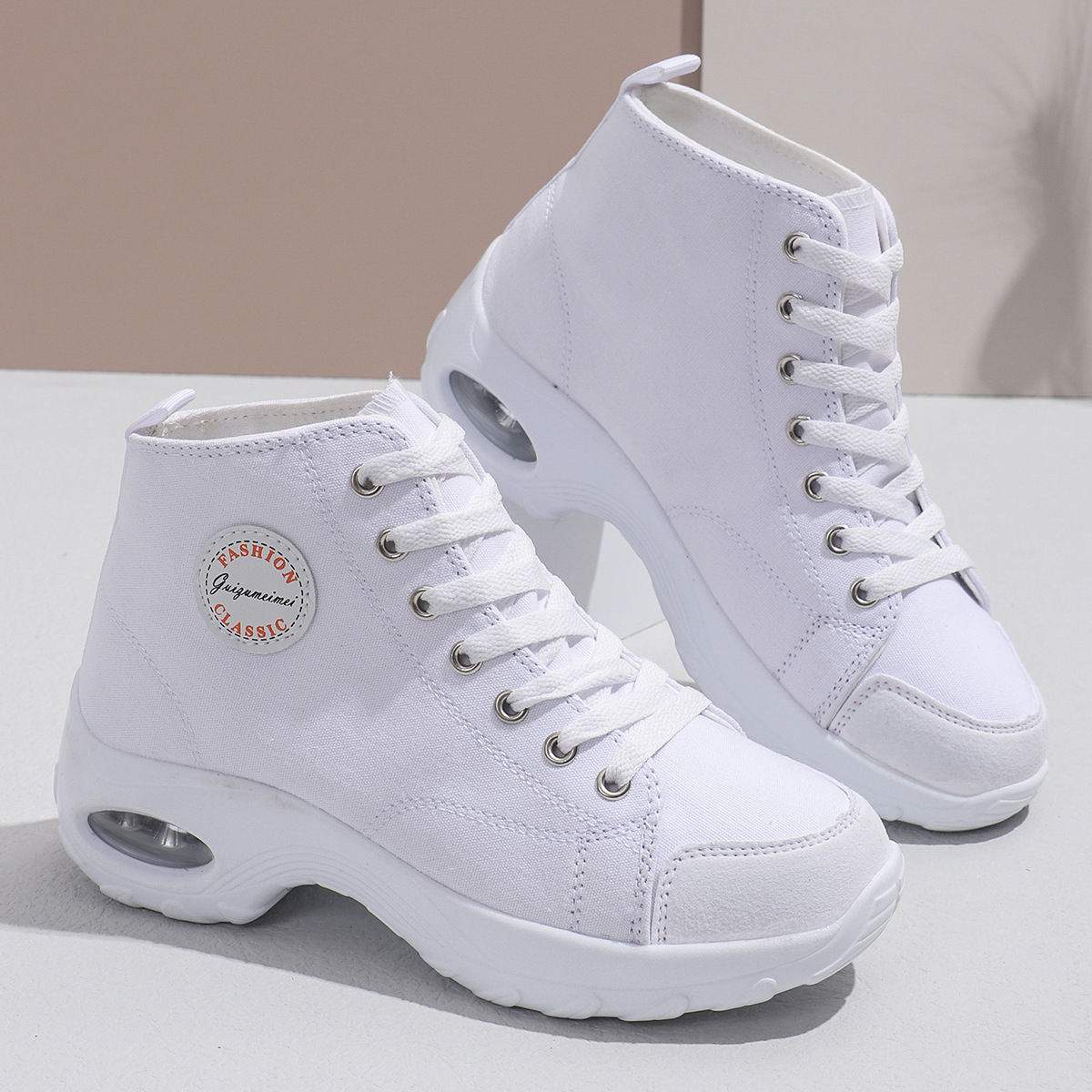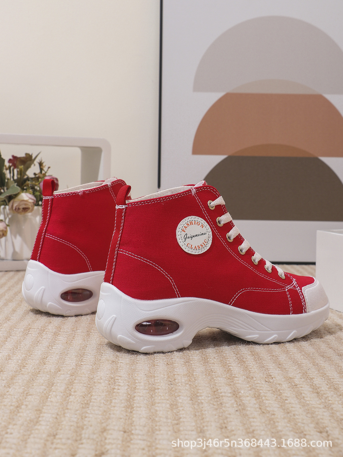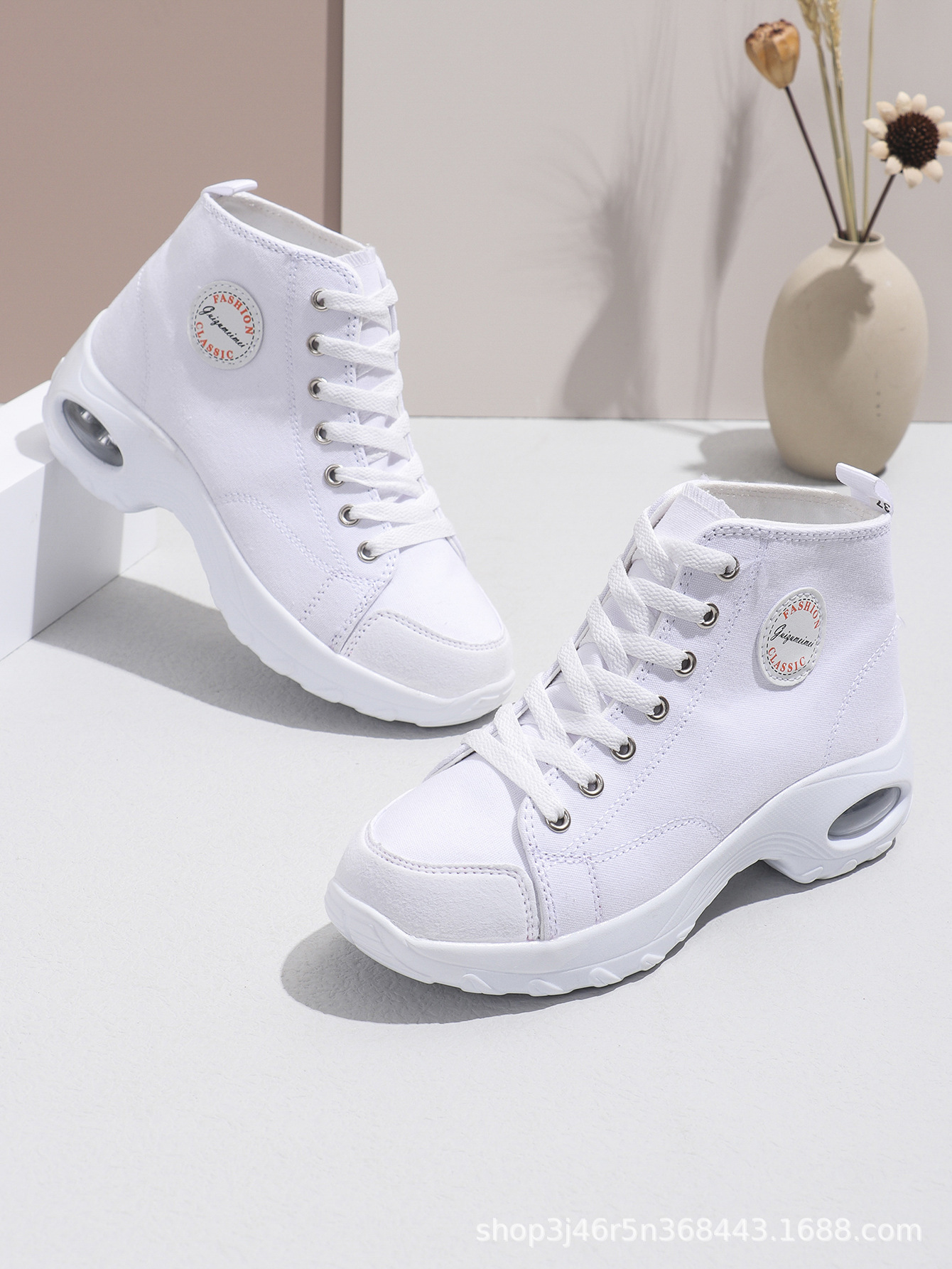 하이탑 키높이 여성 캔버스화, 패셔너블하고 다재다능한 야외용 내마모성 신상품, 통기성 좋은 진짜 에어쿠션 스포츠 캐주얼 스타일