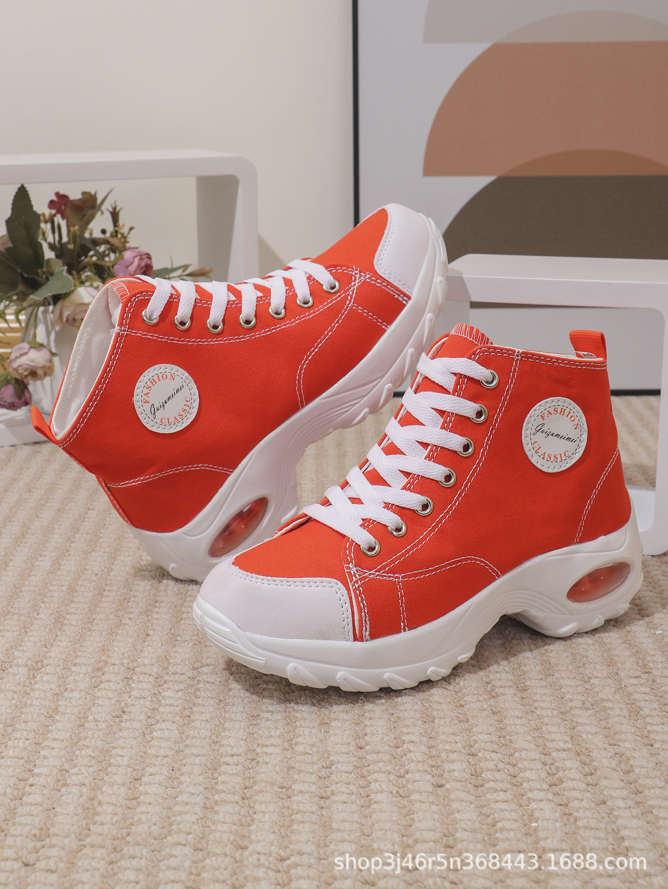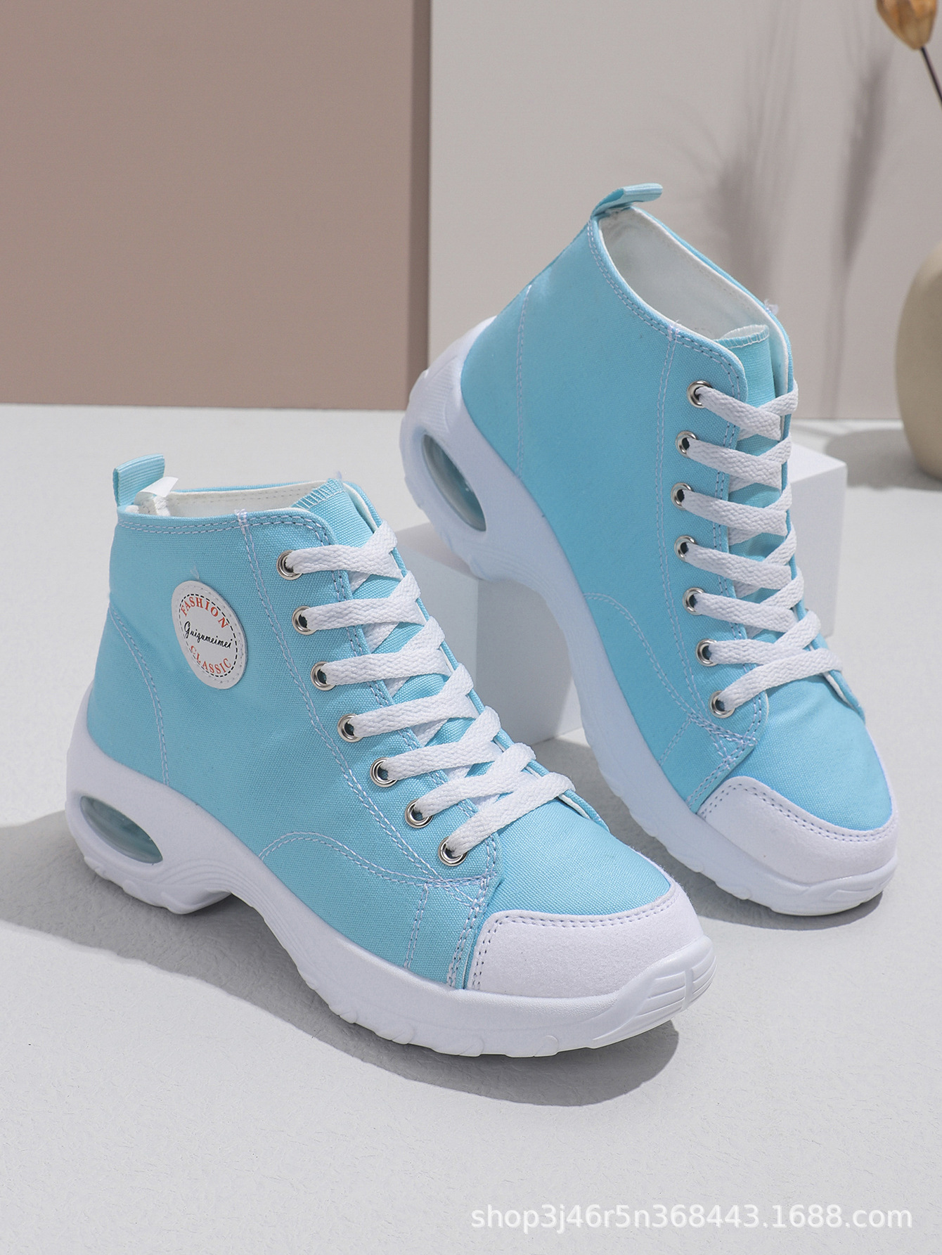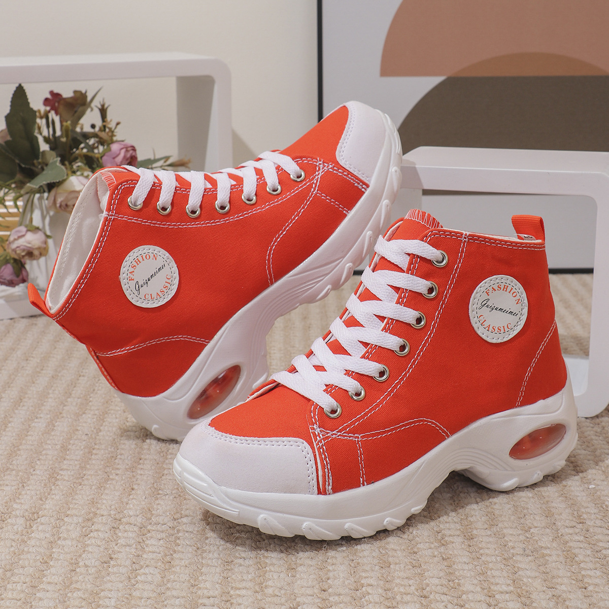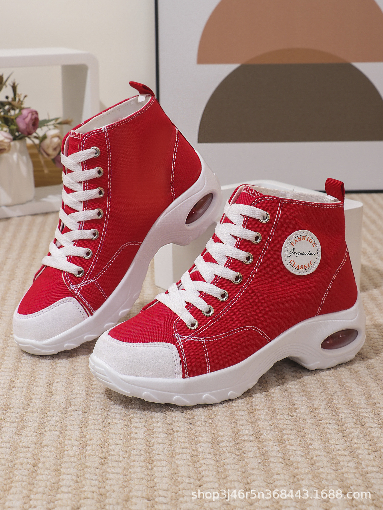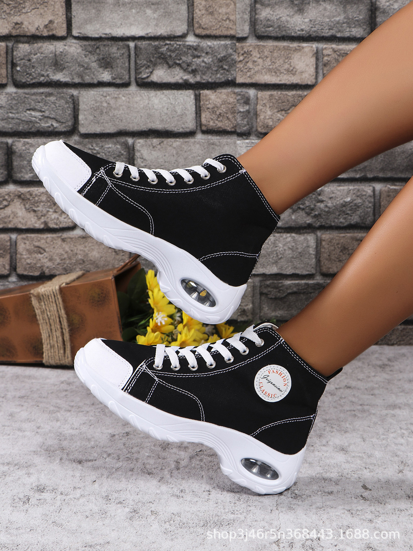 하이탑 키높이 여성 캔버스화, 패셔너블하고 다재다능한 야외용 내마모성 신상품, 통기성 좋은 진짜 에어쿠션 스포츠 캐주얼 스타일