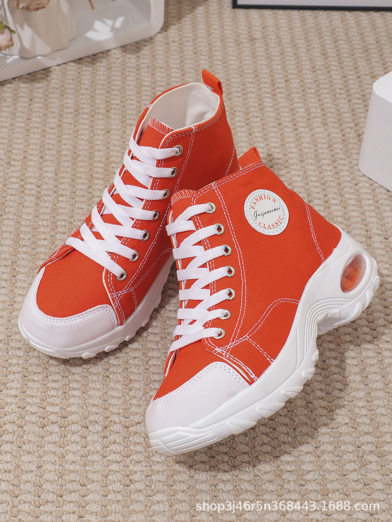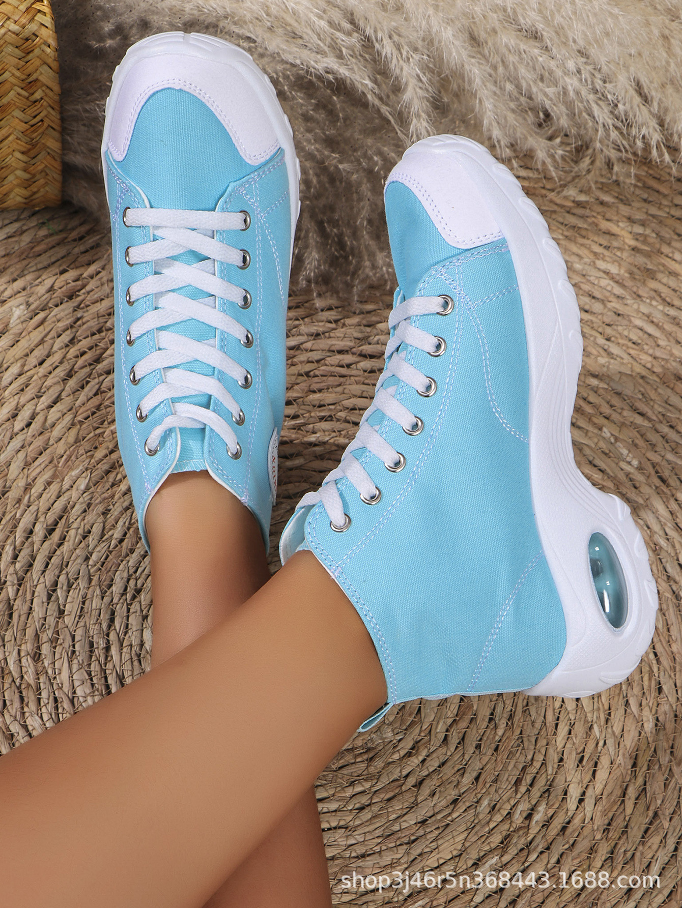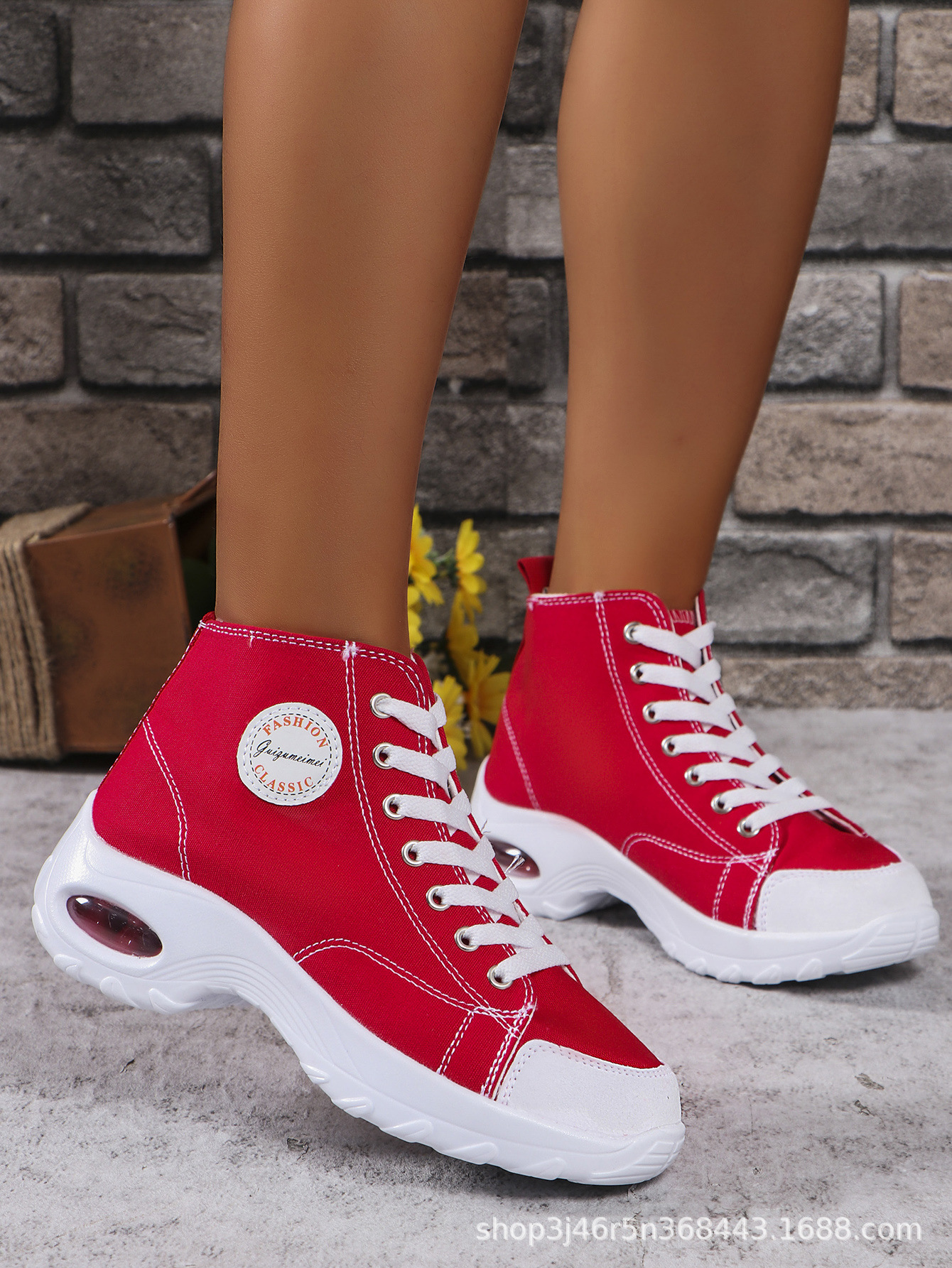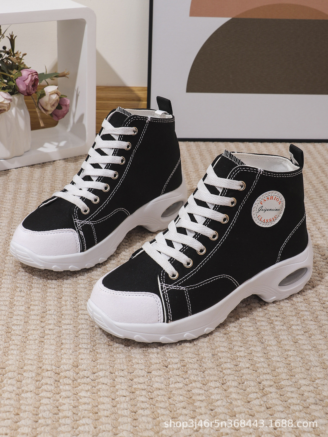 하이탑 키높이 여성 캔버스화, 패셔너블하고 다재다능한 야외용 내마모성 신상품, 통기성 좋은 진짜 에어쿠션 스포츠 캐주얼 스타일