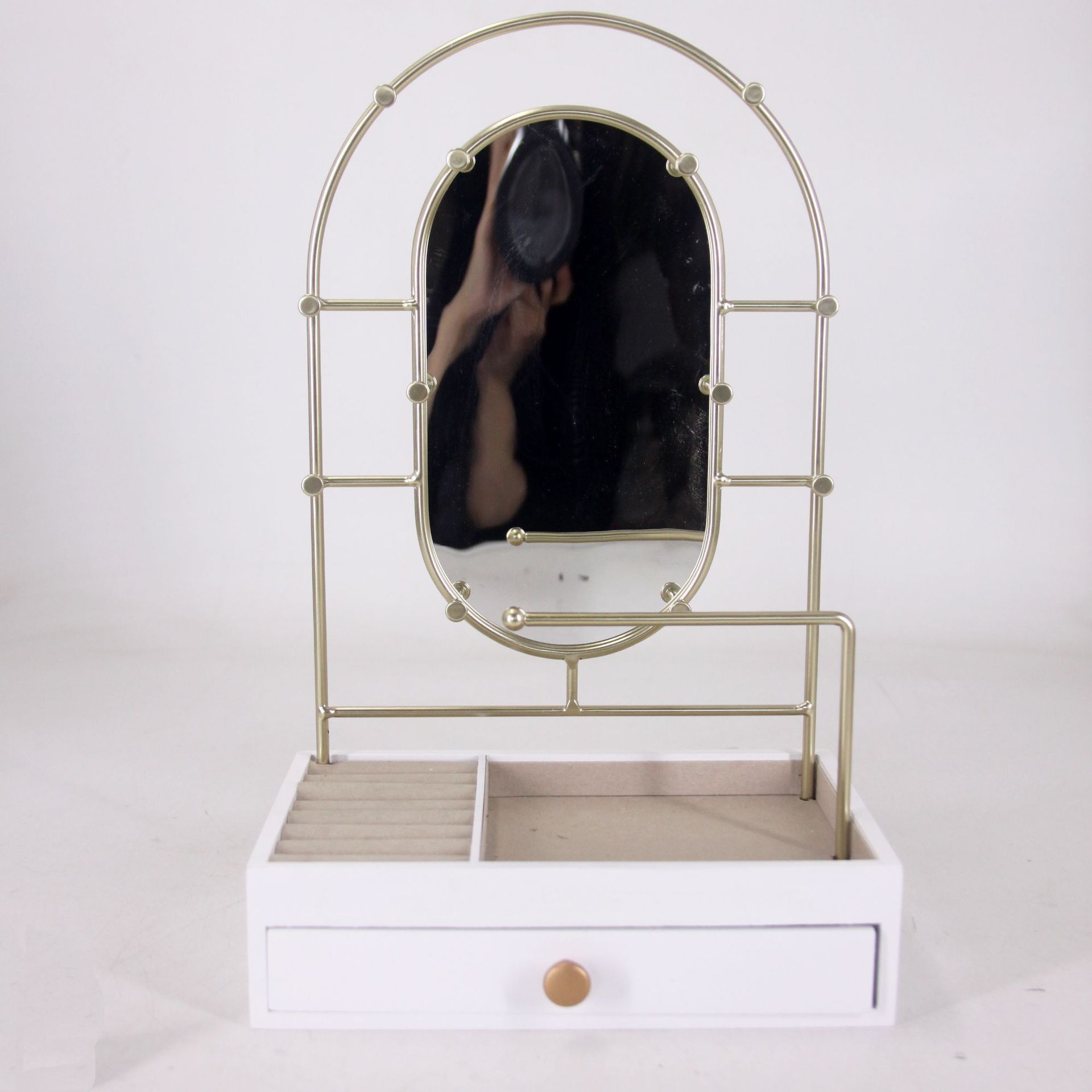 단철 이중 보석 랙, 고급 목걸이 랙, 거울 창 디스플레이 소품이 있는 보석 디스플레이 랙