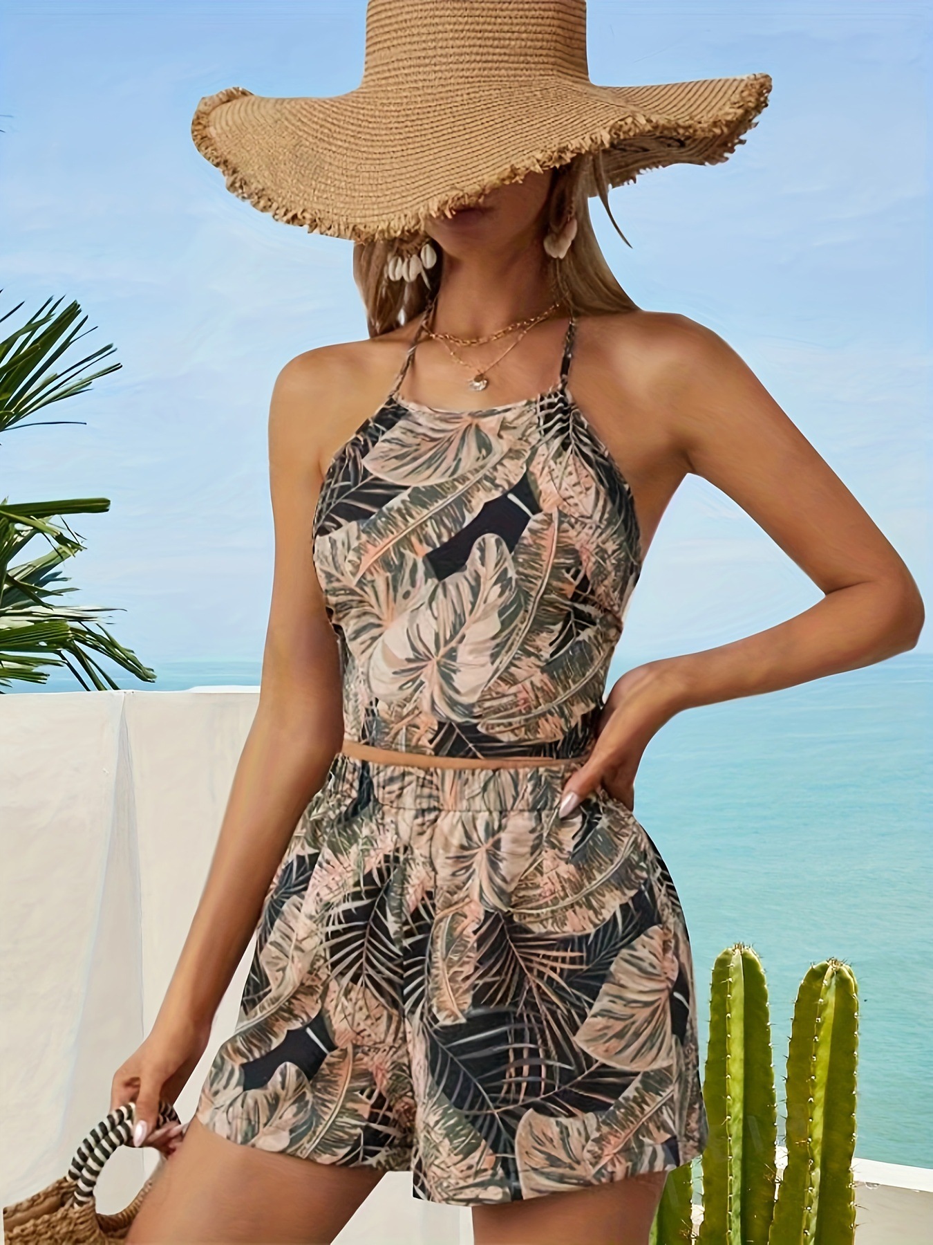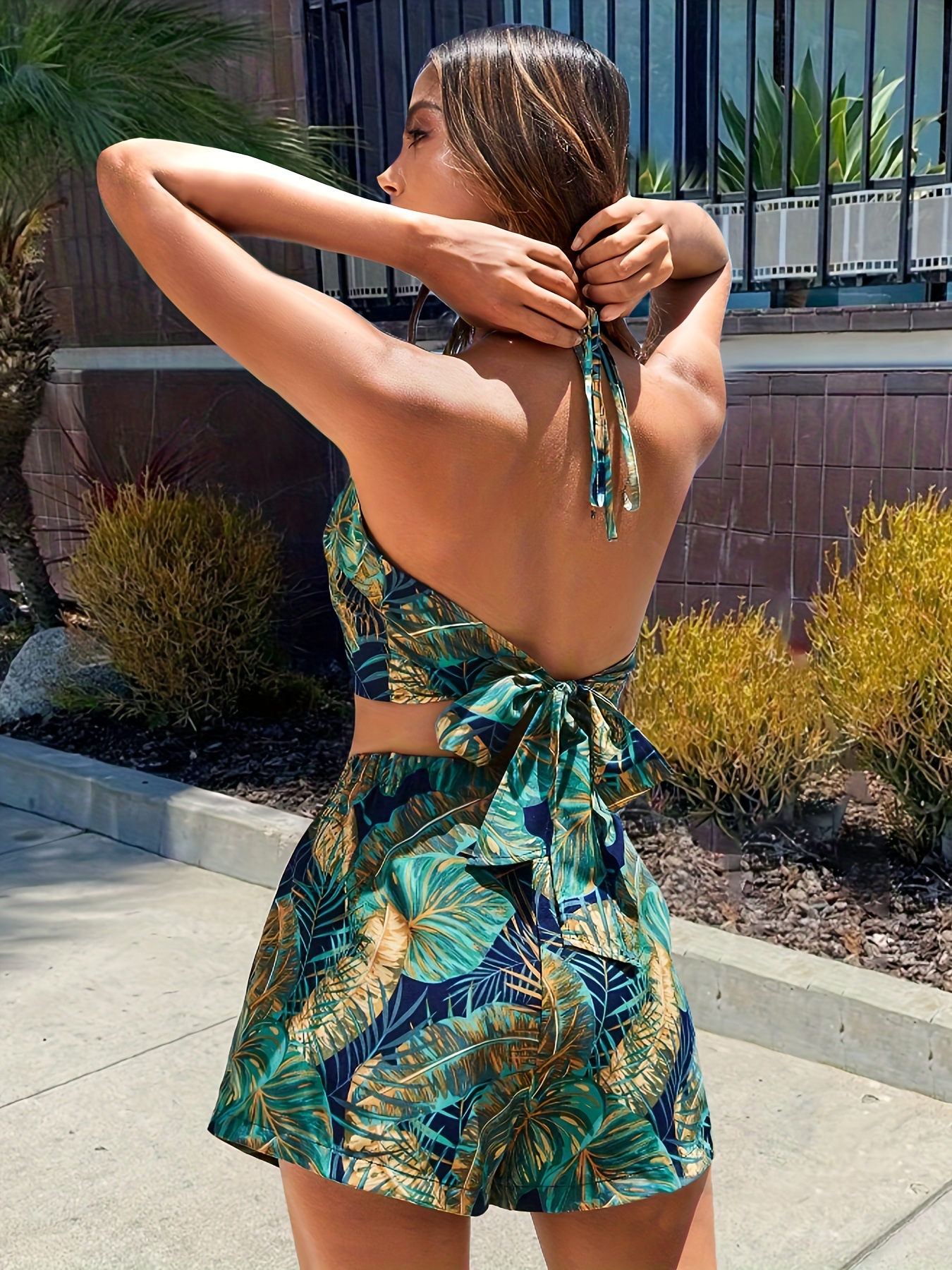 대외 무역 유럽과 미국 여성의 뜨거운 판매 인쇄 세트 국경 아마존 패션 스트랩리스 넥 백리스 캐주얼 반바지