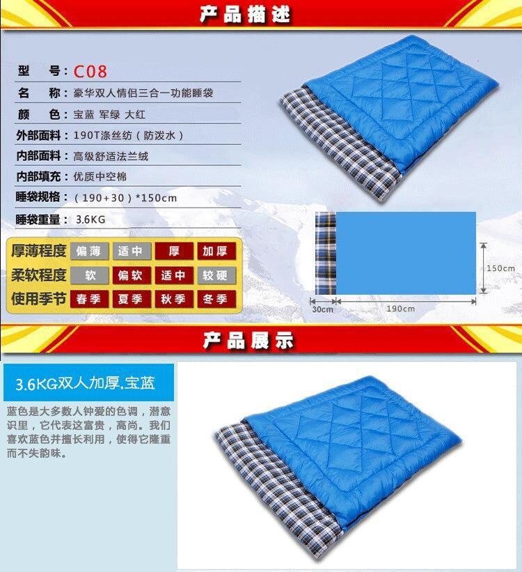 러킹 판매 커플 더블 슬리핑 백 성인 실내 두꺼운 야외 캠핑 가을과 겨울 캠핑 여행 더러운