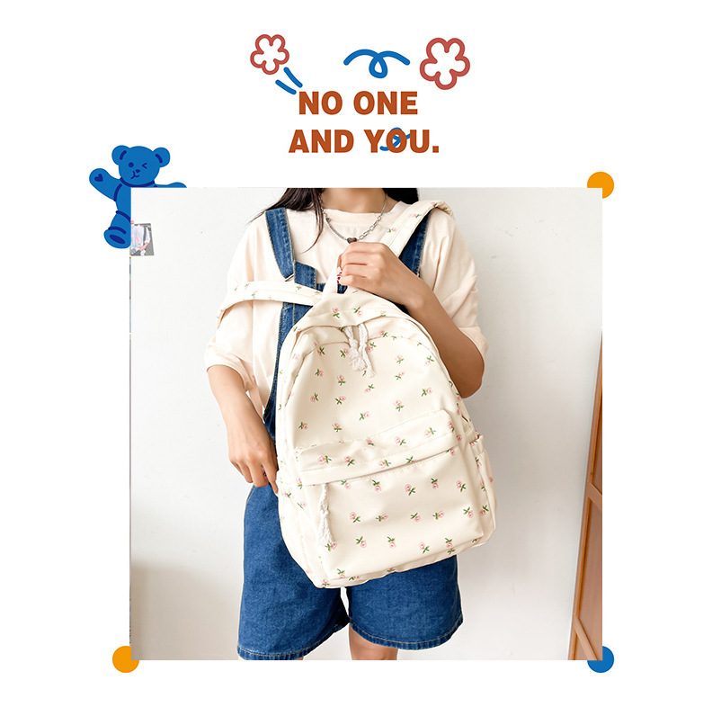 새로운 귀여운 소녀 학교 가방 캠퍼스 고등학교 학생 가방 배낭 한국 대용량 작은 꽃 여성 배낭