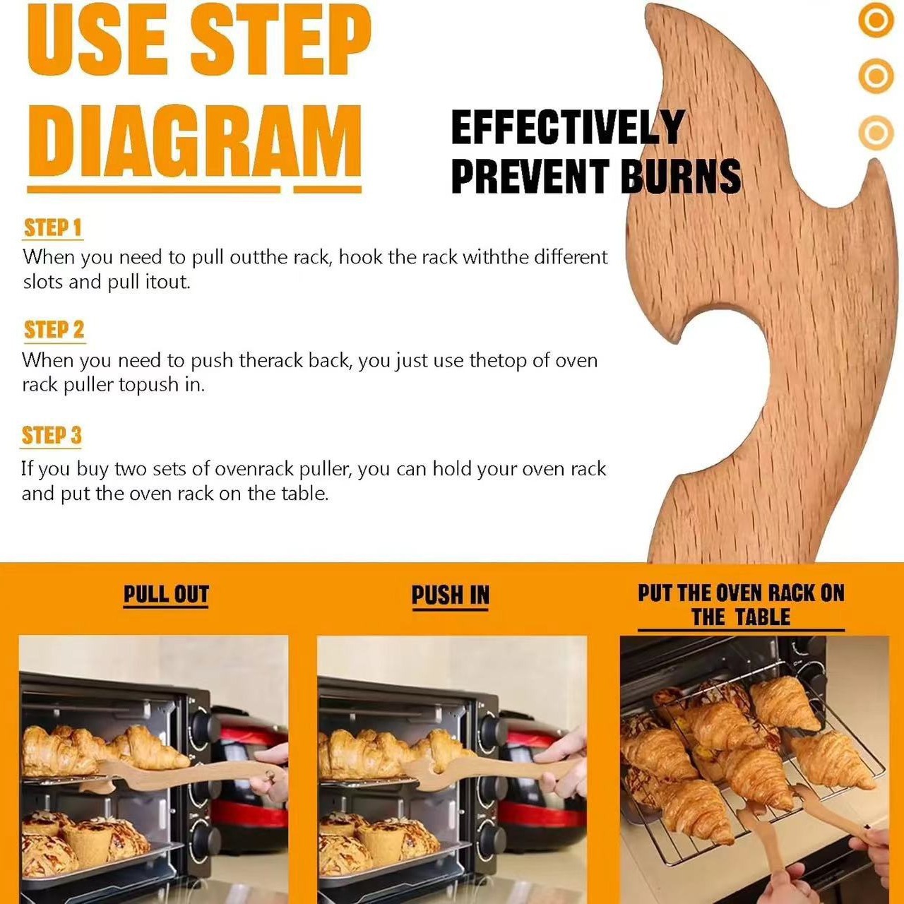오븐 랙 풀러 나무 오븐 랙 방지 화상 푸시 및 풀 도구 주방 오븐 공기 프라이어