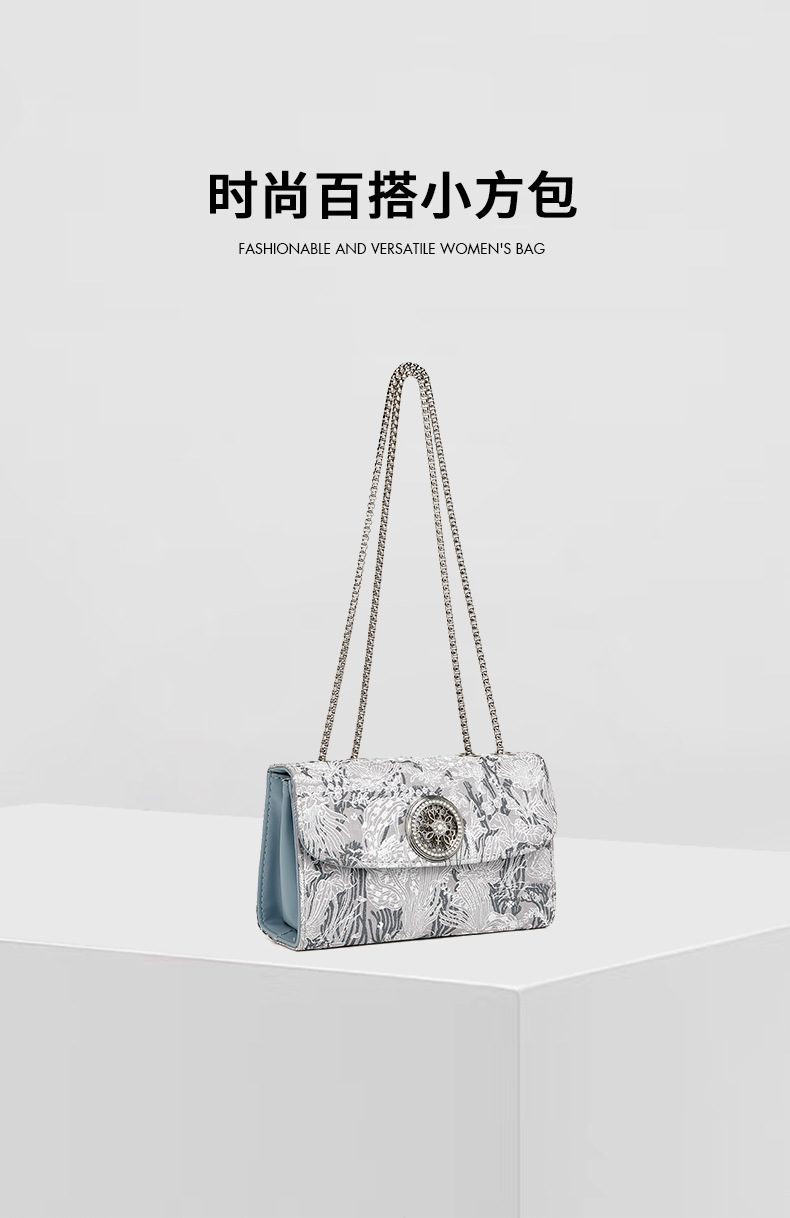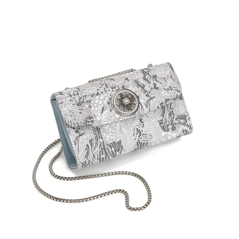 2024 새로운 스타일 Guofeng 자수 작은 스퀘어 백 라이트 럭셔리 패션 여성 가방 다이아몬드 박힌 틈새 간단한 체인 어깨 크로스 바디 백