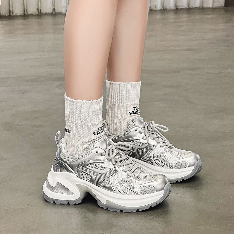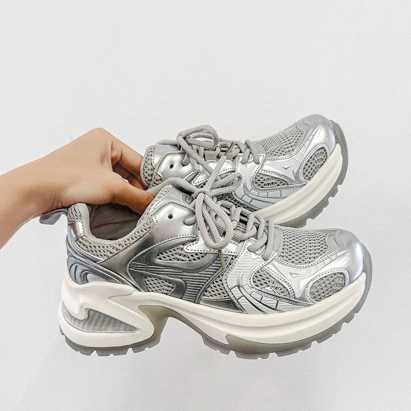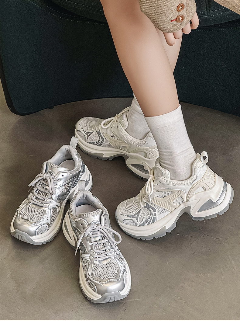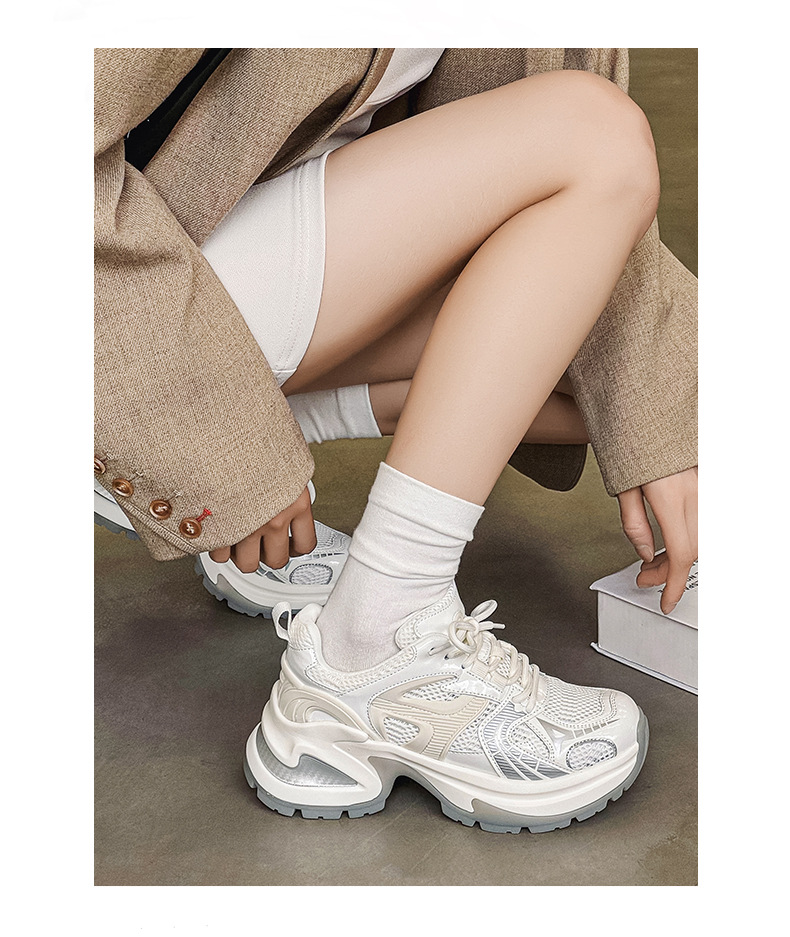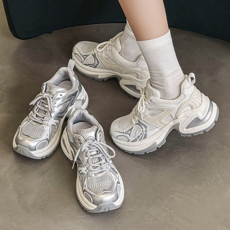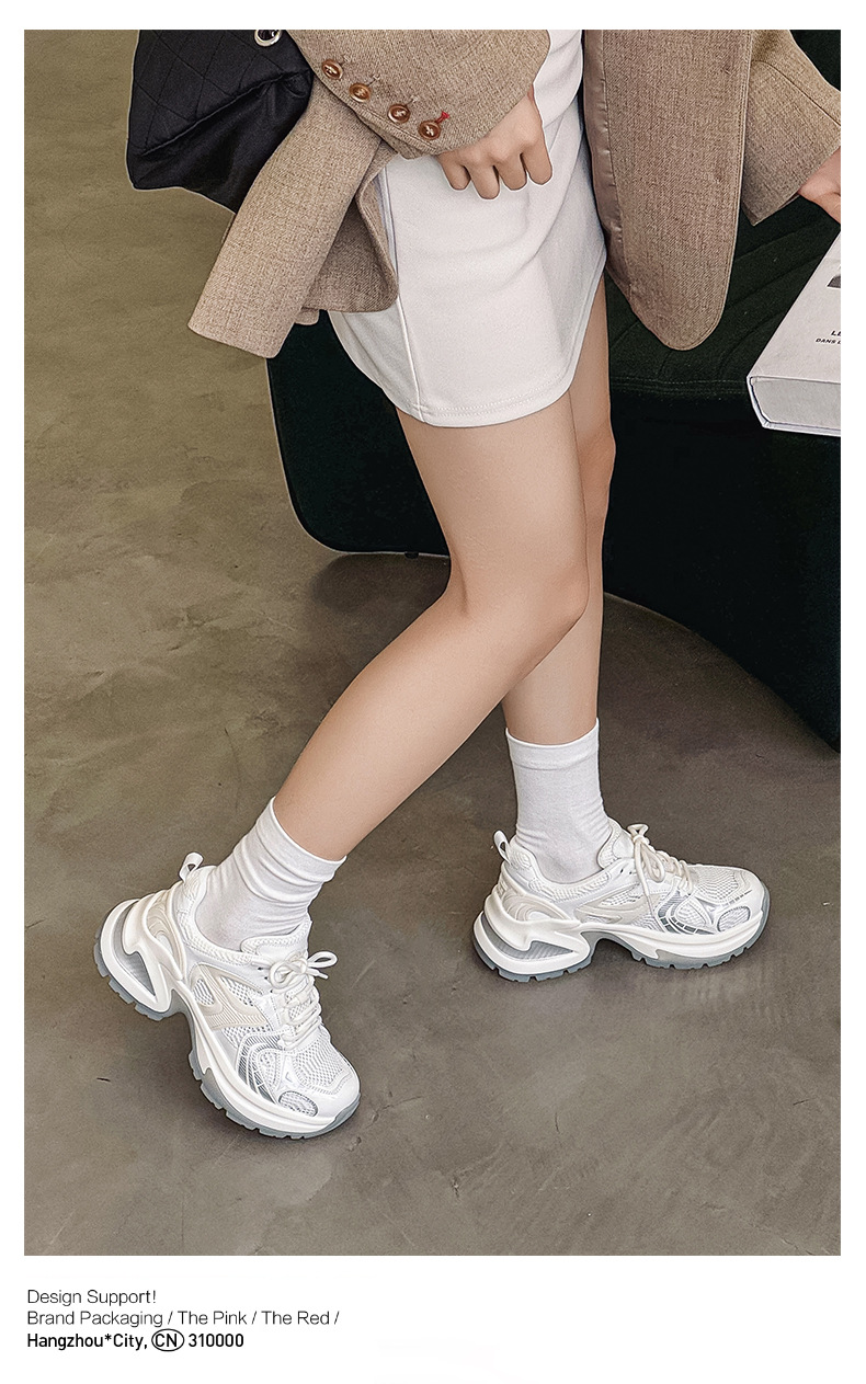 두꺼운 밑창 토르 신발 여성의 2024 여름 새로운 스타일 작은 내부 높이 증가 런닝 신발 높은 얼굴 가치 운동화 통기성 여성