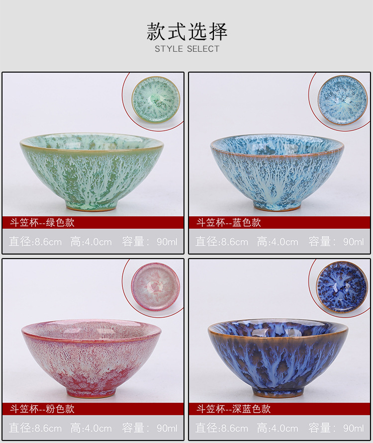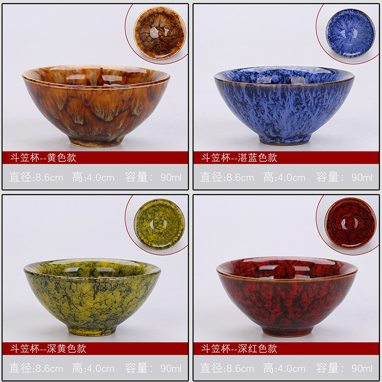 Jianzhan 티컵 비즈니스 선물 단일 가마 변화 티 컵 마스터 선물 상자 세라믹 티 그릇 쿵푸 티 세트 차 시음 컵