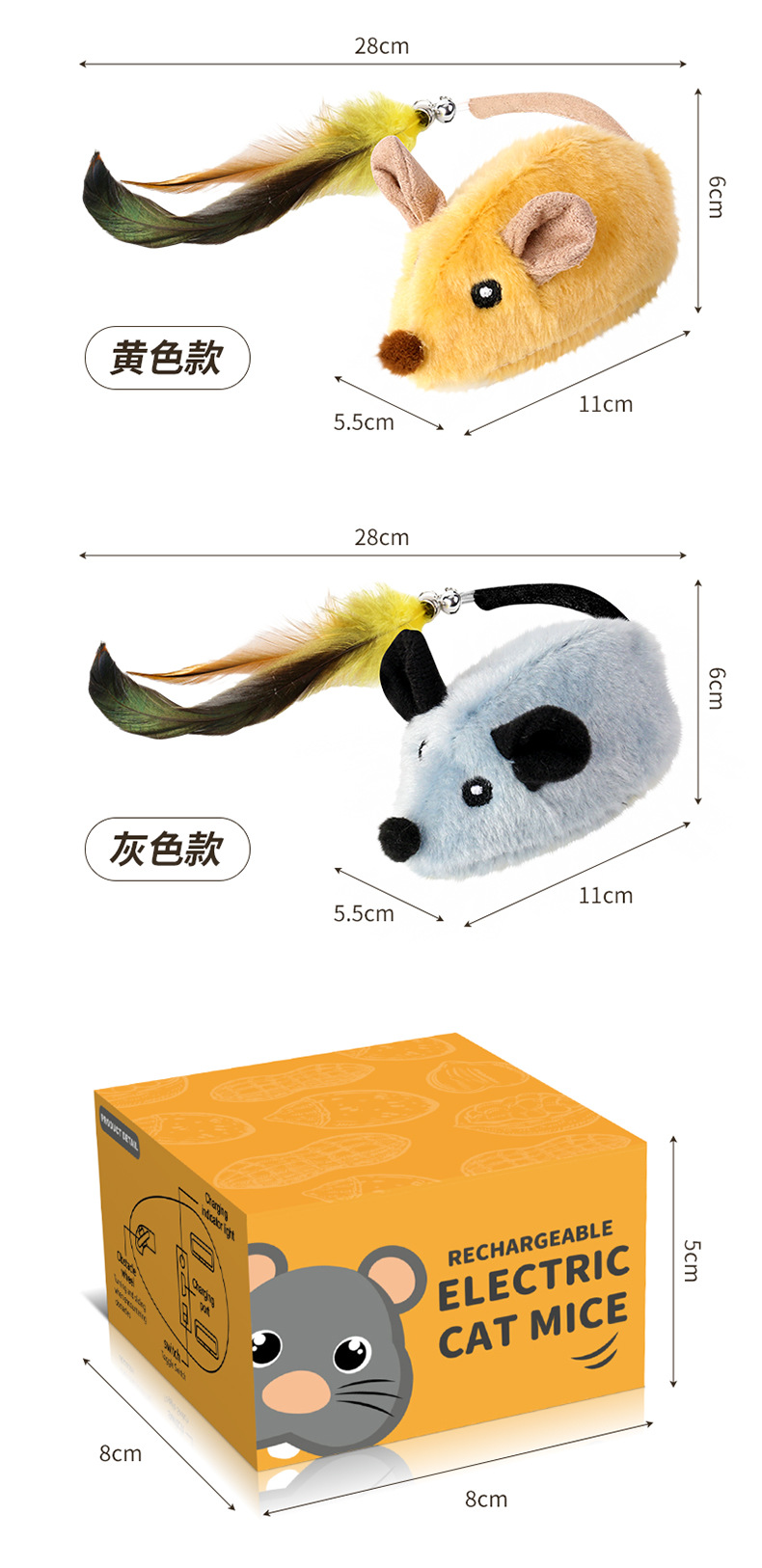 국경 간 폭발 지능형 충전 시뮬레이션 전기 마우스 놀리는 고양이 장난감 고양이를 쫓는 장난감 조명 음향 효과 고양이