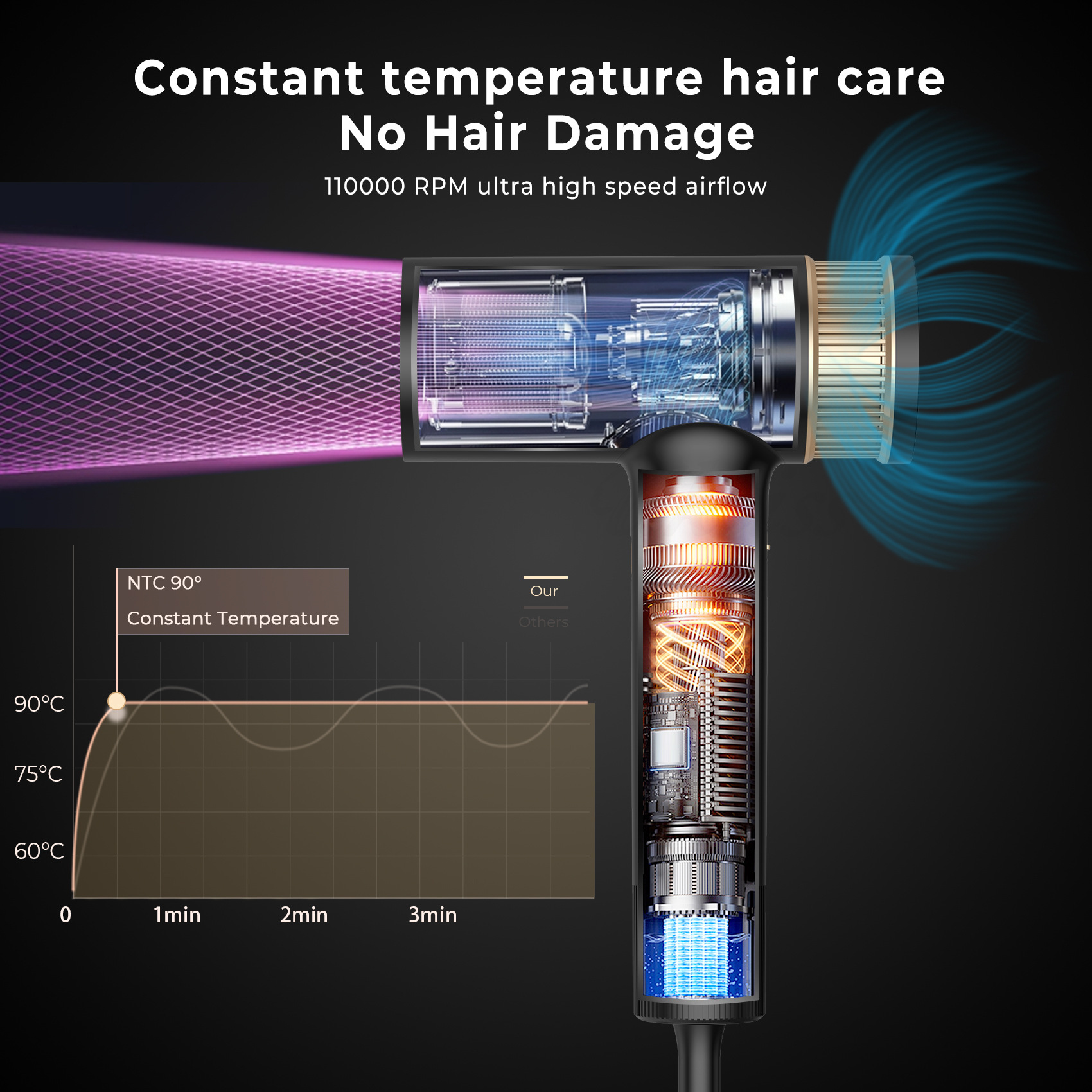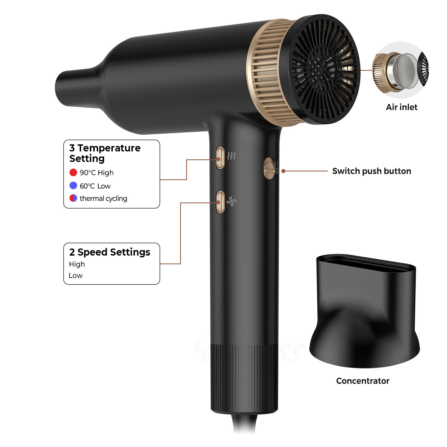 고속 헤어드라이어 - 미국 표준 - 후면 공기 흡입구(중국에서는 사용할 수 없음)