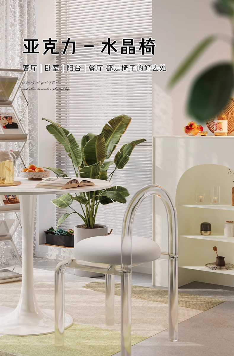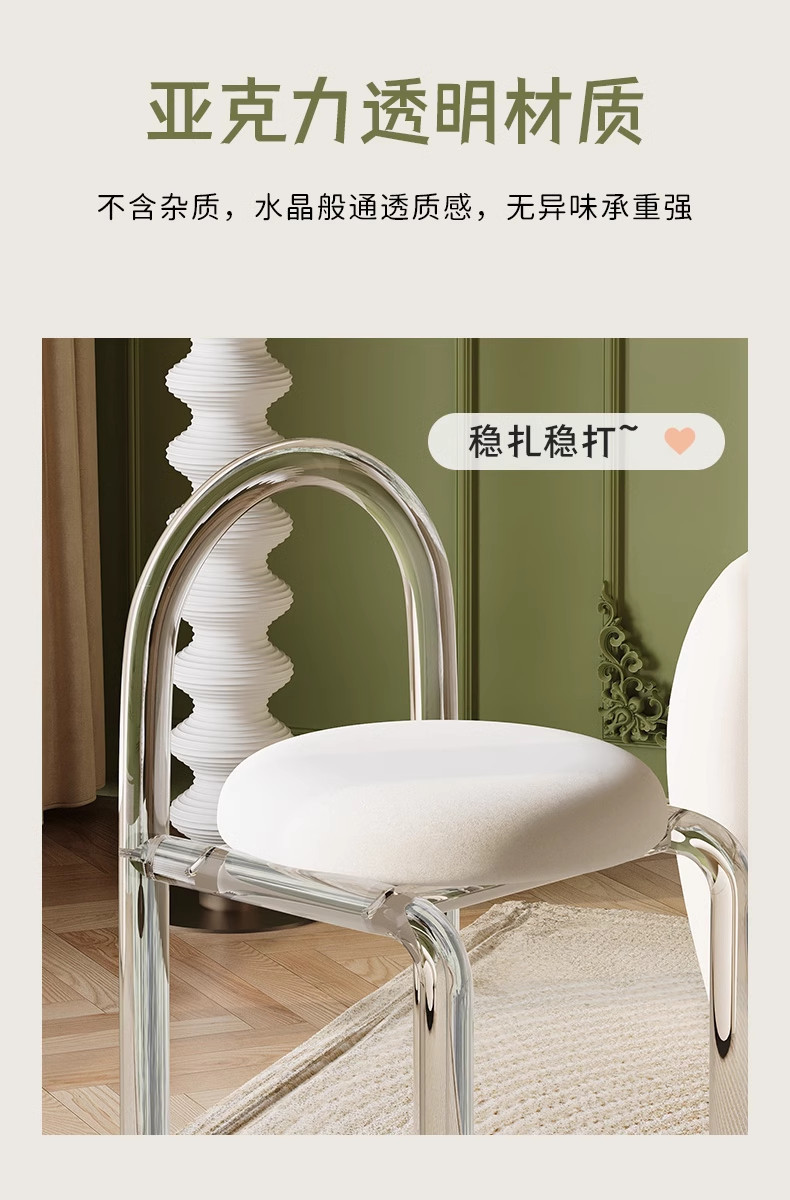 아크릴 의자 드레싱 의자 등받이 의자 북유럽 현대 간단한 인터넷 인기있는 미니멀리스트 투명 메이크업 의자