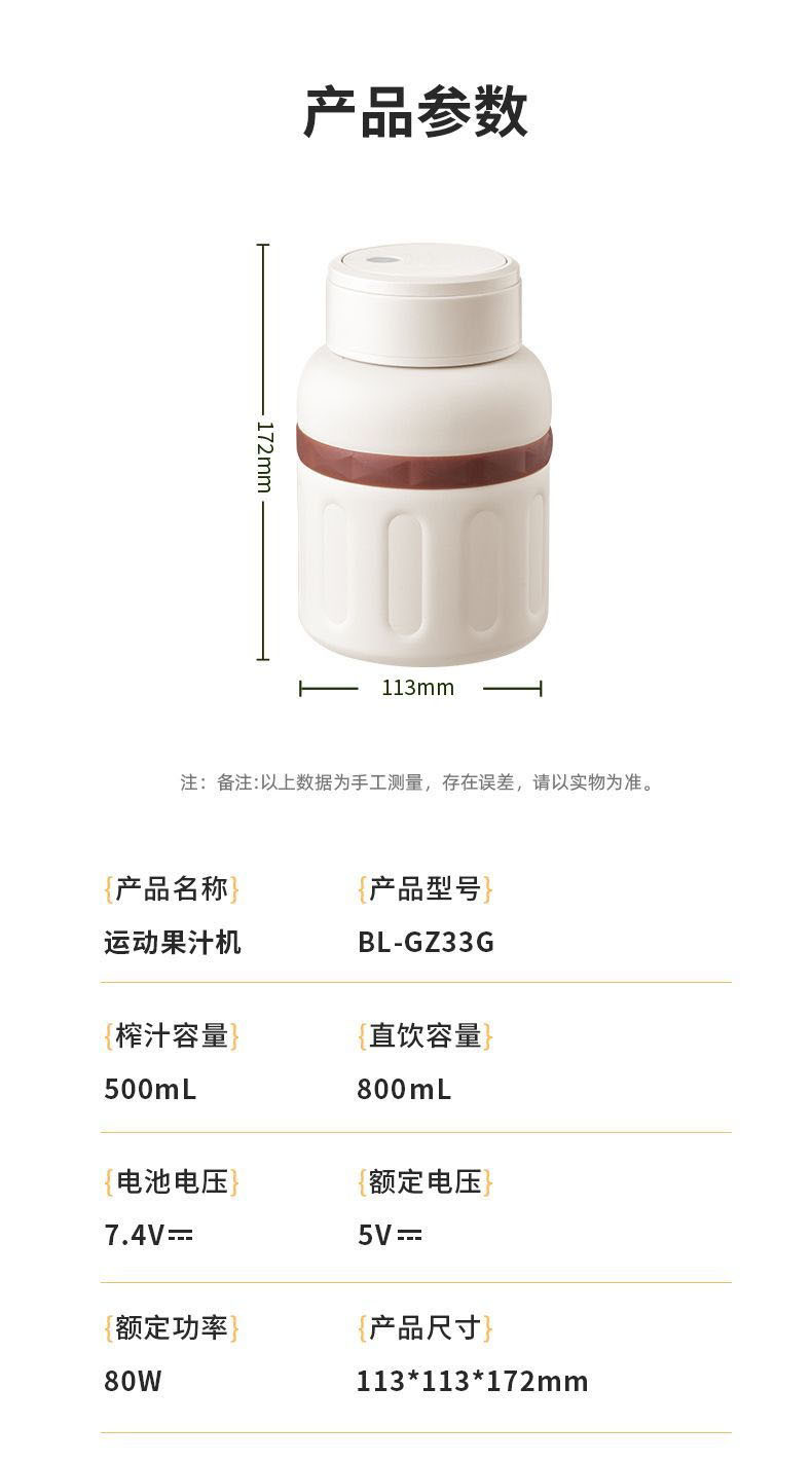 榨汁容量:500ml 直饮容量:800ml