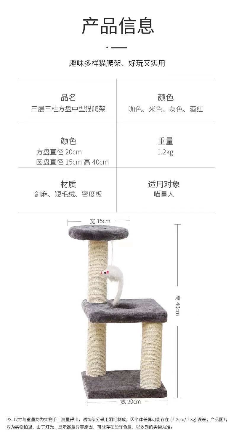 고양이 등반 랙 폭발 작은 가죽 Amoy Sisal 3 열 3 층 사각형 플레이트 중간 크기의 간단한 고양이 점프 플랫폼 고양이 장난감