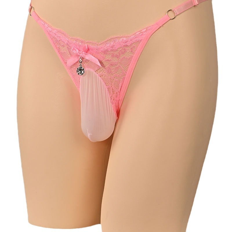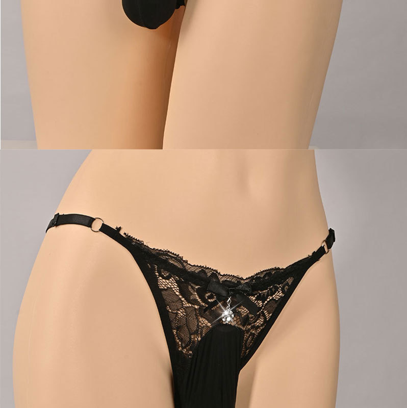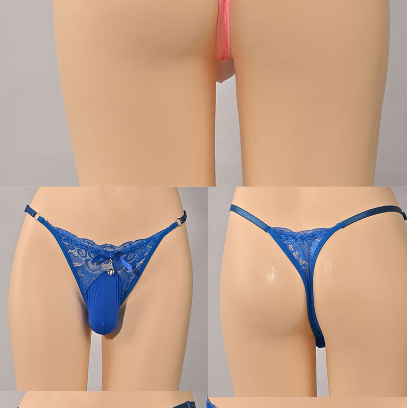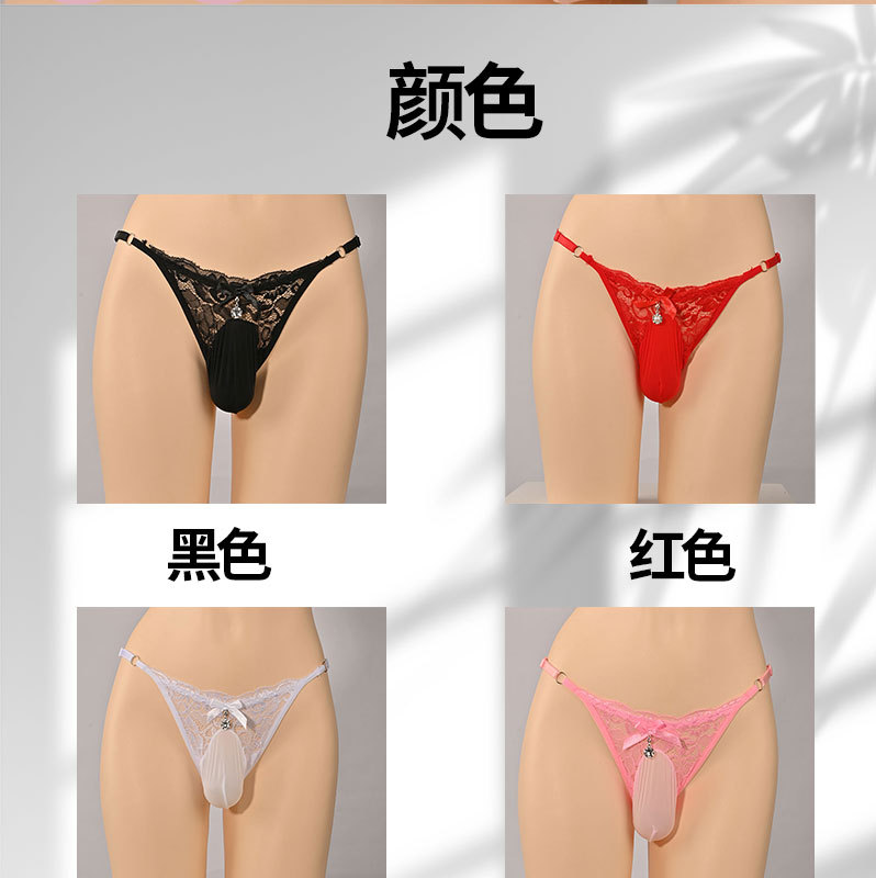 낮은 허리 벨트 조정 가능한 레이스 남자의 섹시한 JJ 세트 유혹 작은 고우 빛나는 부드러운 물방울 장식 삼각형