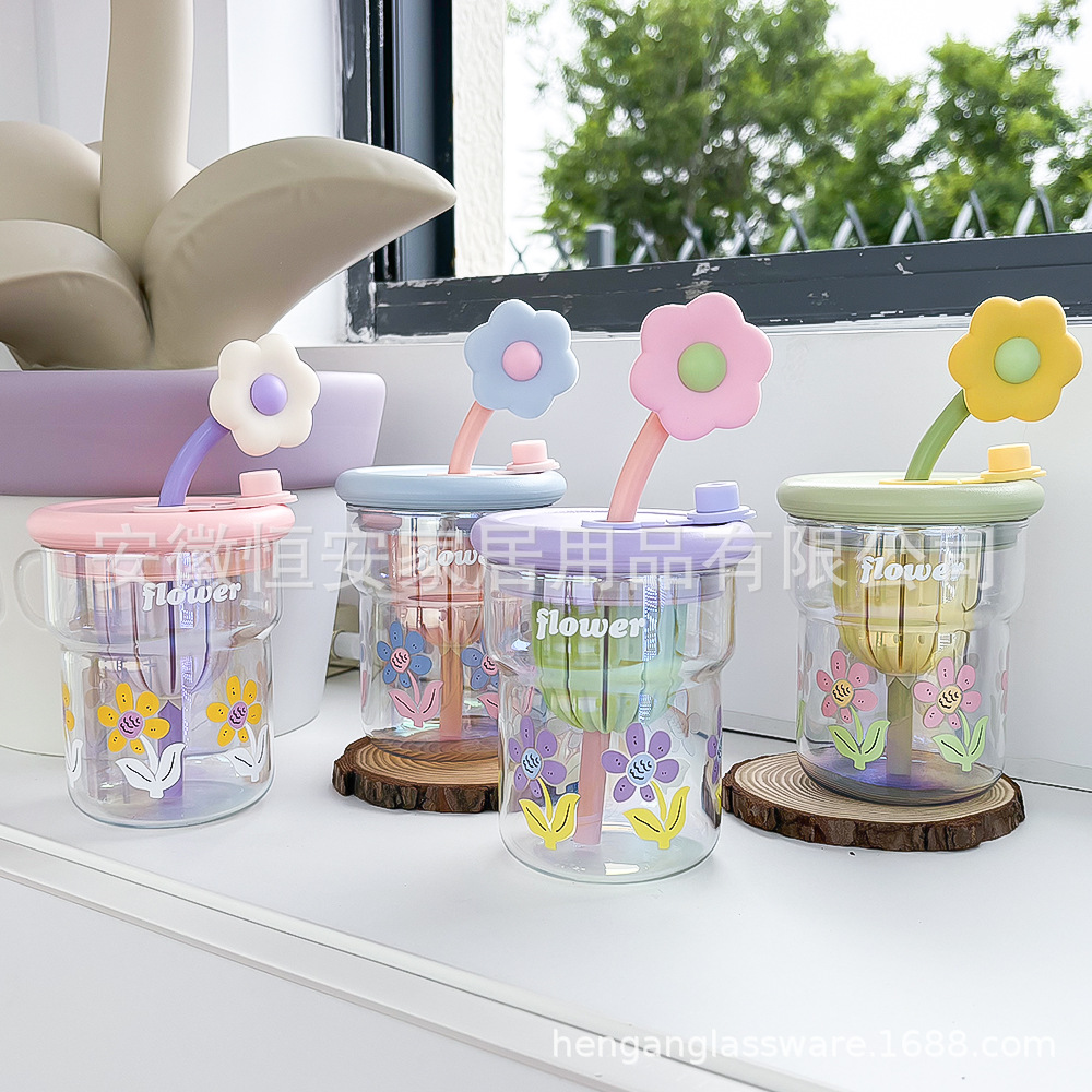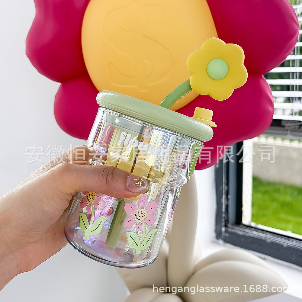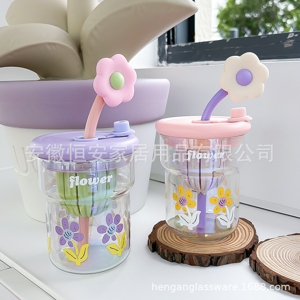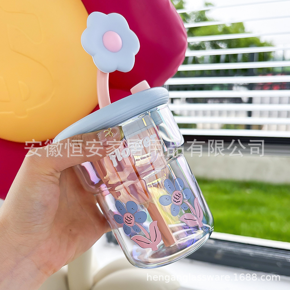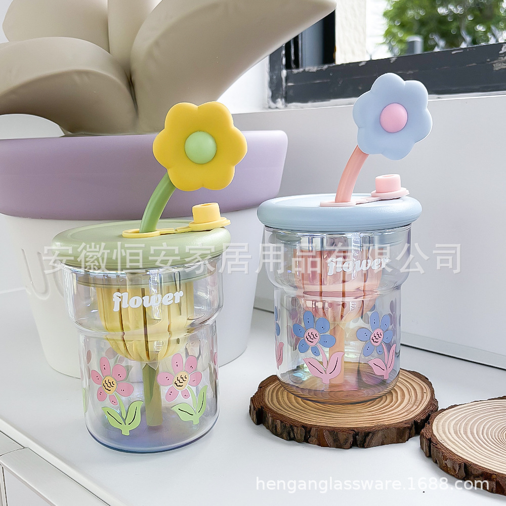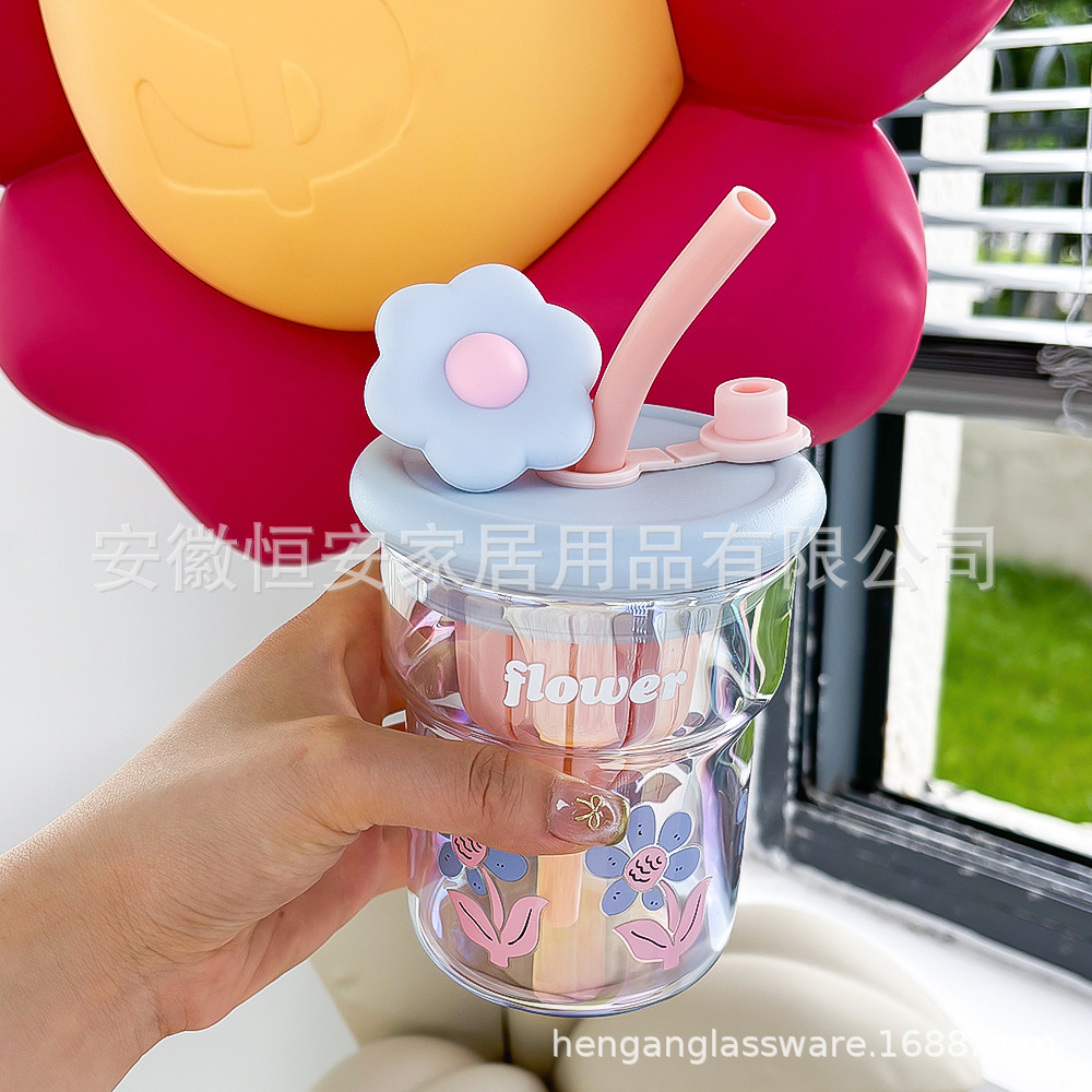 유리 컵 소녀 2024 높은 색상 값 여름 밀짚 차 분리 커피 컵