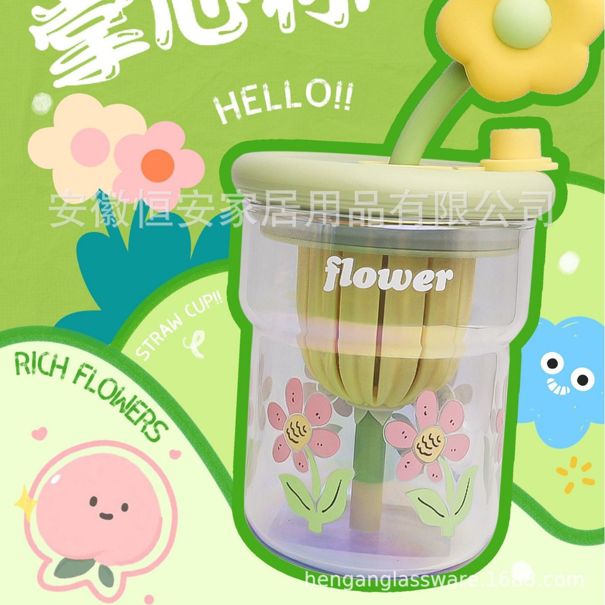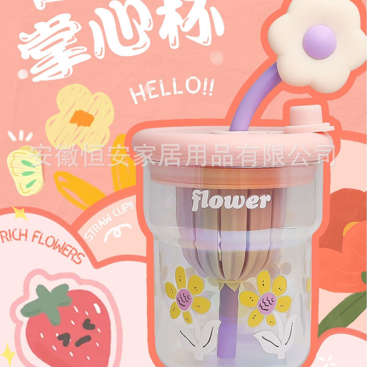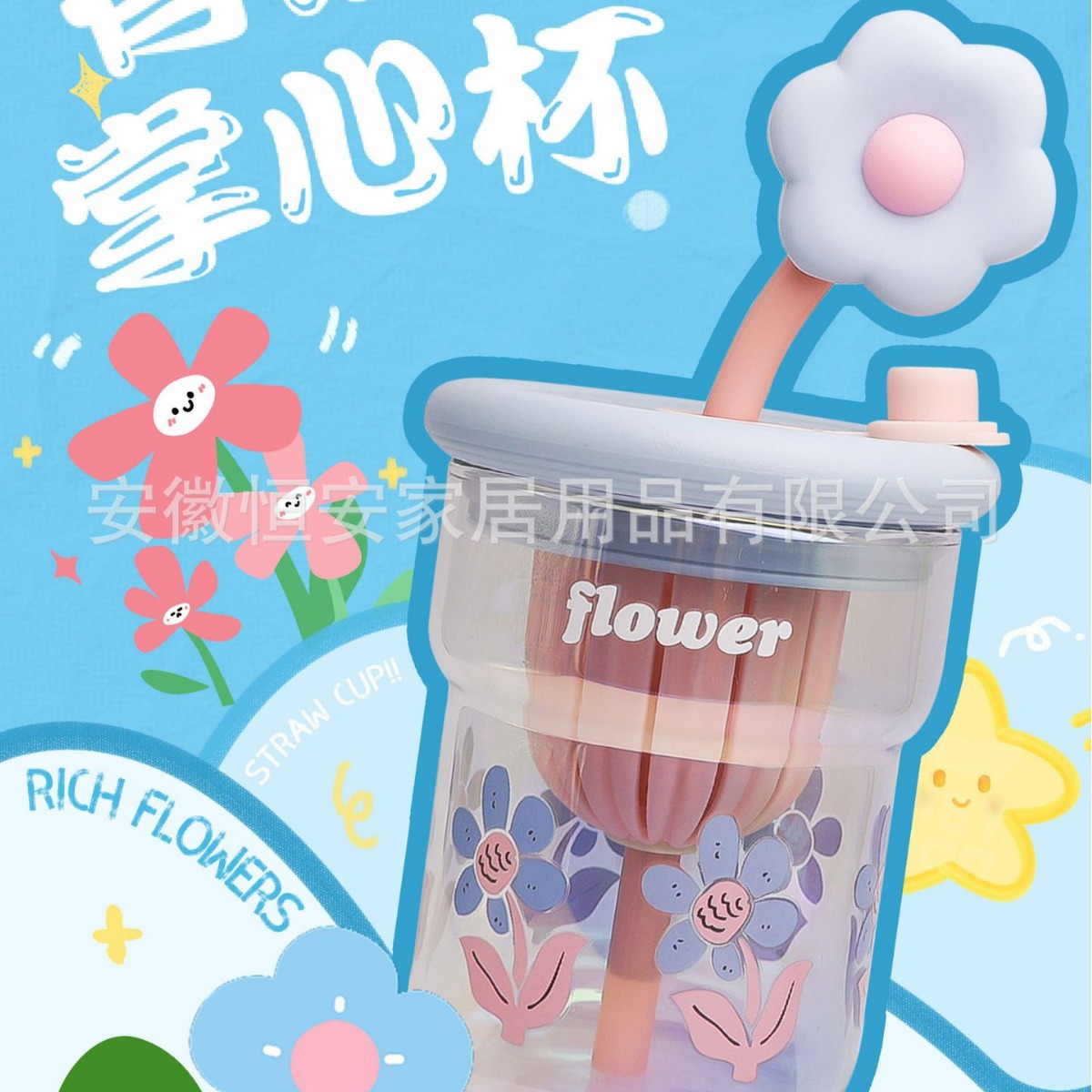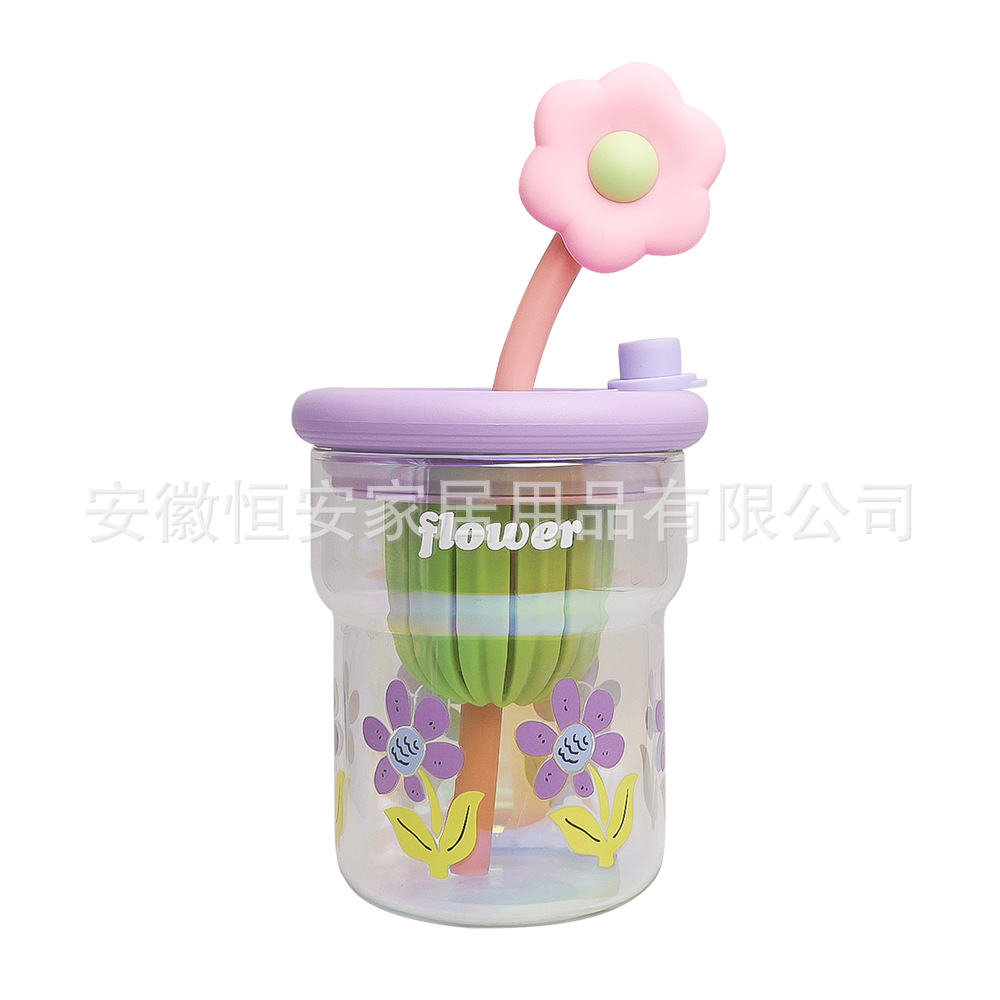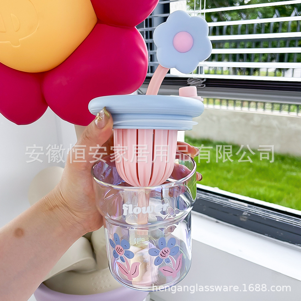 유리 컵 소녀 2024 높은 색상 값 여름 밀짚 차 분리 커피 컵