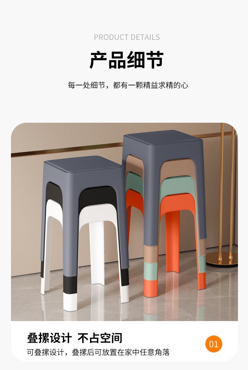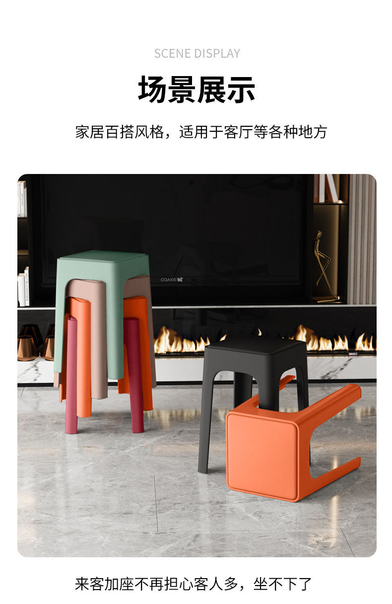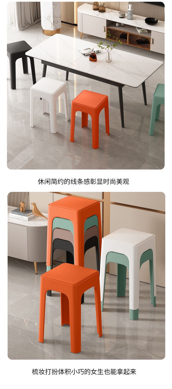 여분의 두꺼운 플라스틱 의자 가정용 두꺼운 현대 간단한 쌓을 수있는 편안한 의자 좌식 높은 광장 의자 벤치