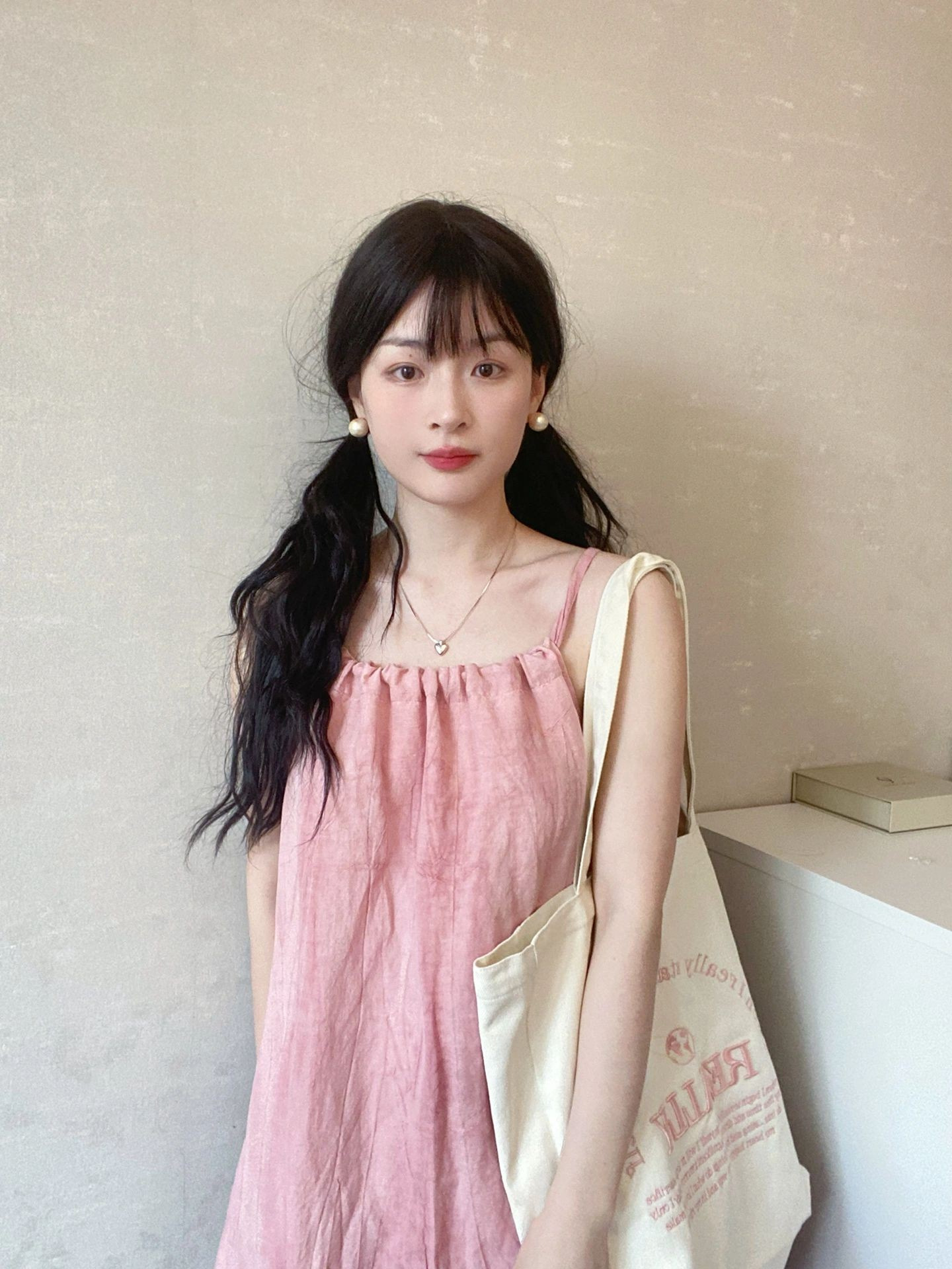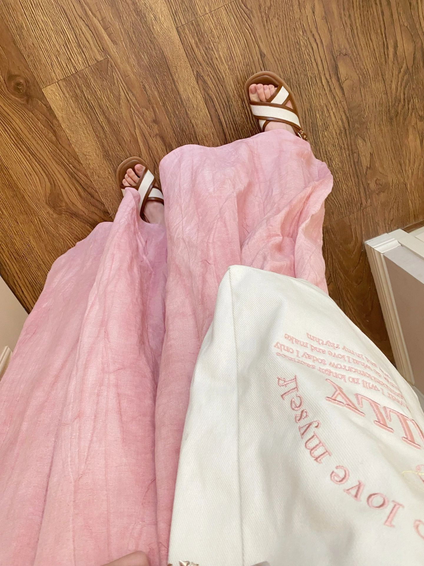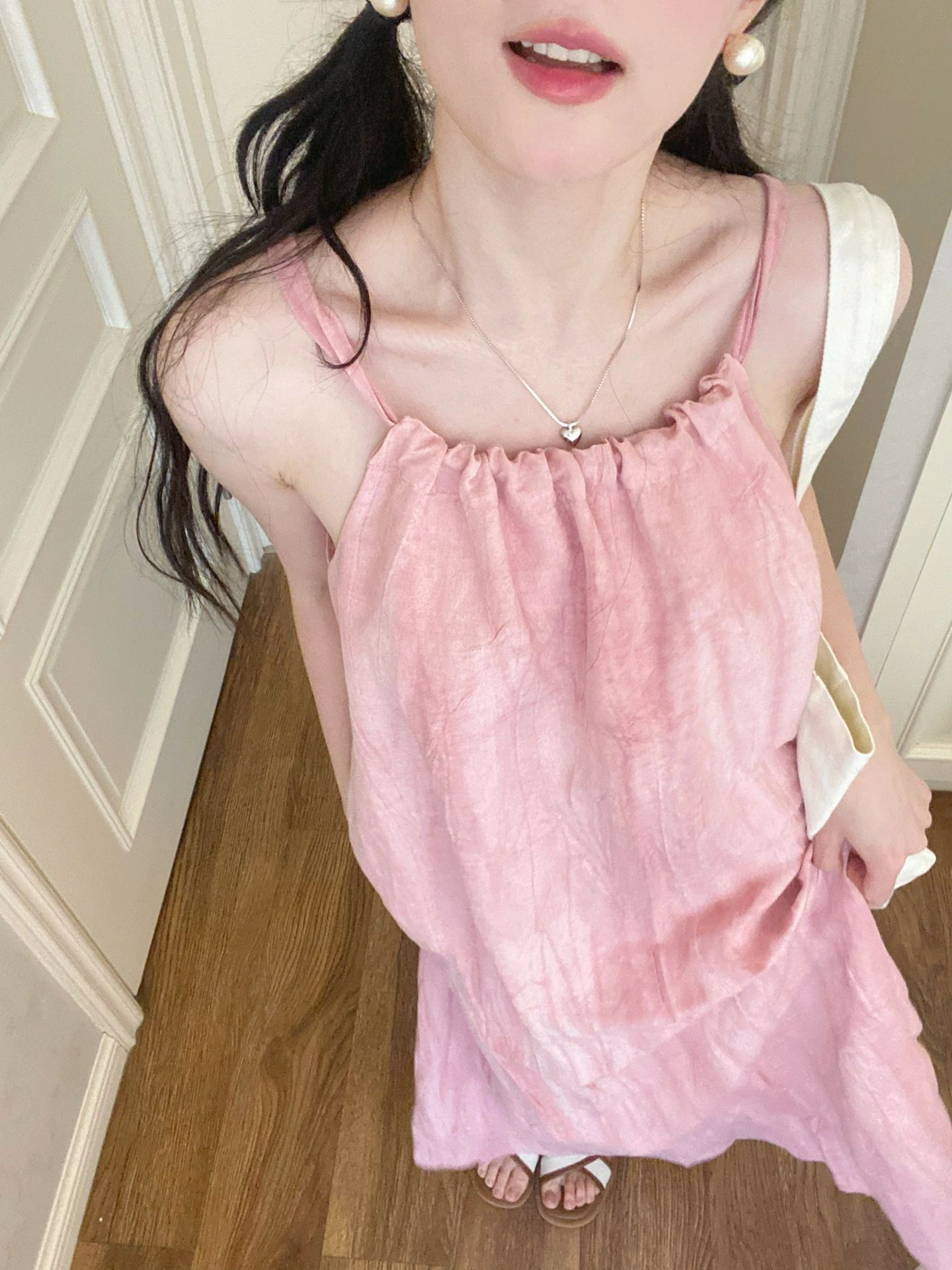 핑크 슬링 롱 원피스 여성의 여름 새로운 해변 휴가 해변 원피스 목 디자인 틈새 원피스