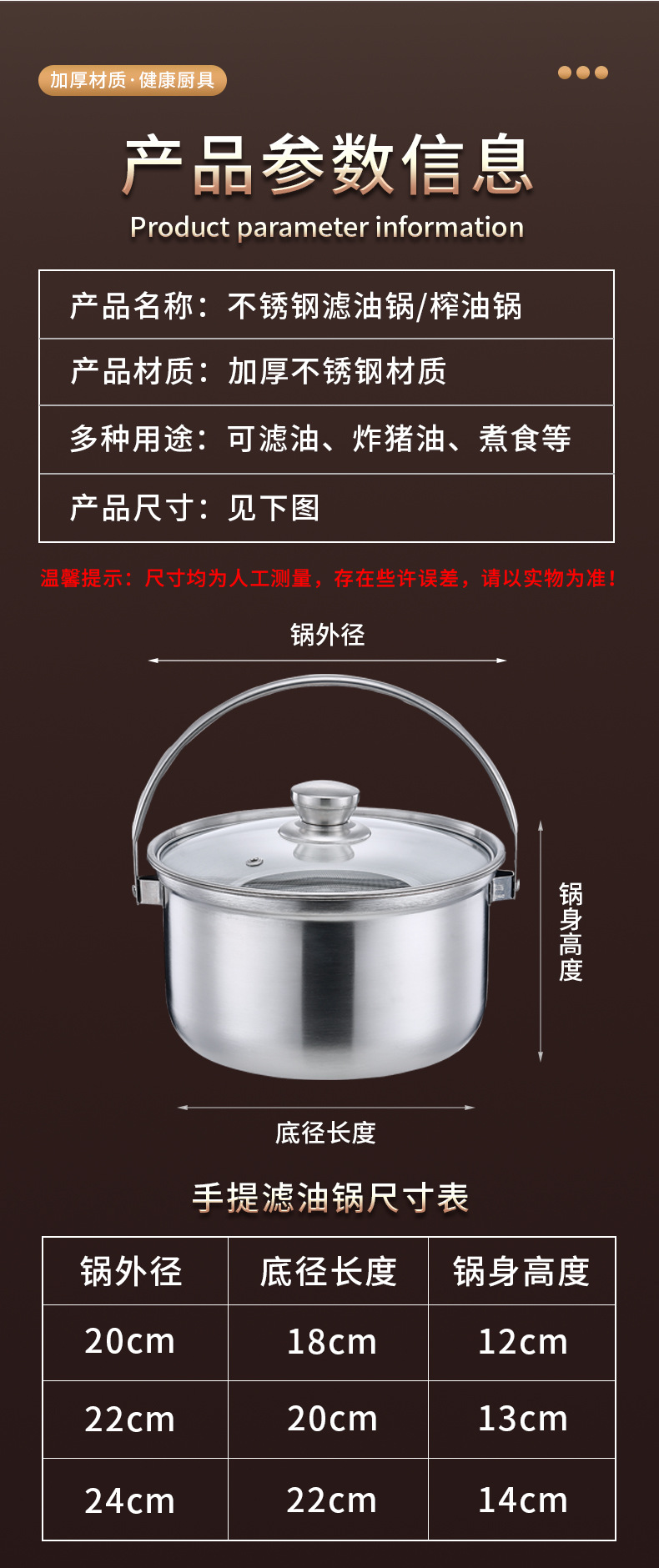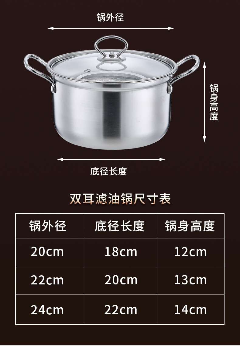 304 스테인레스 스틸 프라이어 가정용 주방 연료 절약 미니 꼬치 깊은 냄비 다기능 요리 국수 필터 잔류 식품 보충 냄비