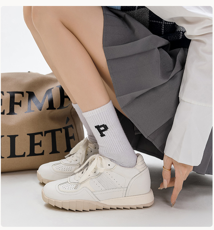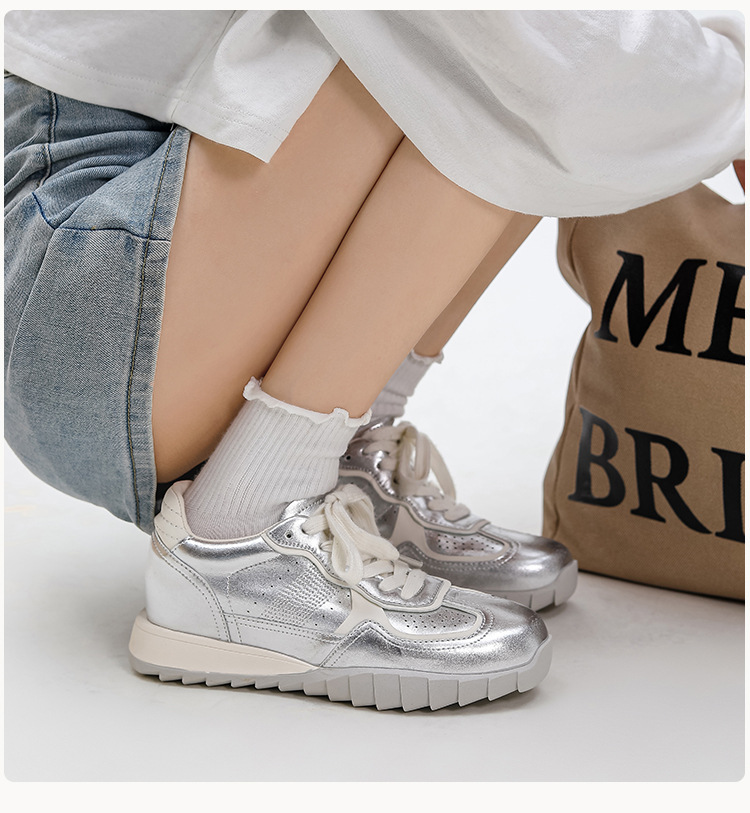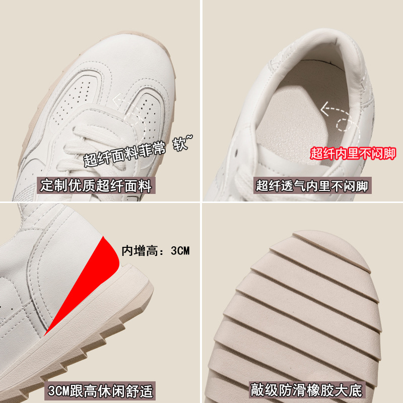 228 작은 키를 위한 키높이 운동화 여성용 2024 신상 통기성 발레 가죽 아가니 신발 두꺼운 밑창 운동화 32
