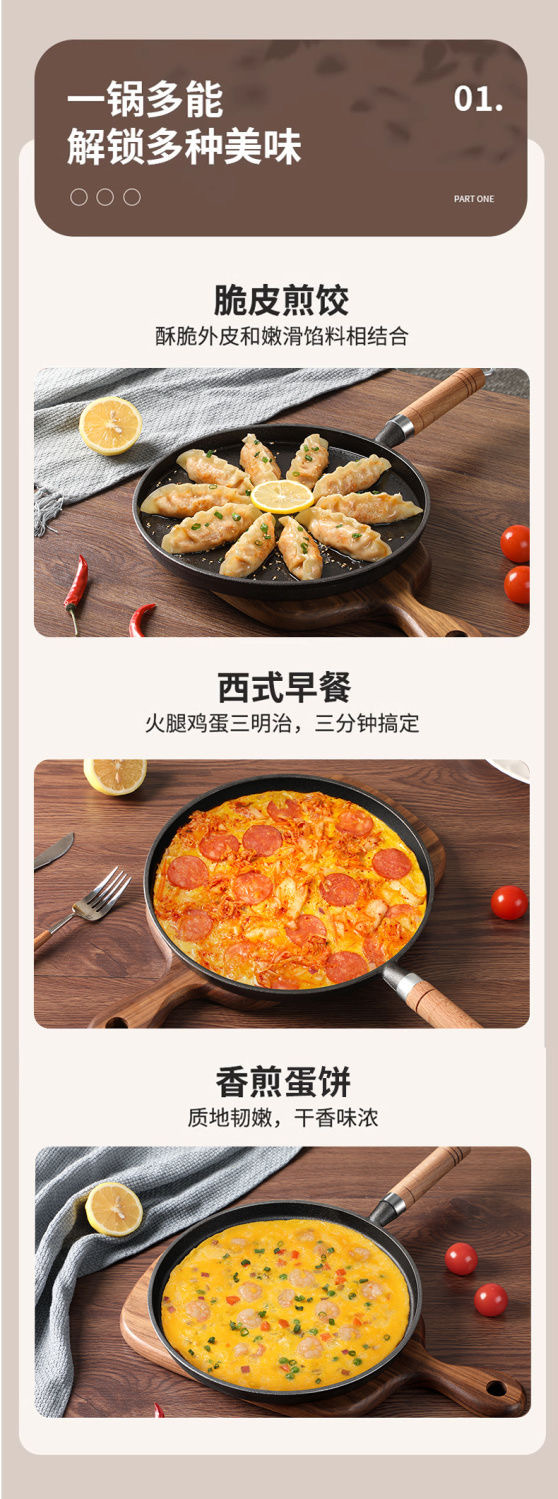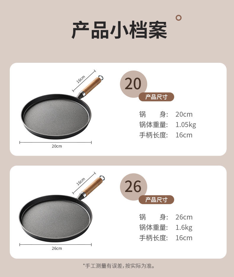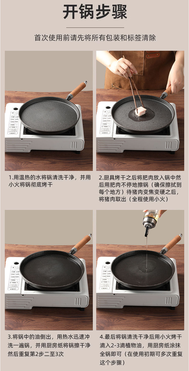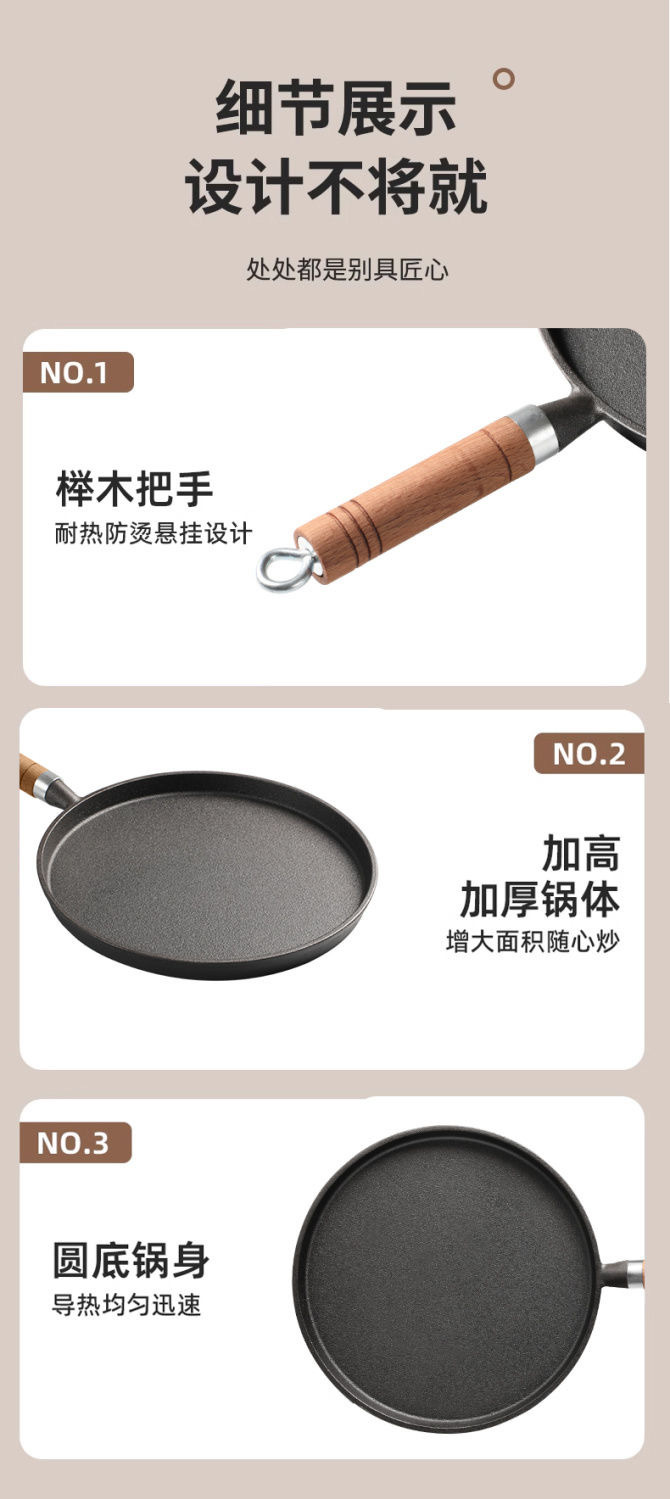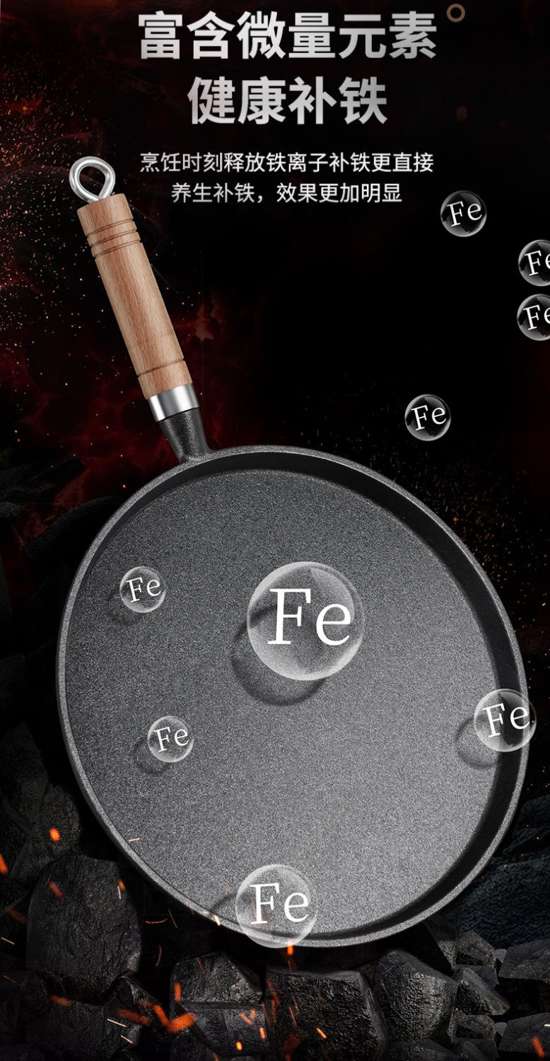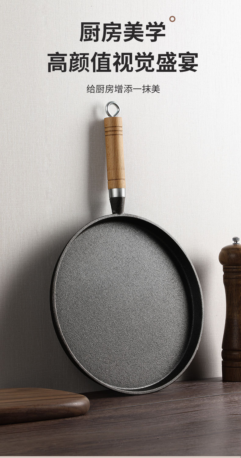 두꺼운 주철 팬 팬케이크 팬 가정용 비 코팅 스틱 팬 팬케이크 모든 과일 핸드 헬드 팬케이크 팬케이크 그리드