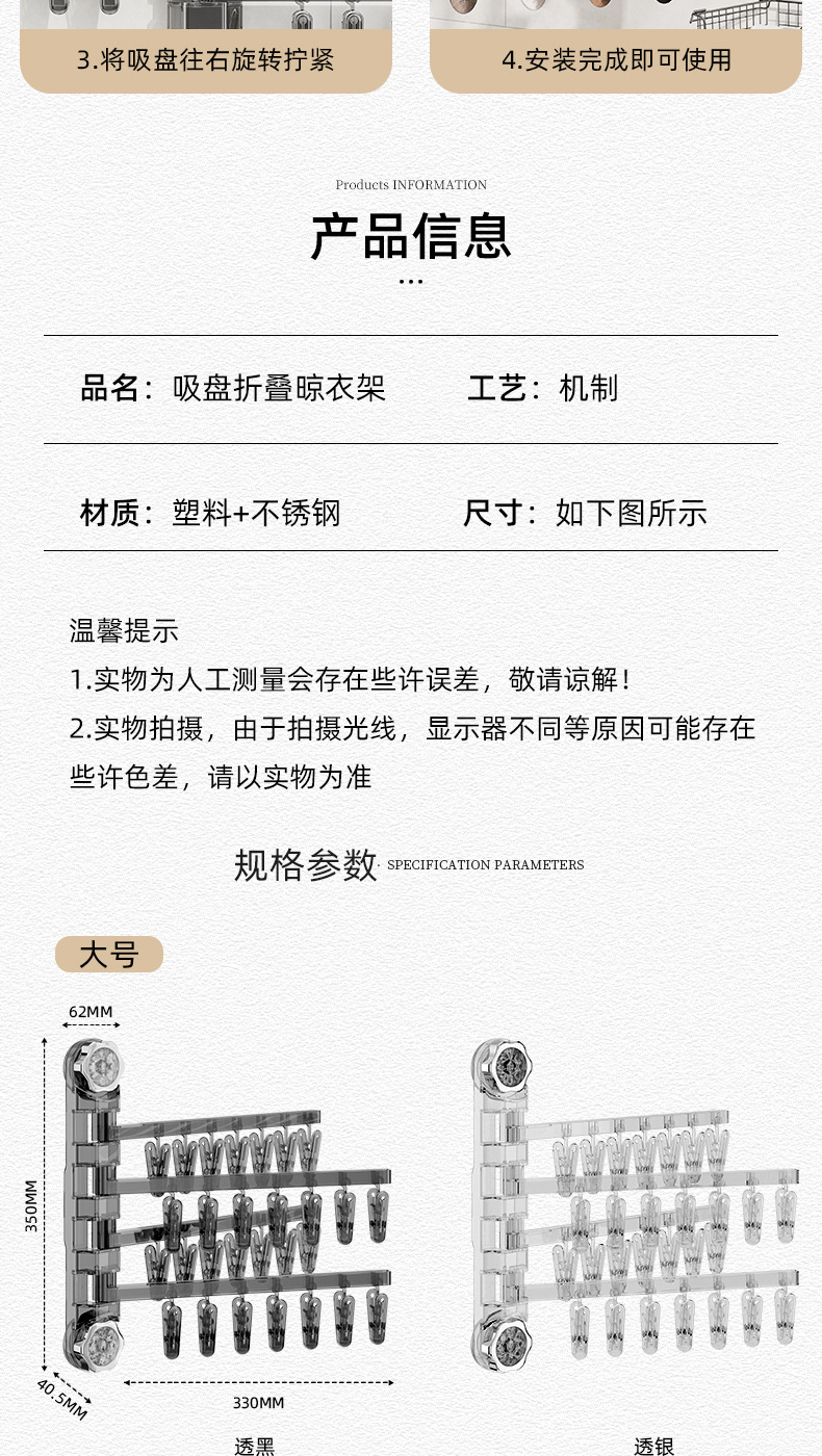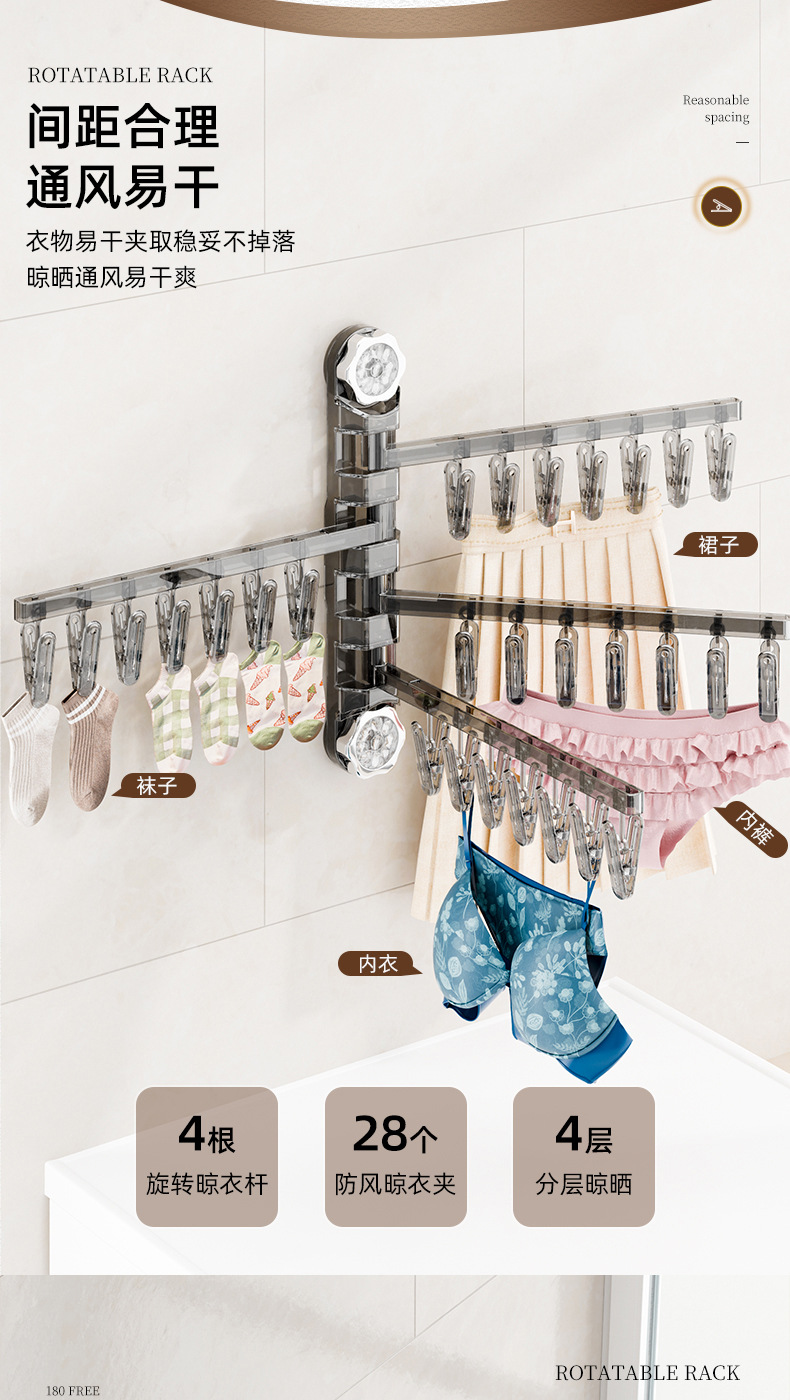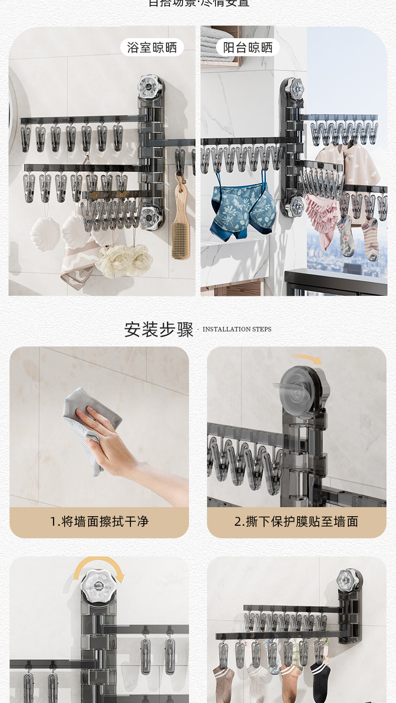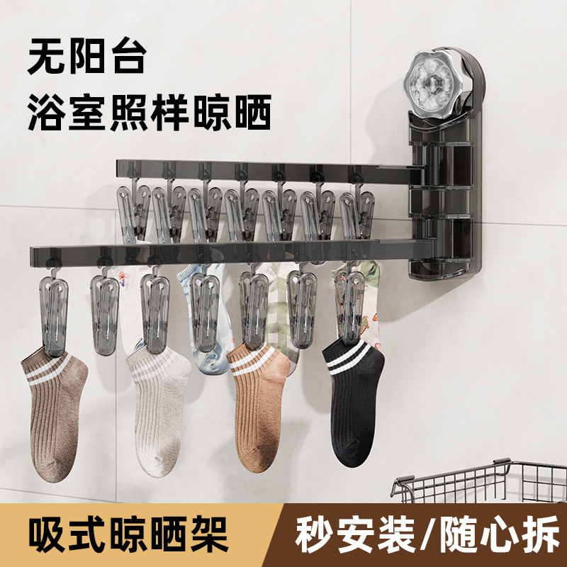 흡입 컵 접히는 옷걸이 속옷 양말 건조 랙 가정용 비 펀치 발코니 다기능 클립 건조 랙 아티팩트