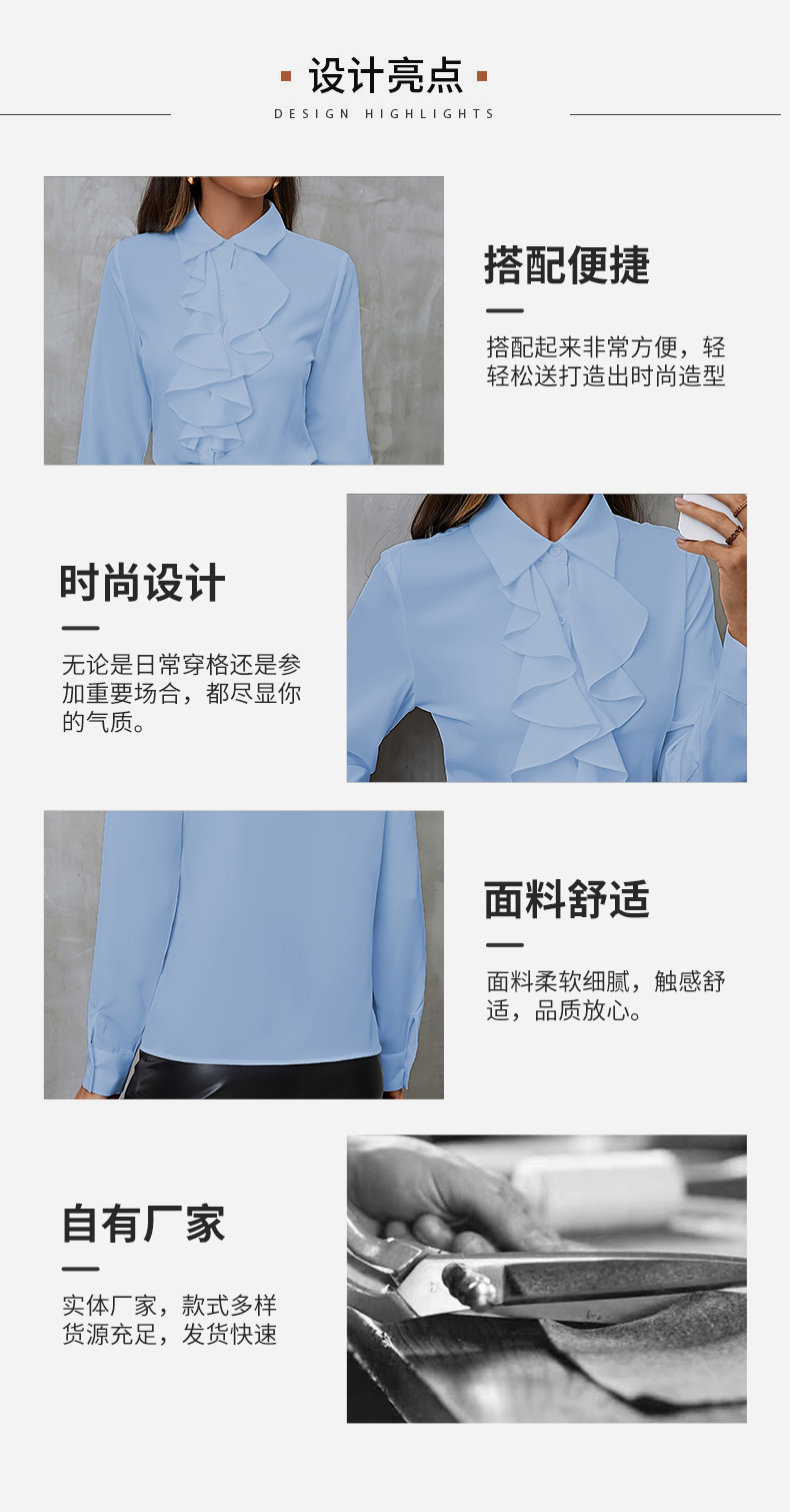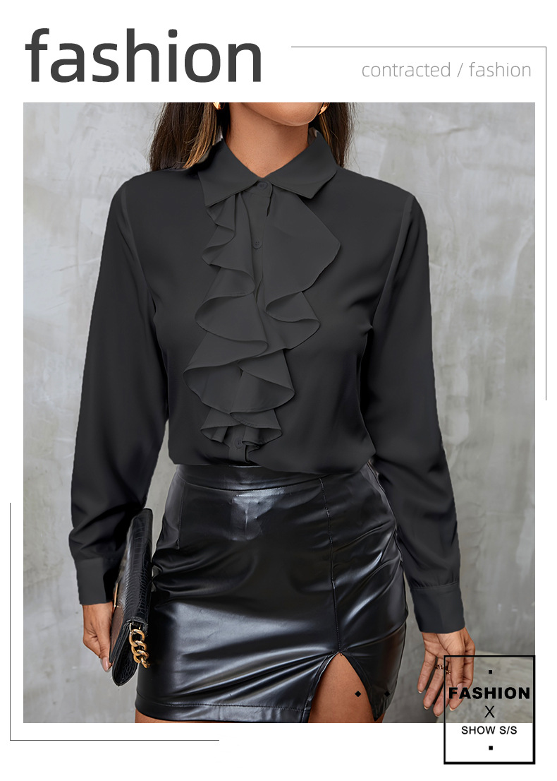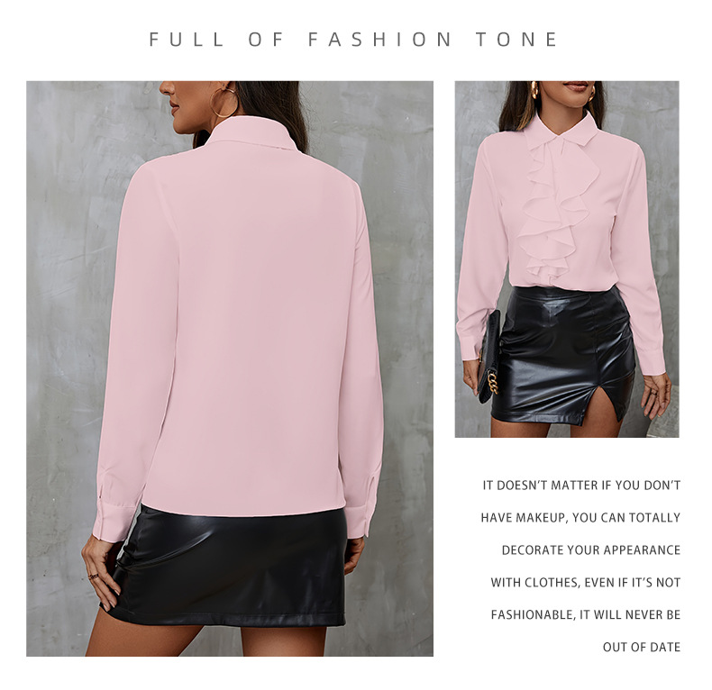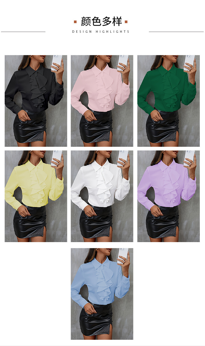 신제품 유럽과 미국의 느슨한 쉬폰 셔츠 여성 흰색 셔츠 긴팔 새로운 직업복 서양식 프릴 탑