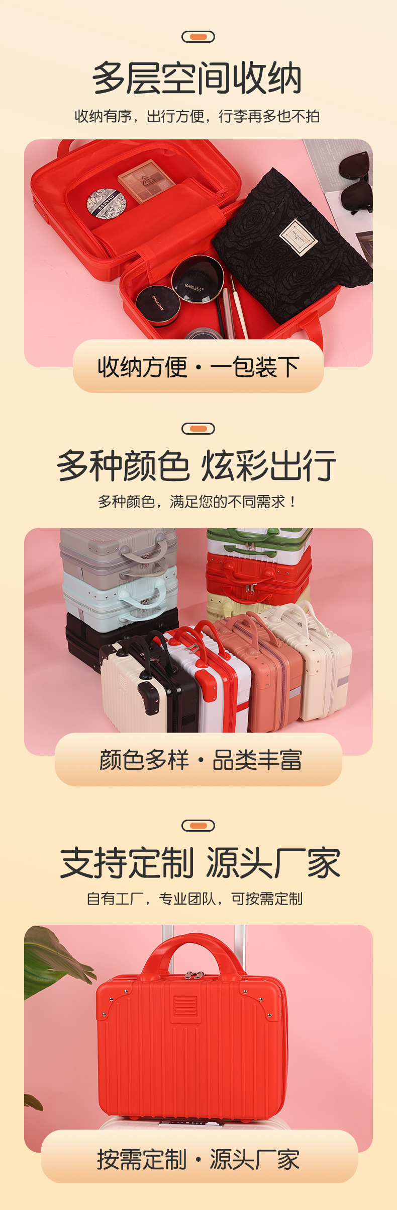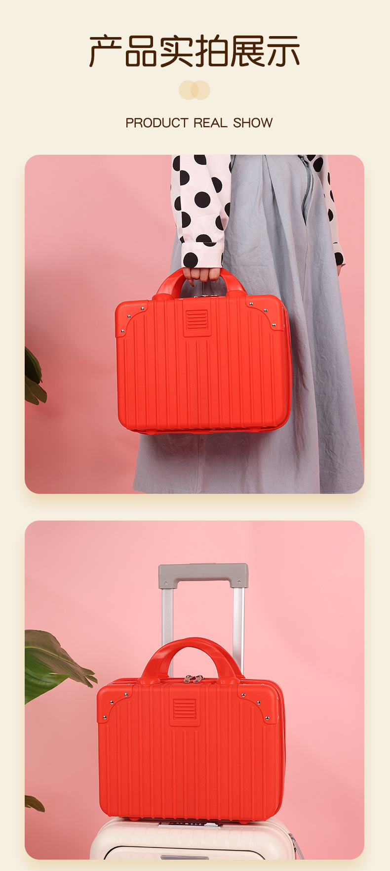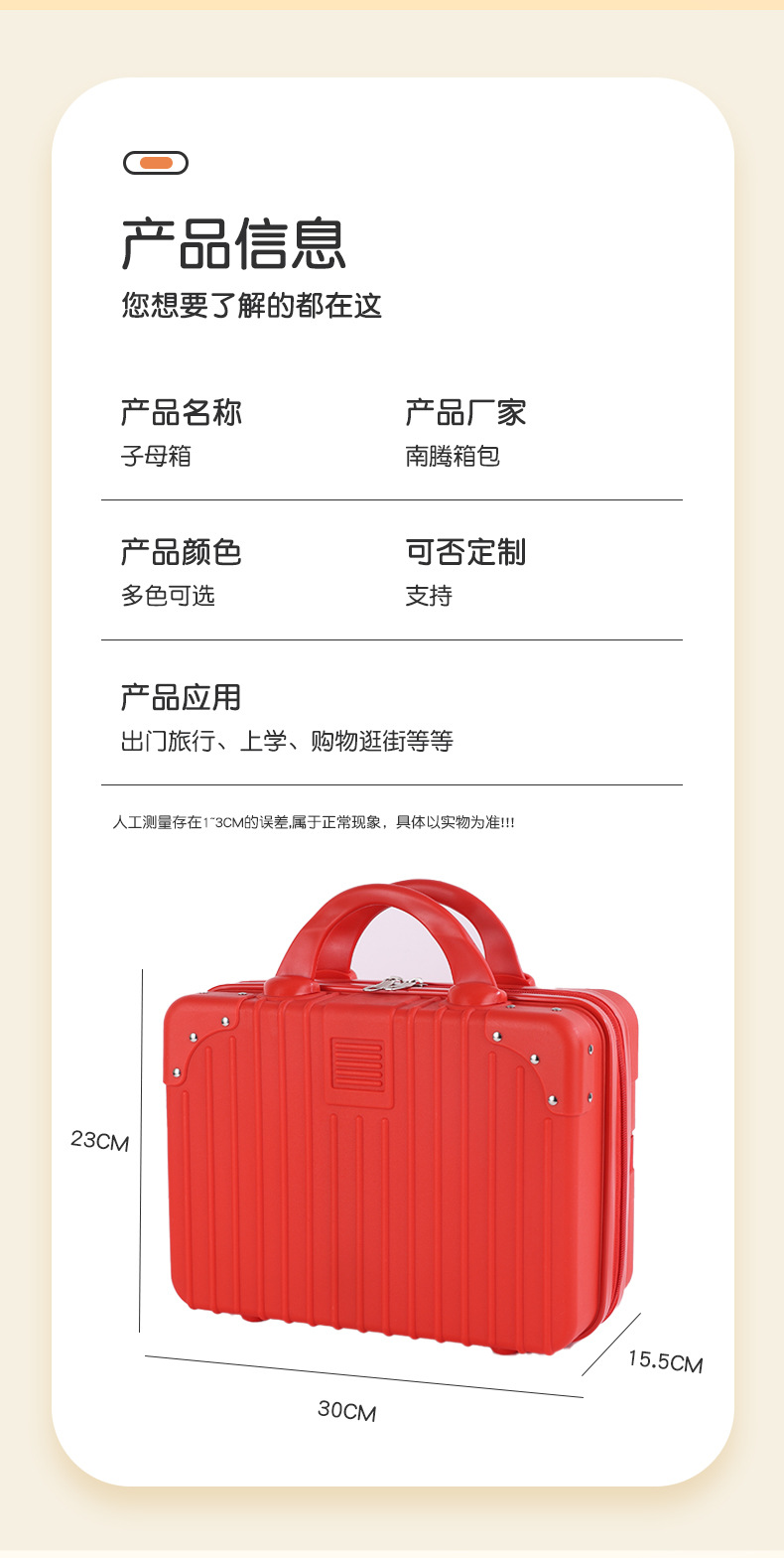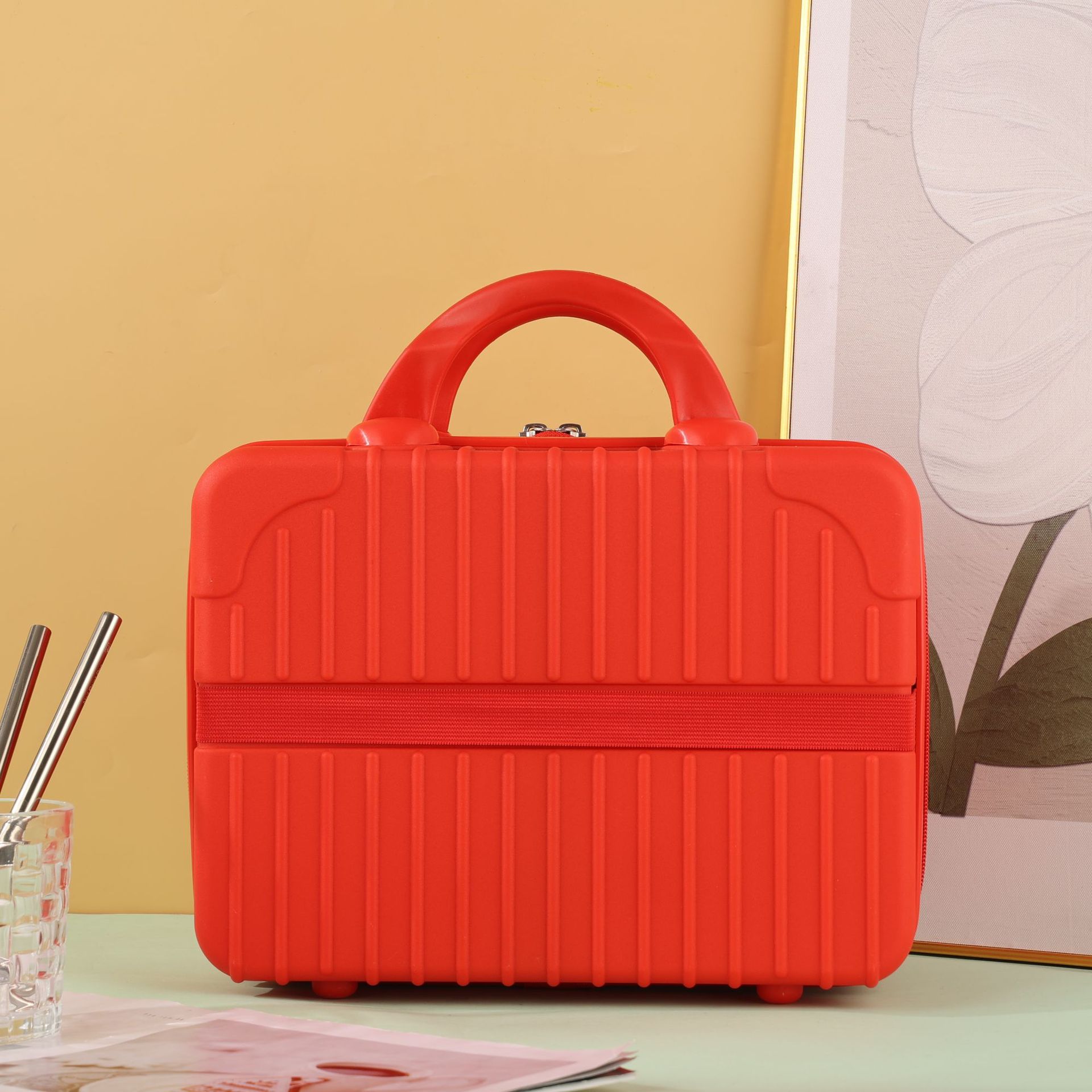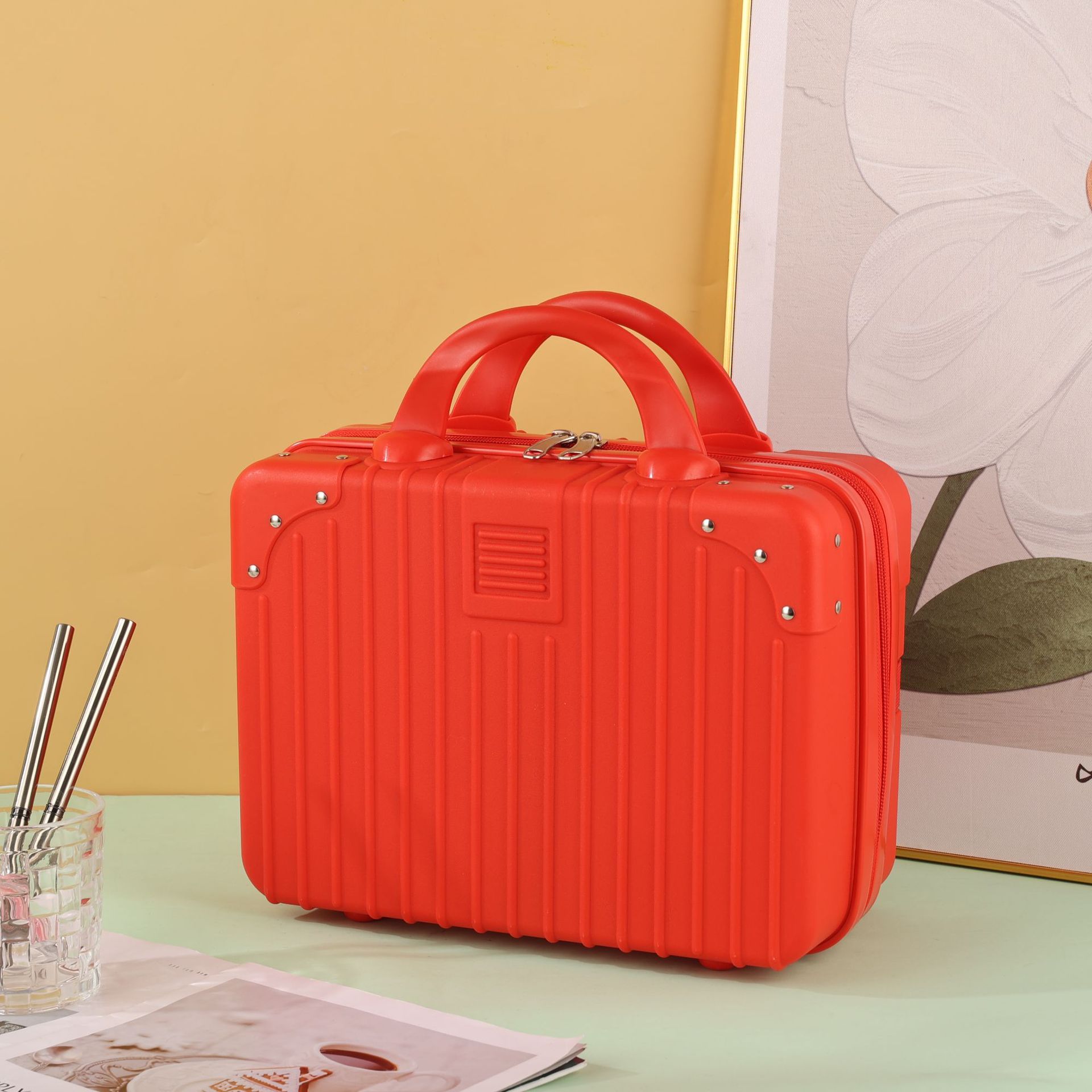 빨간색 휴대용 여행가방 미니 13inch 화장품 상자 만화 곰 보관 상자 소형 경량 여행