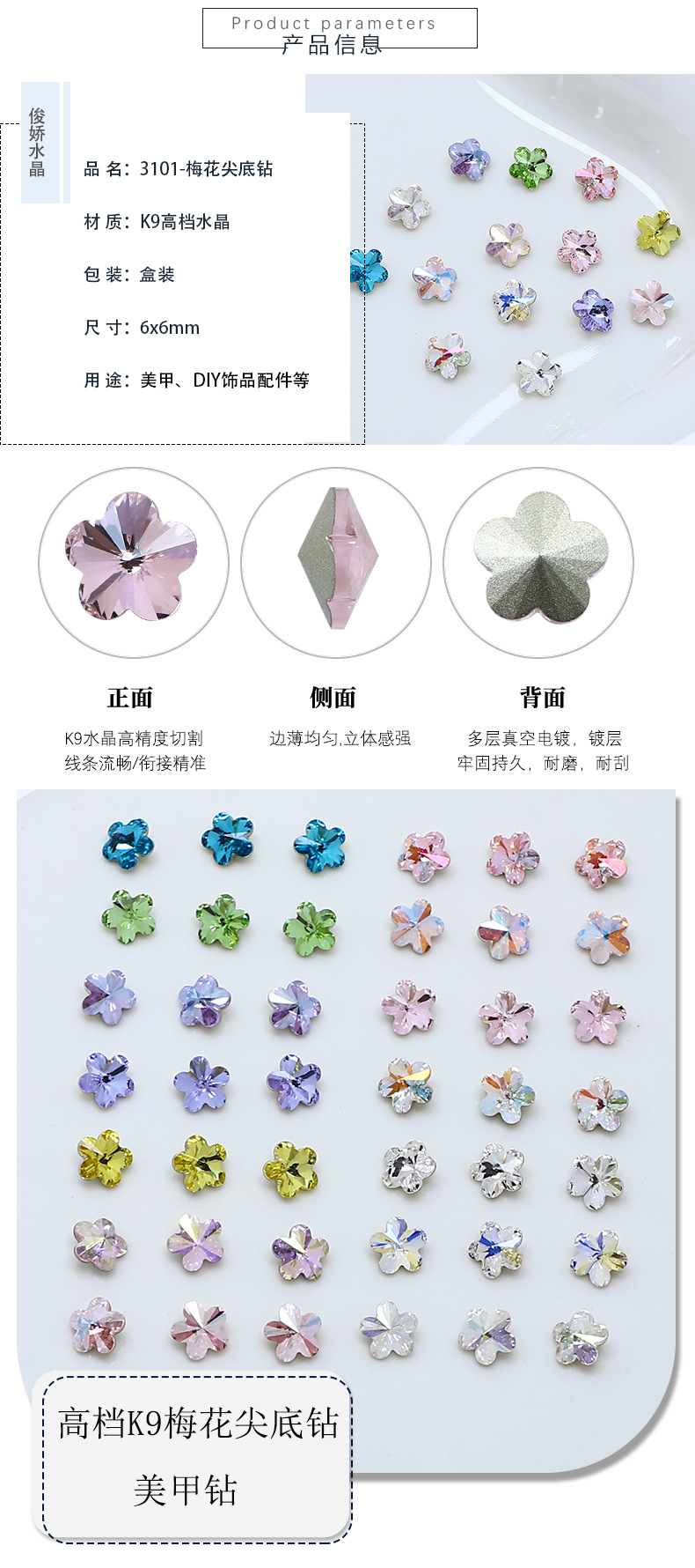 동주 크리스탈 6*6 작은 꽃 네일 드릴 매화 특수 모양의 K9 뾰족한 바닥 드릴 네일 쥬얼리 파일 드릴 공장 도매