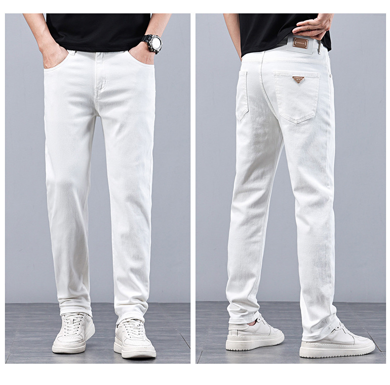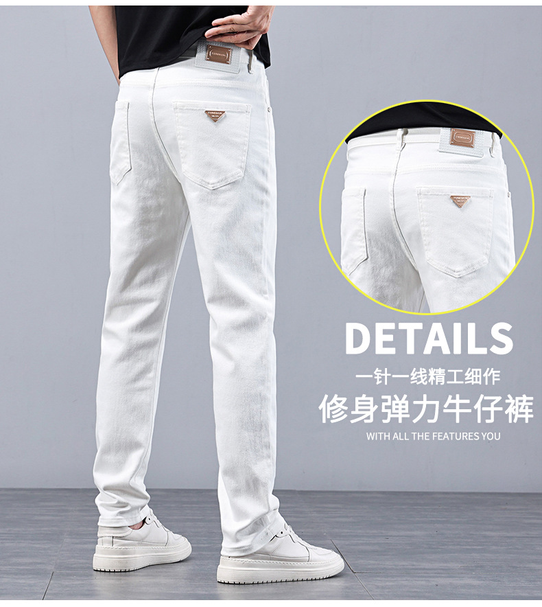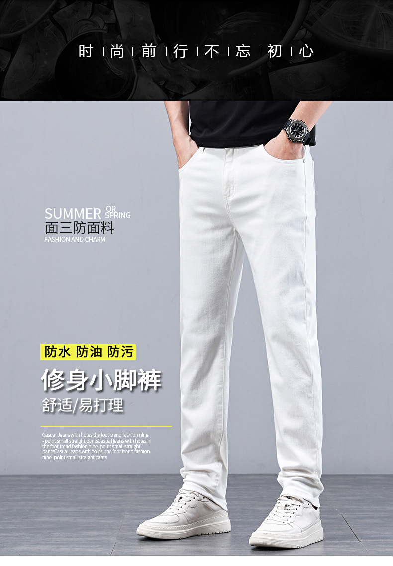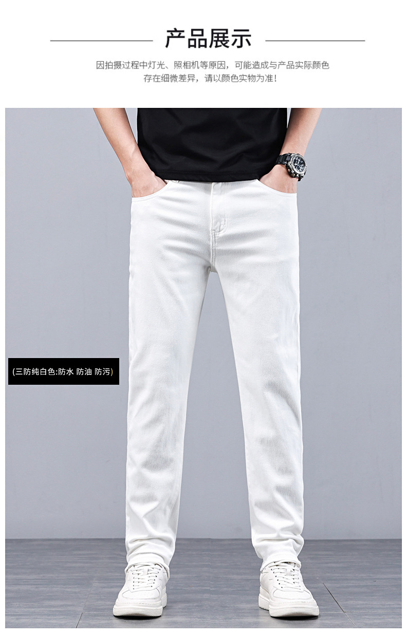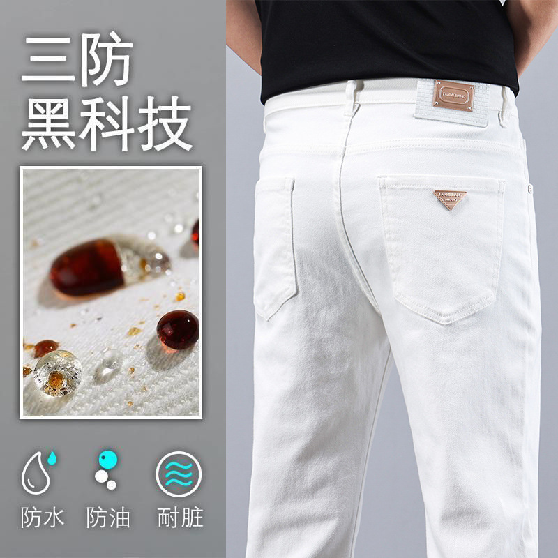 하이 엔드 3 가지 증거 청바지 남자 2024 새로운 흰색 바지 방수 안티 파울링 탄성 슬림 핏 다리 캐주얼 바지
