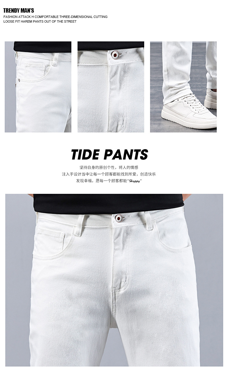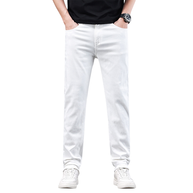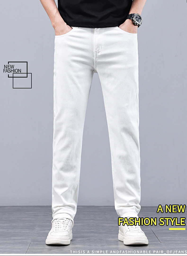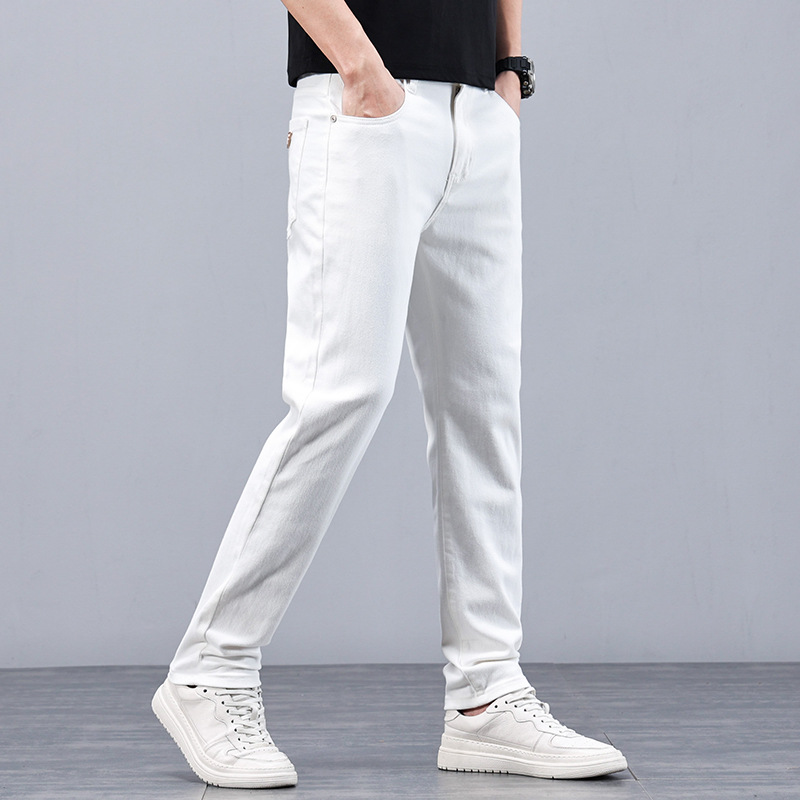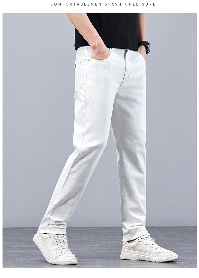 하이 엔드 3 가지 증거 청바지 남자 2024 새로운 흰색 바지 방수 안티 파울링 탄성 슬림 핏 다리 캐주얼 바지