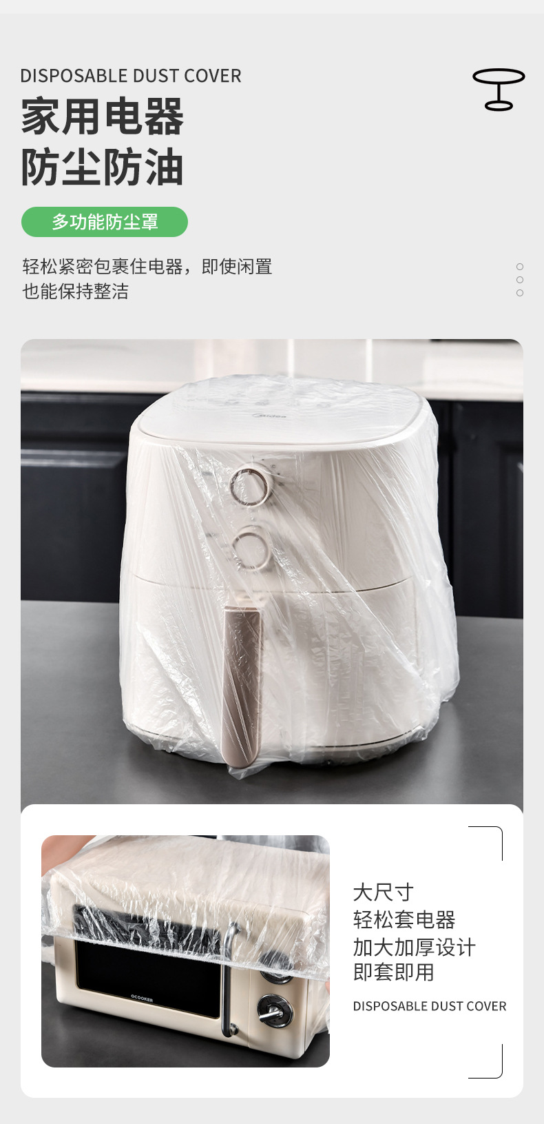 가전 먼지 커버 방역 필름 커버 초대형 두꺼운 밥솥 냄비 주방 에어 프라이어 베이킹 팬 투명 커버