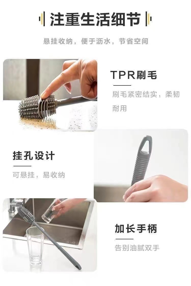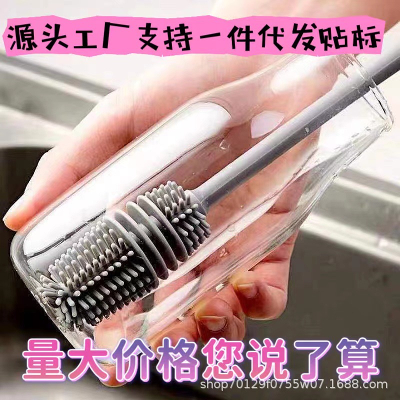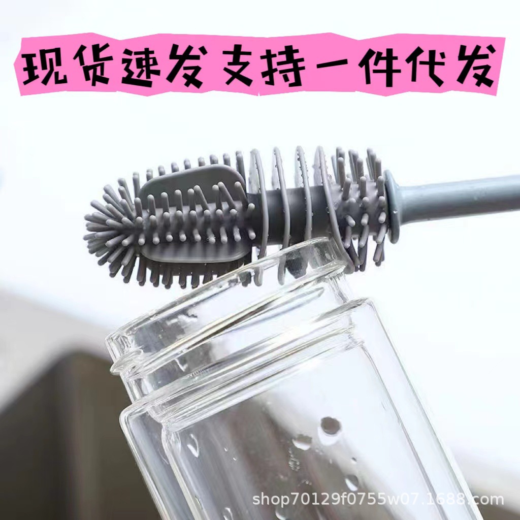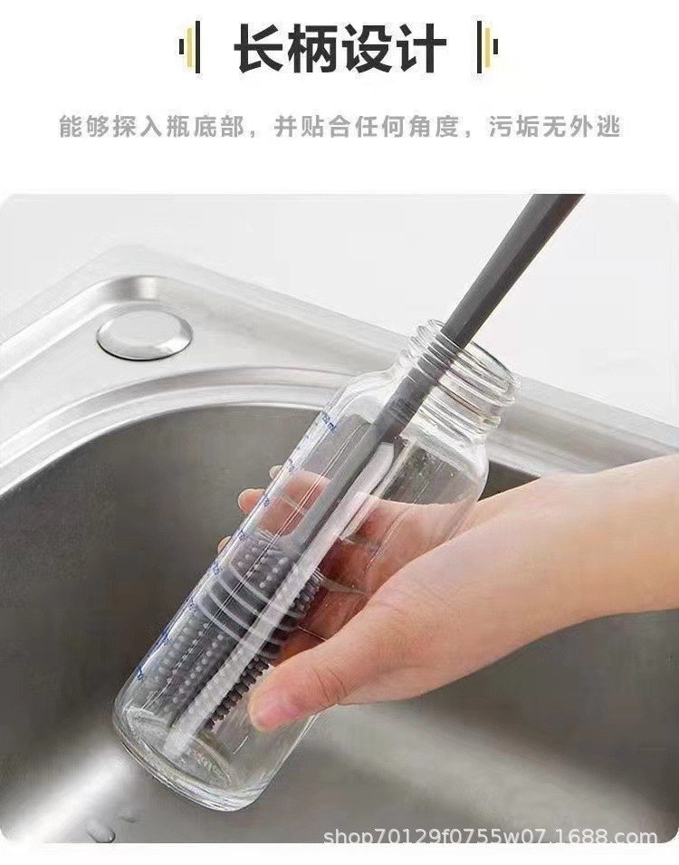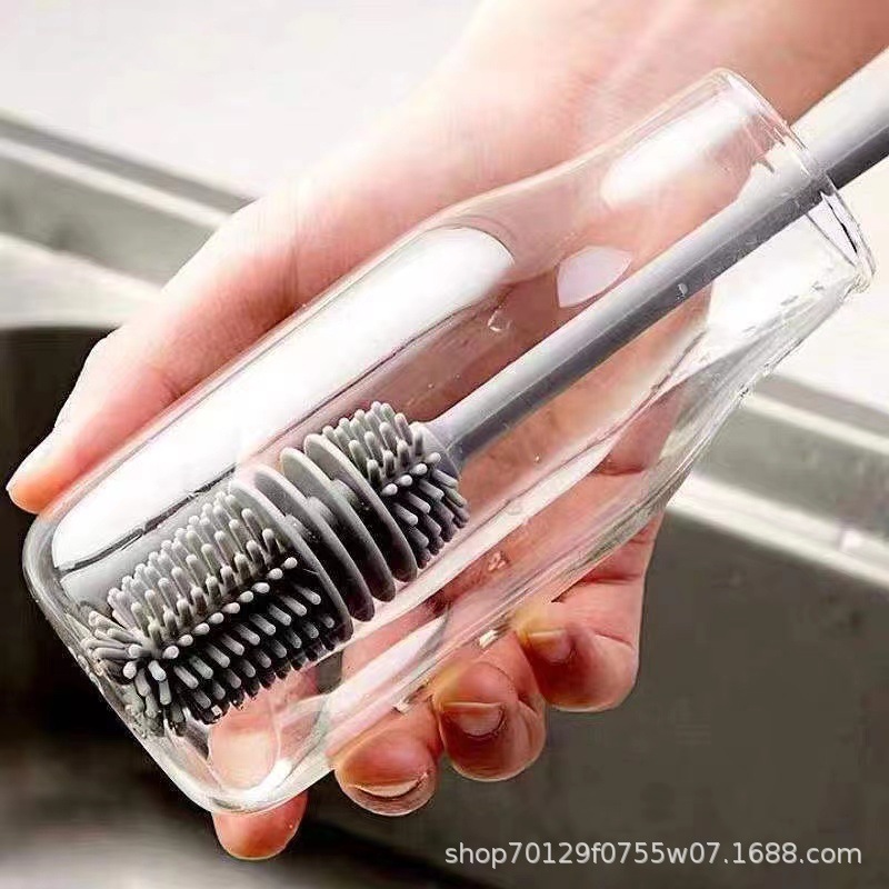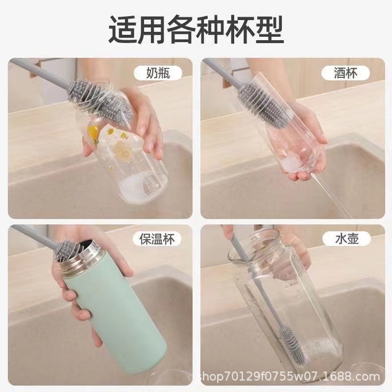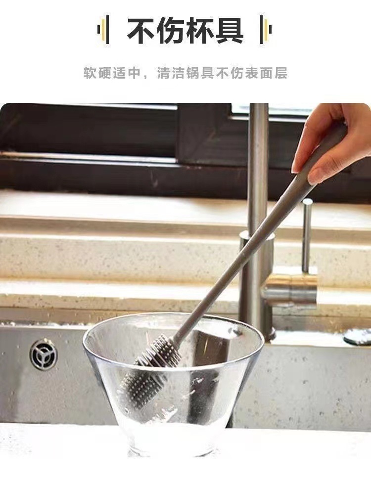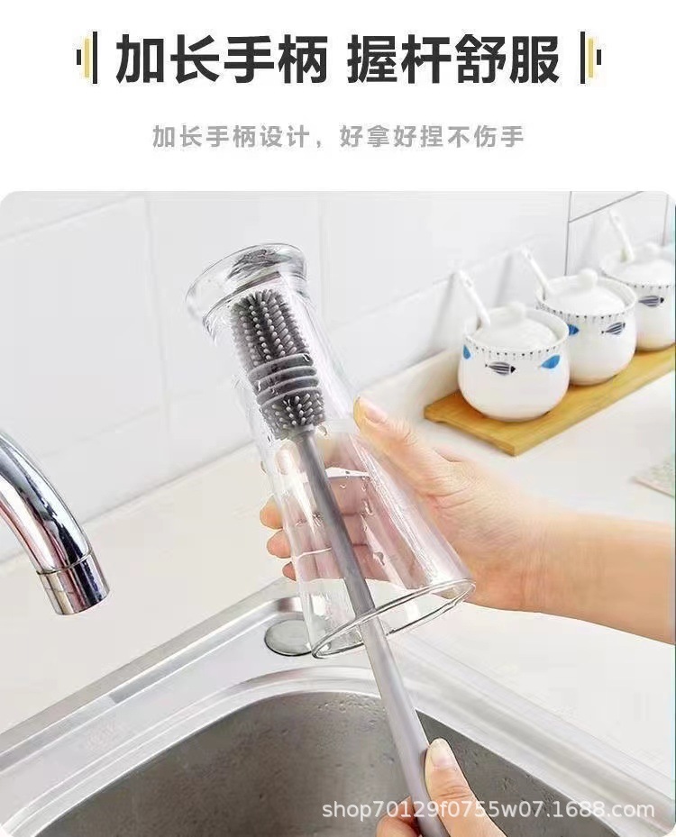 실리콘 긴 손잡이 컵 브러시 보온병 세척 브러시 긴 손잡이 유리컵 브러시 젖병 무사각 주방 청소 브러시