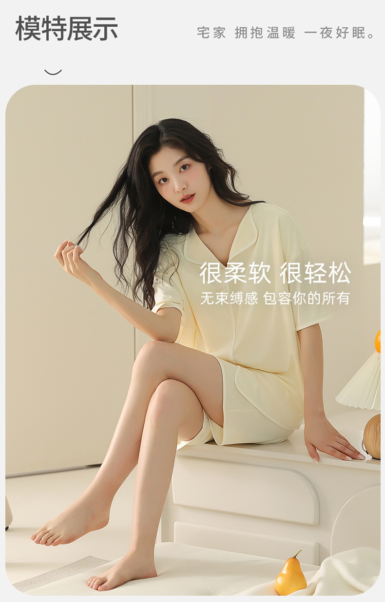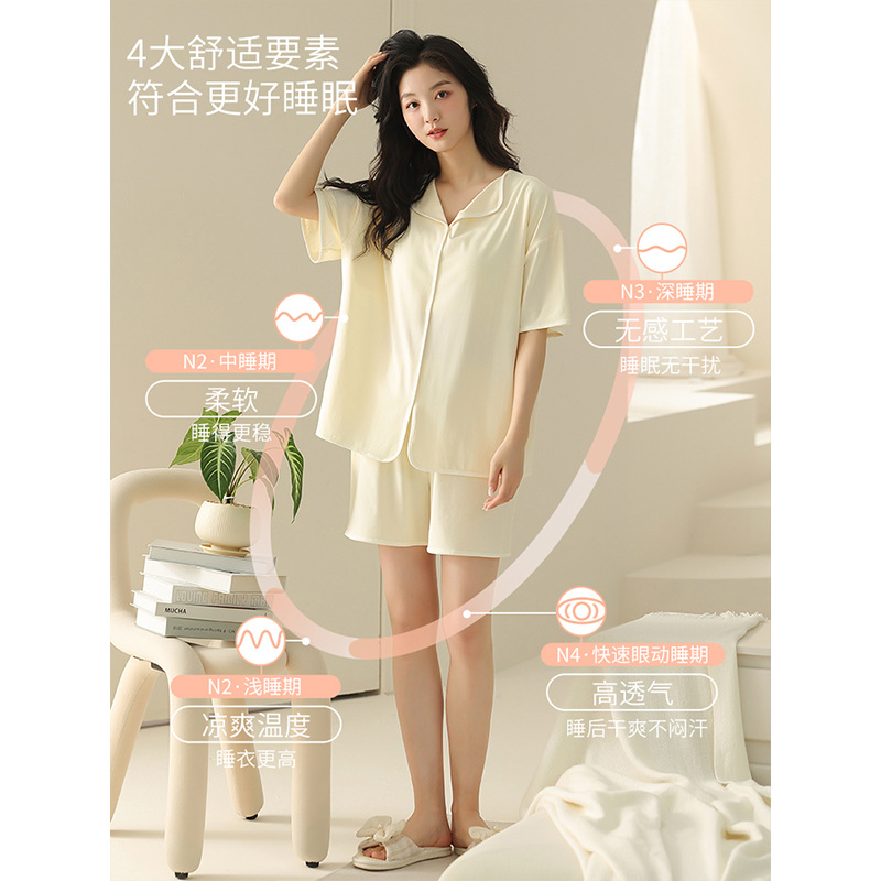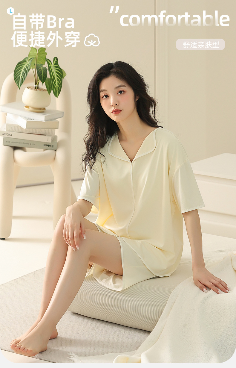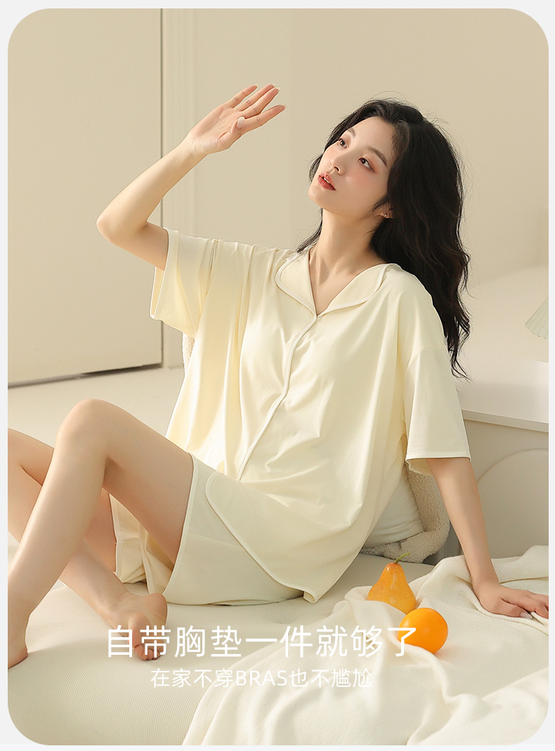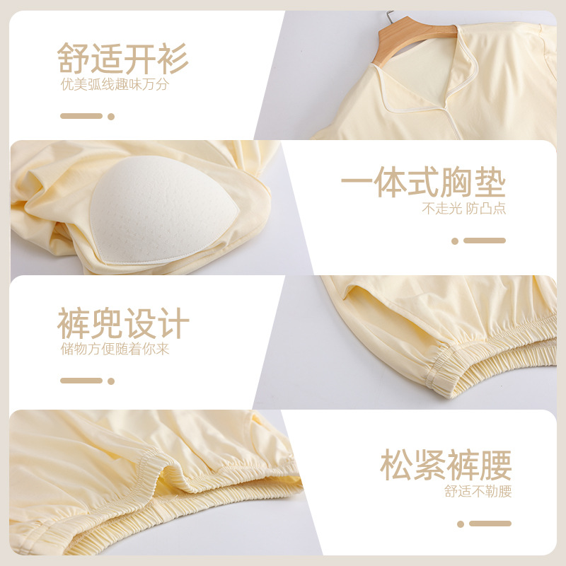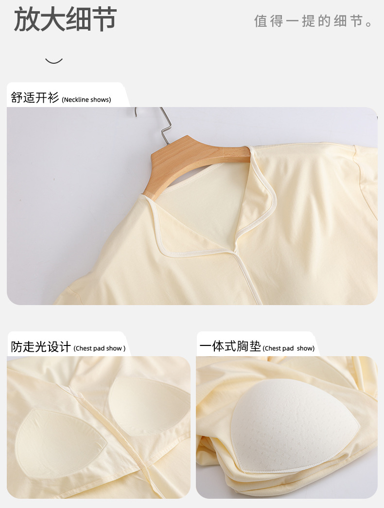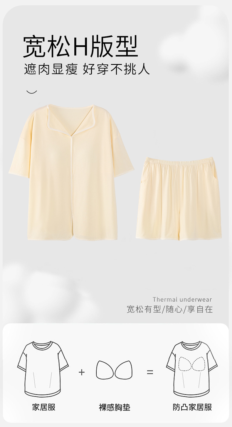 엄선된 가슴 패드가 내장된 잠옷, 여름 스타일, 2026년 신상 봄/가을 아이스 실크 면 실크 소재, 외출복으로도 착용 가능한 홈웨어 세트