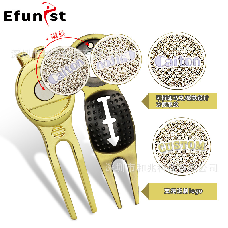 골프 그린 포크 잔디 수리 포크 아연 합금 마그네틱 마크 금속 볼 위치 라벨 녹색 액세서리 공급