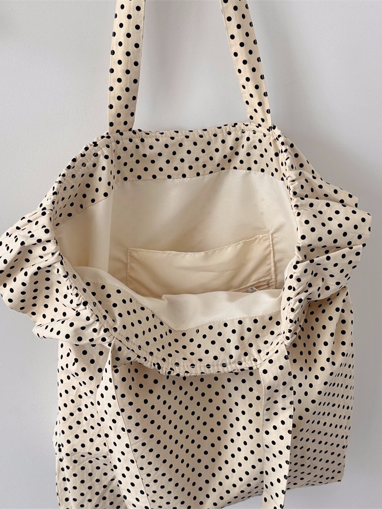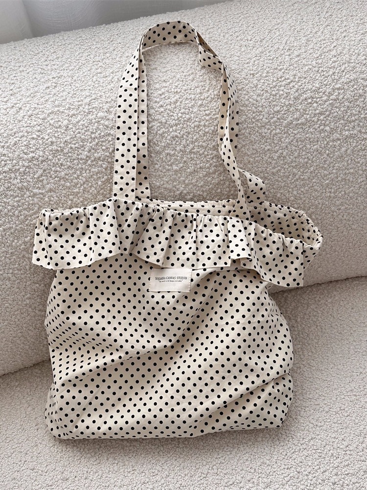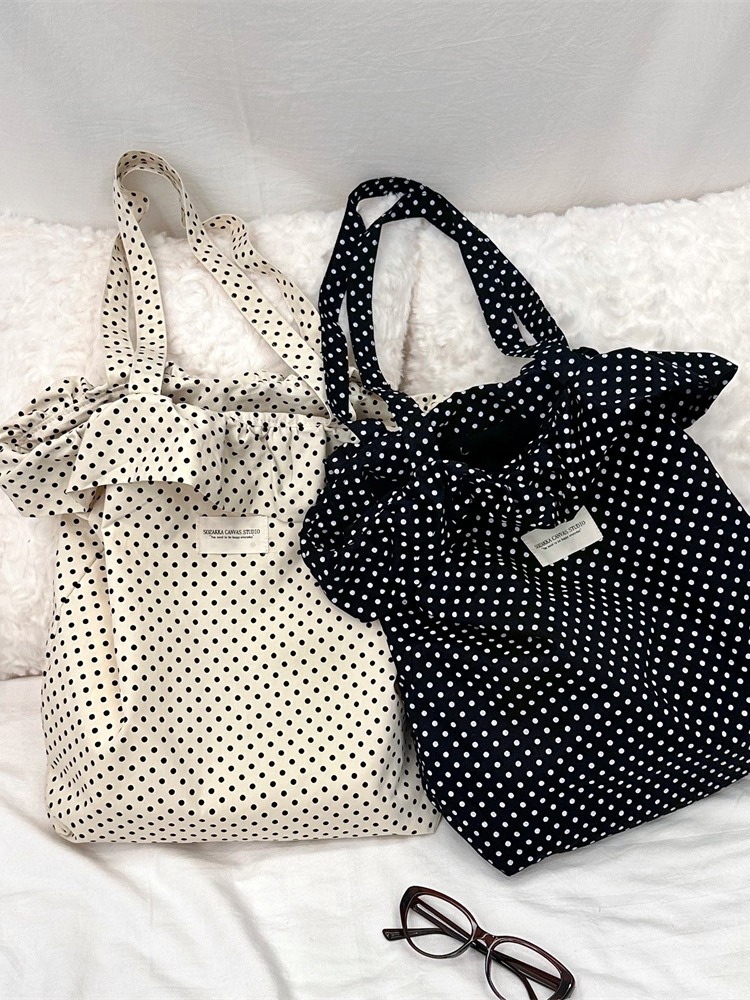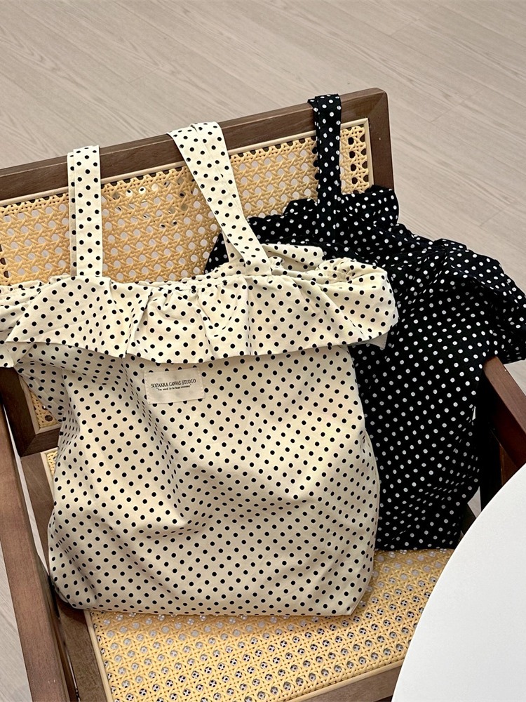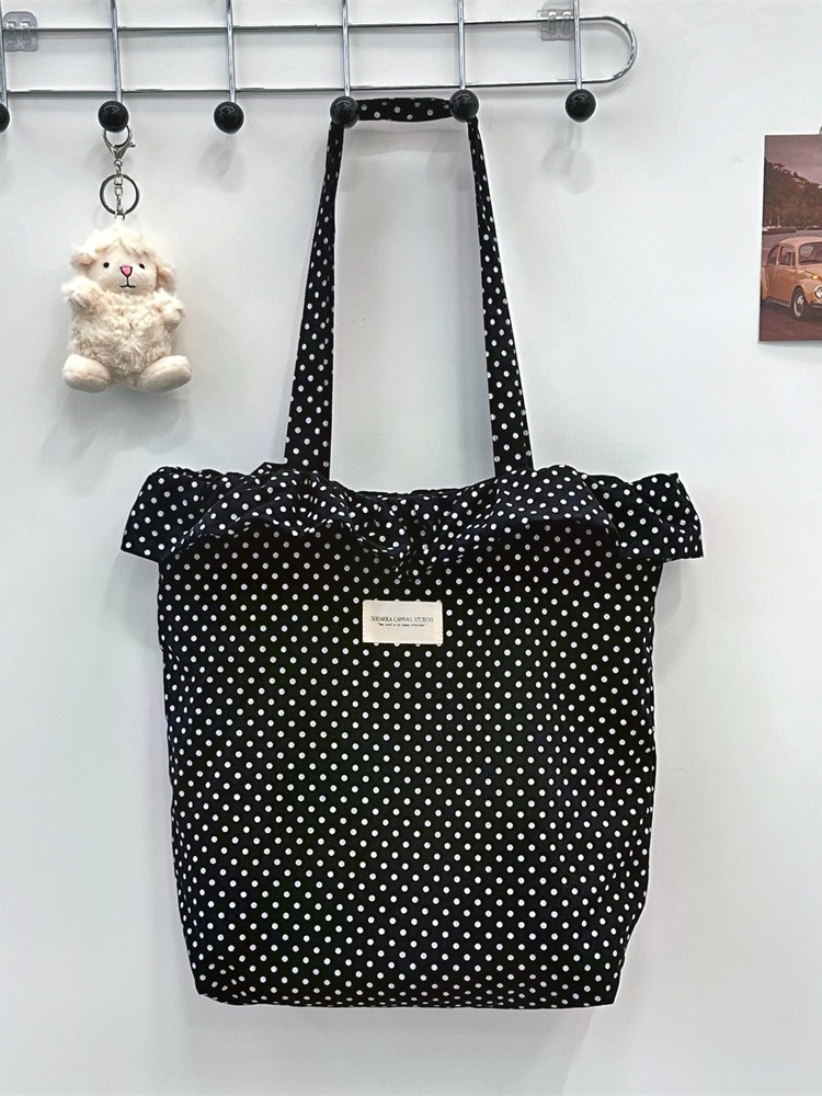 46191 한국 Polka Dot 레이스 캔버스 가방 여성용 어깨 대용량 토트 백 학생 클래스 가방