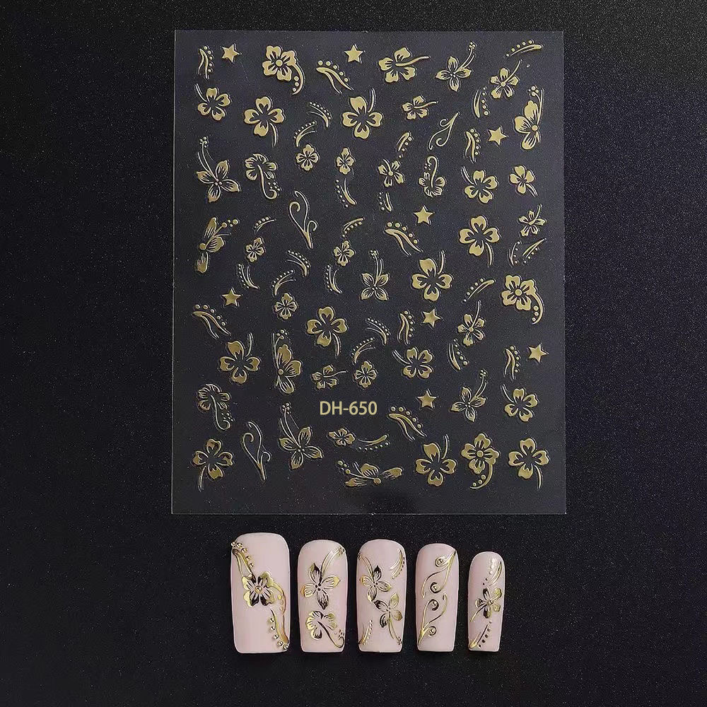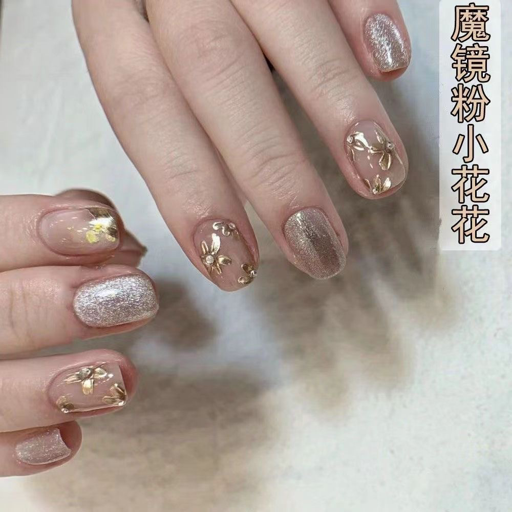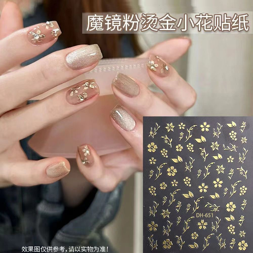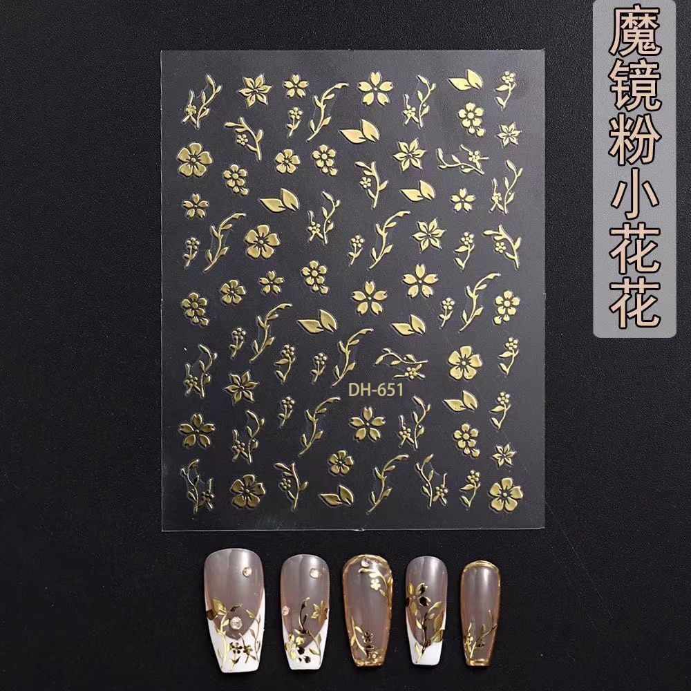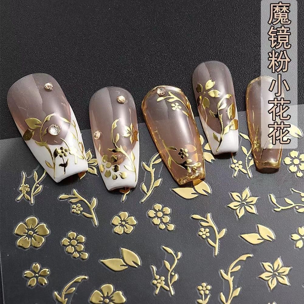 인터넷-유명한 마술 거울 분말 작은 꽃 네일 아트 스티커 빈티지 데칼 3D 방수 일본 청동 장미 네일 아트 장식