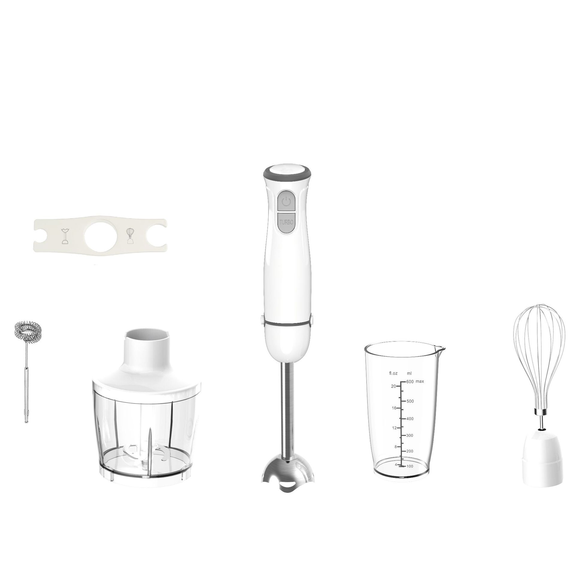 • 选配:蓝色指示灯、600ml量杯、800ml量杯(带手把)、打蛋器附件、双头搅拌钩附件、500ml切碎器、1000ml碎肉杯(四叶刀 带手把)、捣碎器、打奶泡棒、小支架、大支架等。