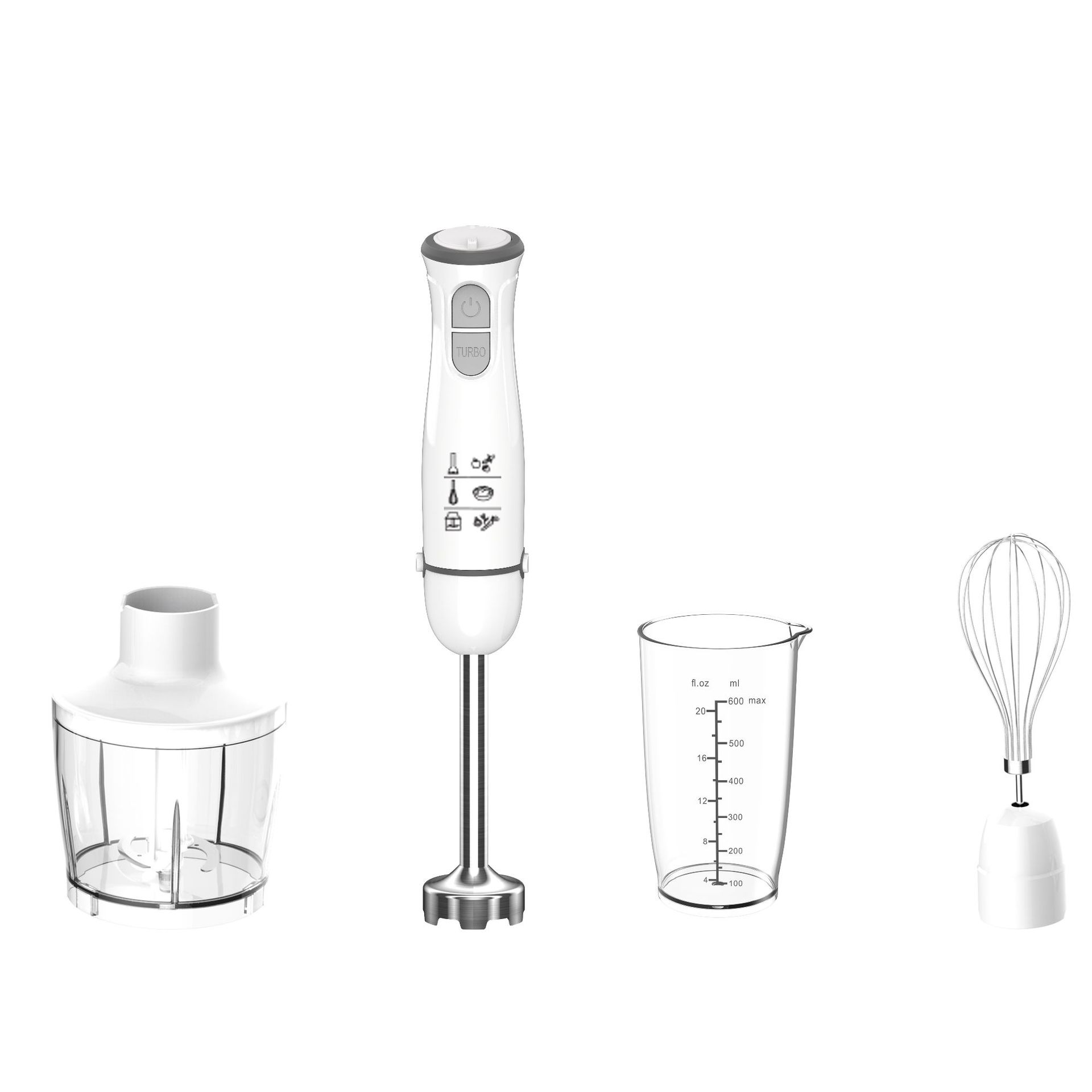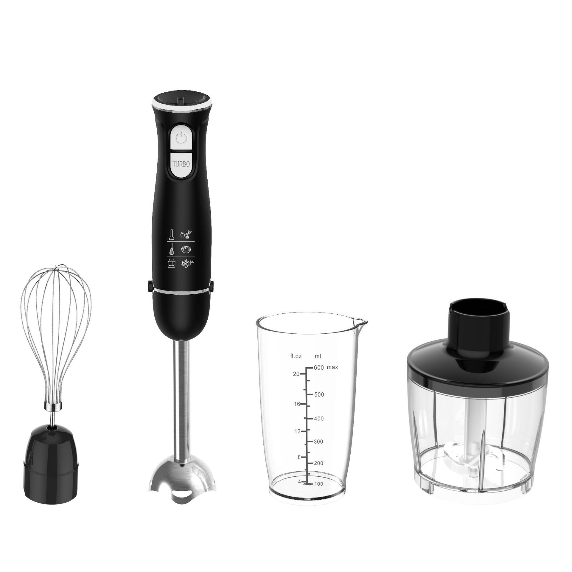 功能:打果汁、打蛋、粉碎(碎肉)、捣碎、打奶泡、混合、打冰等。