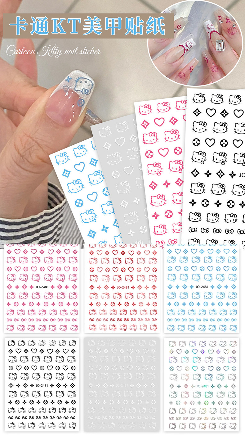 새로운 네일 아트 플랫 스티커 귀여운 만화 KT 고양이 조커 컬러 스타 사랑 고양이 마이 헤드 네일 아트 네일 스티커