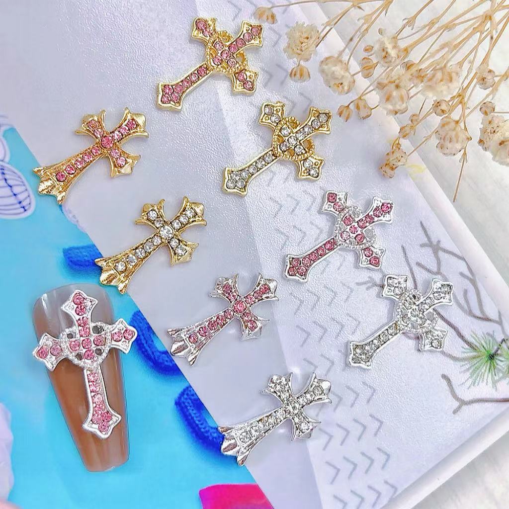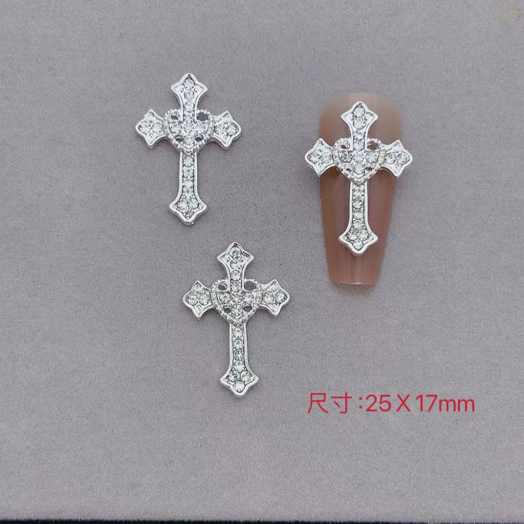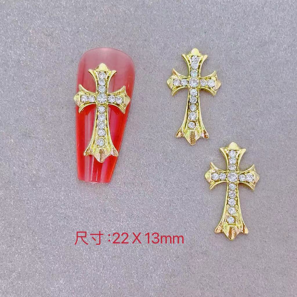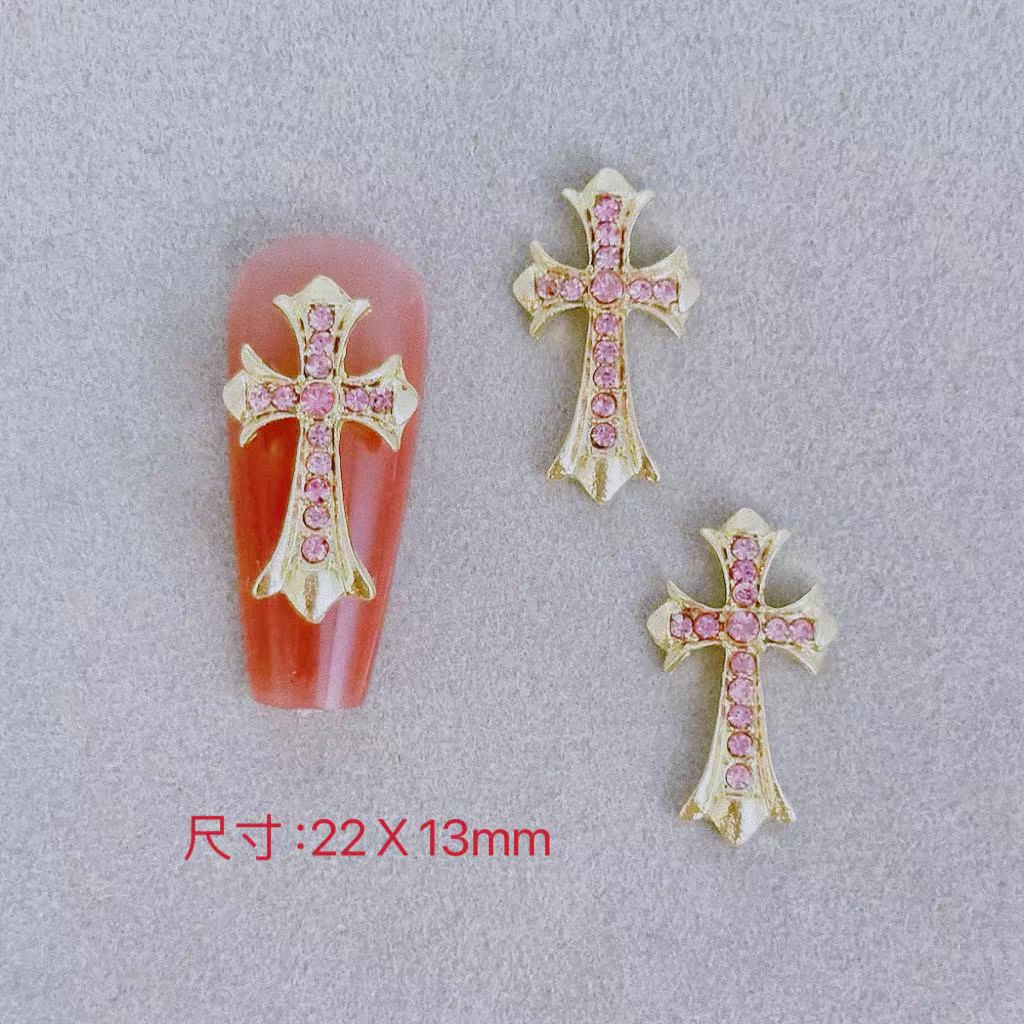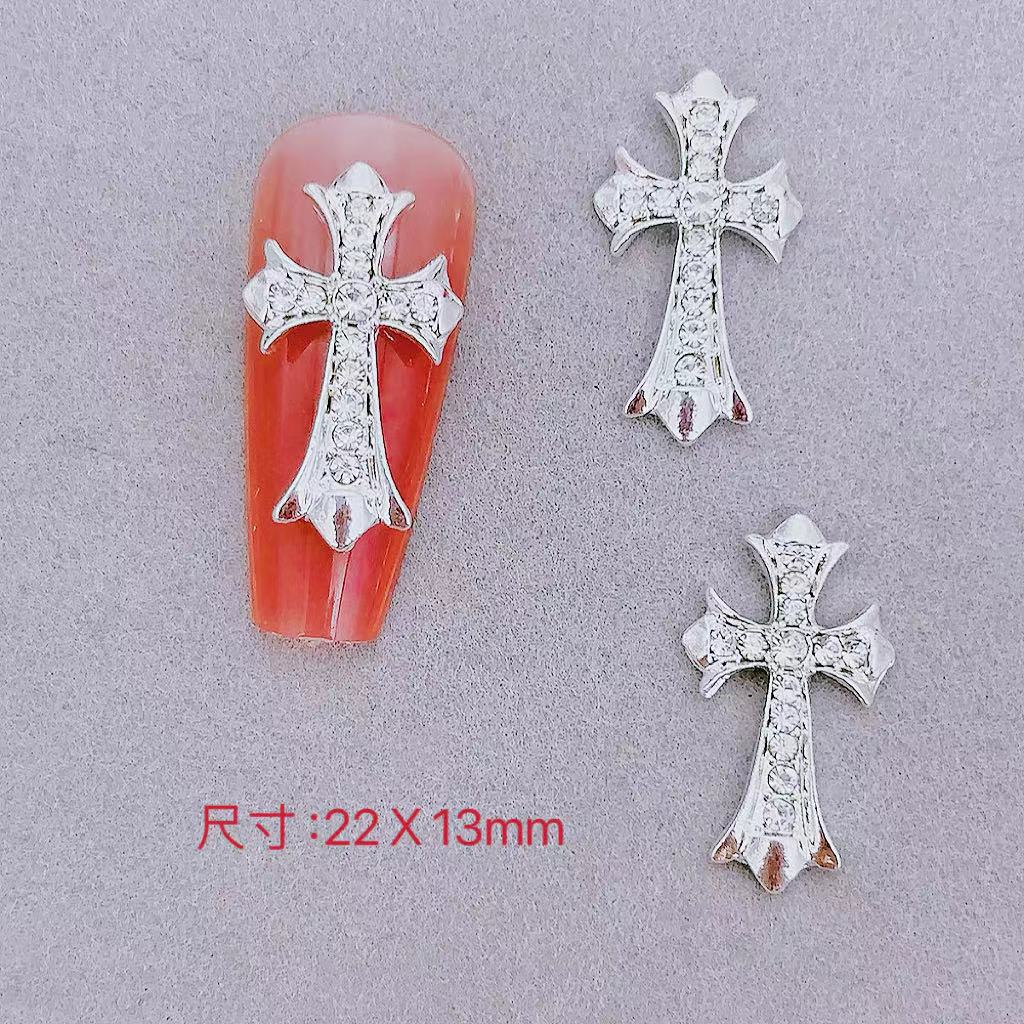 국경 새로운 네일 아트 합금 큰 사랑 크로스 보석 간단한 3 차원 컬러 다이아몬드 네일 다이아몬드 액세서리 도매