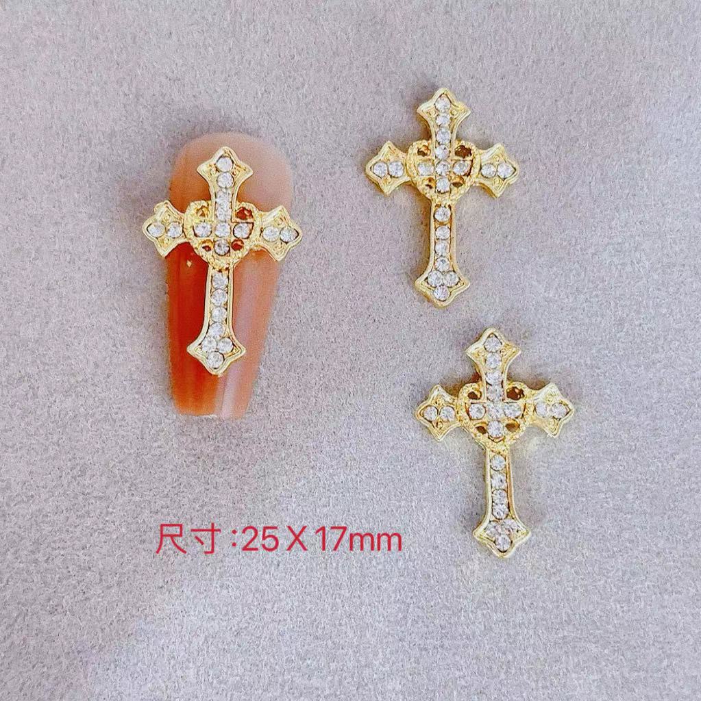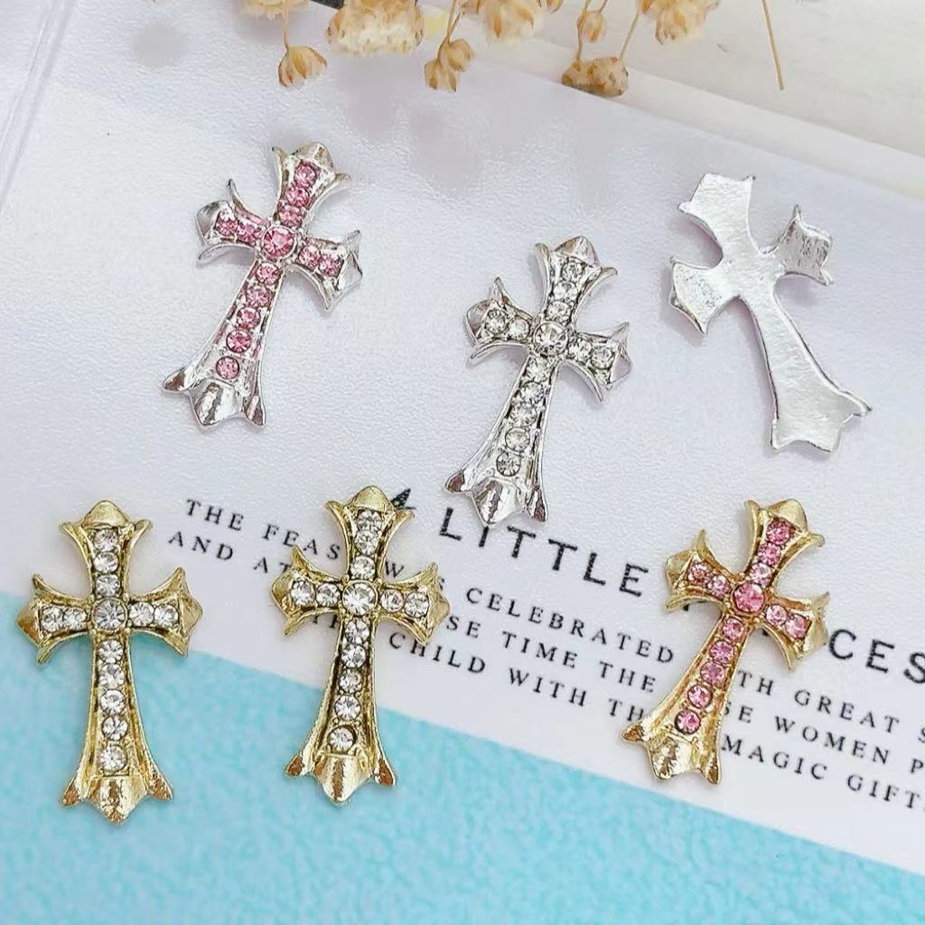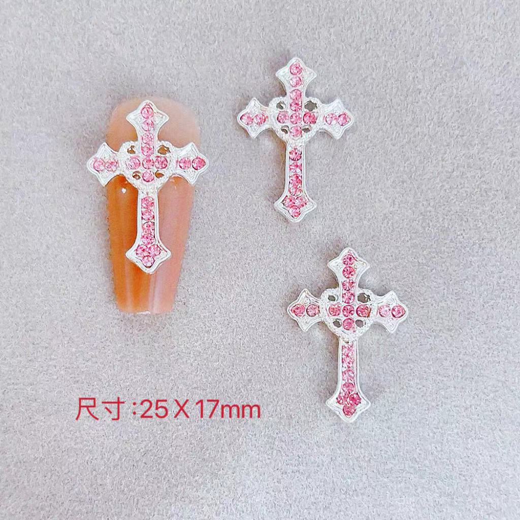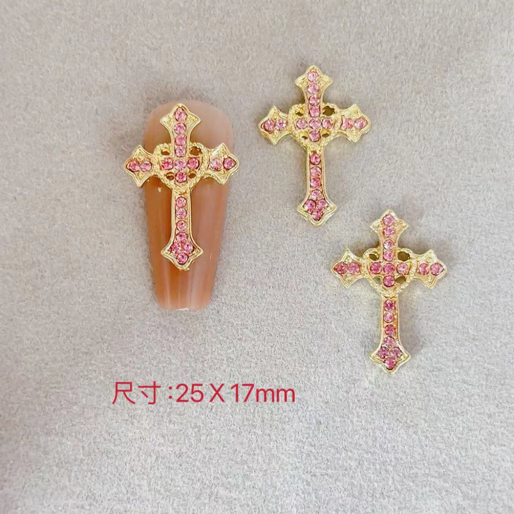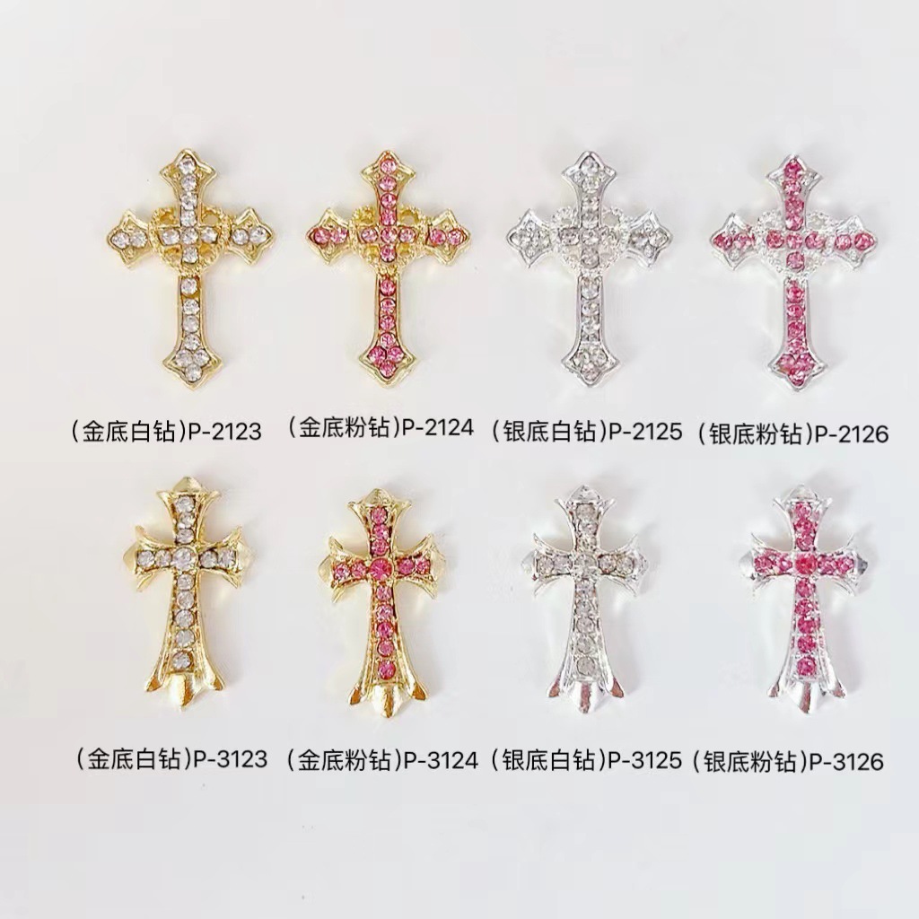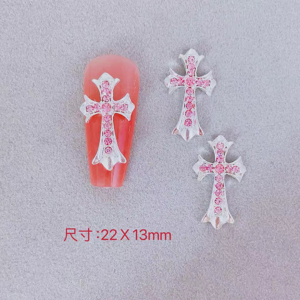 국경 새로운 네일 아트 합금 큰 사랑 크로스 보석 간단한 3 차원 컬러 다이아몬드 네일 다이아몬드 액세서리 도매