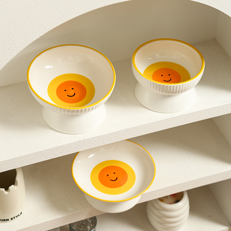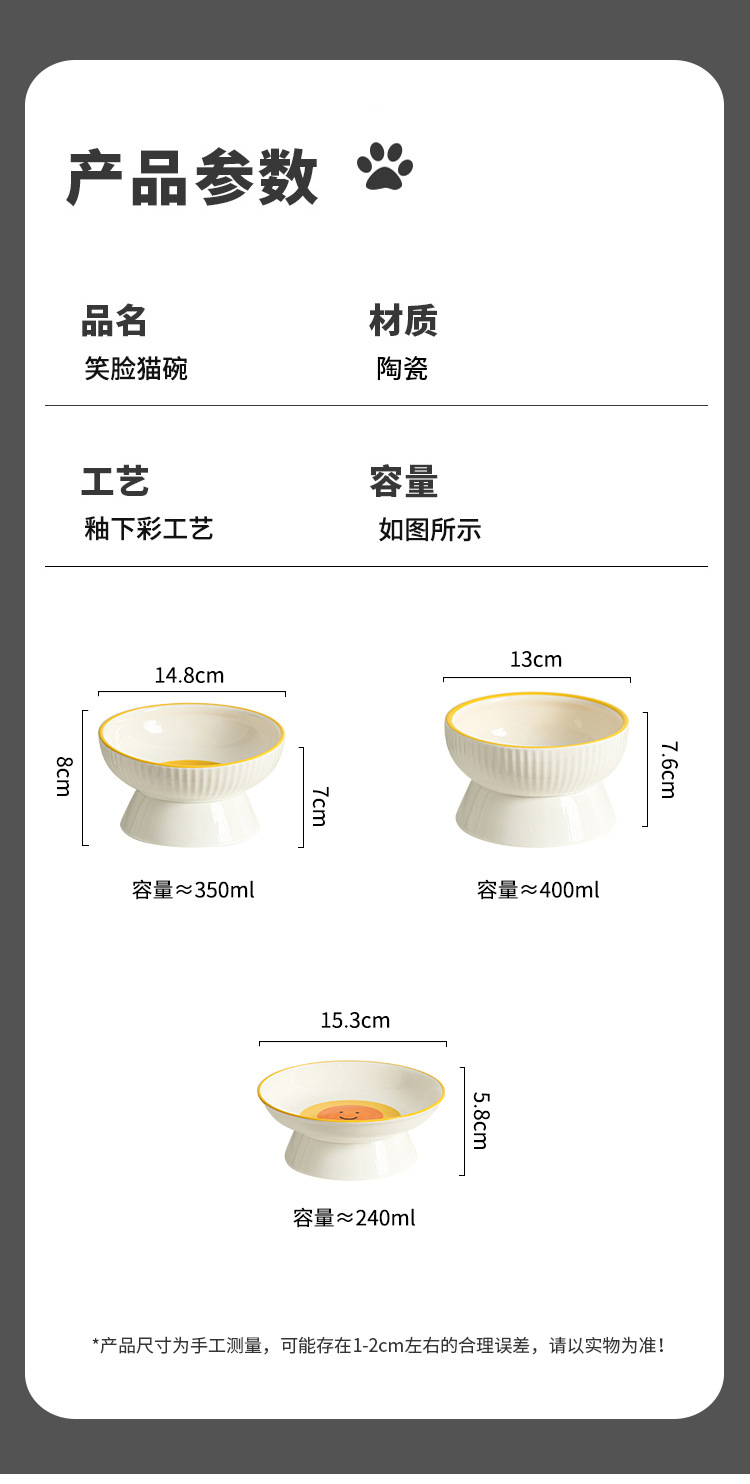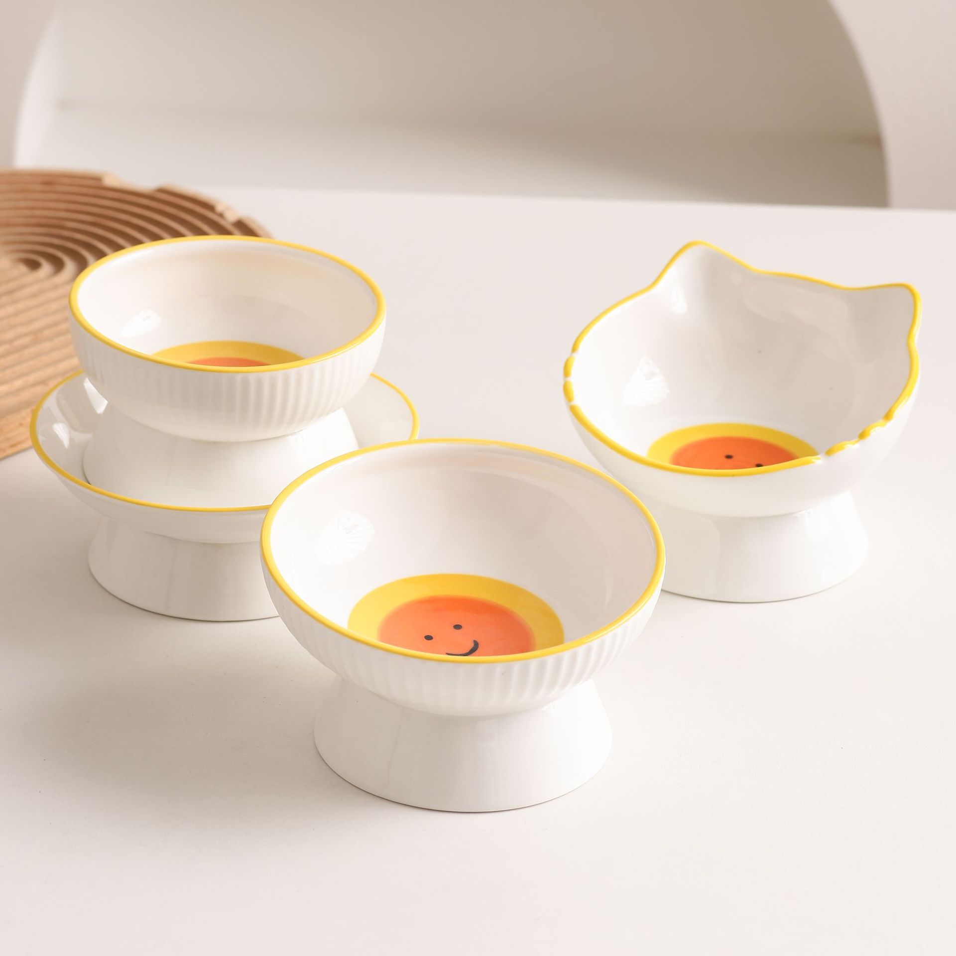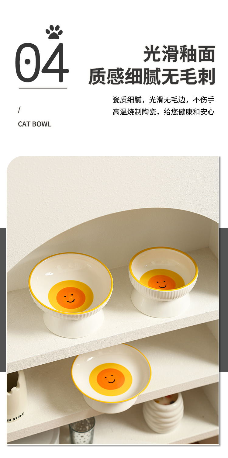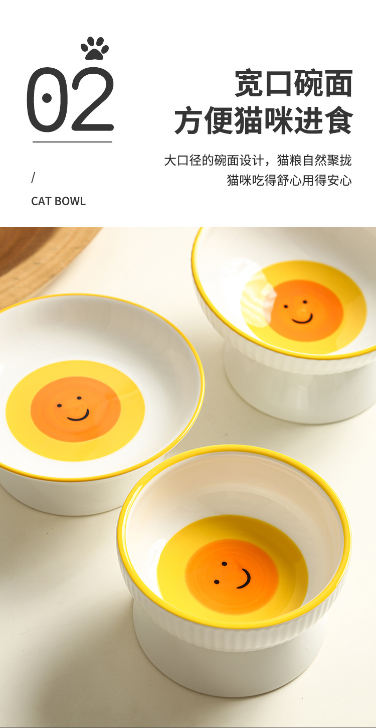 웃는 얼굴 유약 고양이 그릇 세라믹 고양이 그릇 음식 그릇 개 그릇 밥 그릇 물 그릇 삼각형 그릇 안티 노크 애완 동물 용품