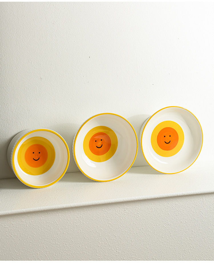 손으로 그린 ​​웃는 고양이 귀 그릇
