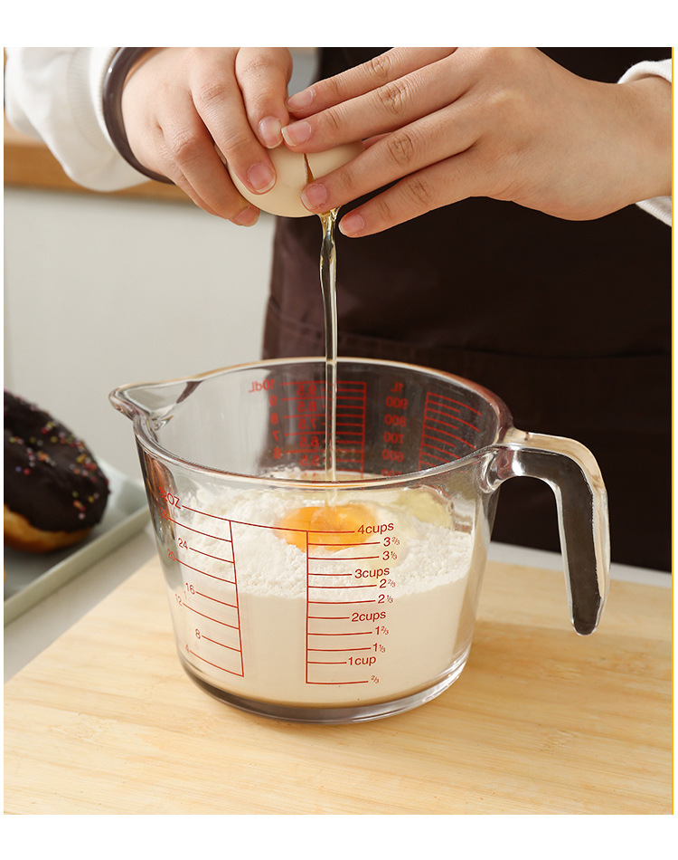 측정 컵 핸들 유리 대용량 스케일 핸들 미터 가정용 고온 저항하는 주방 우유 베이킹 계란