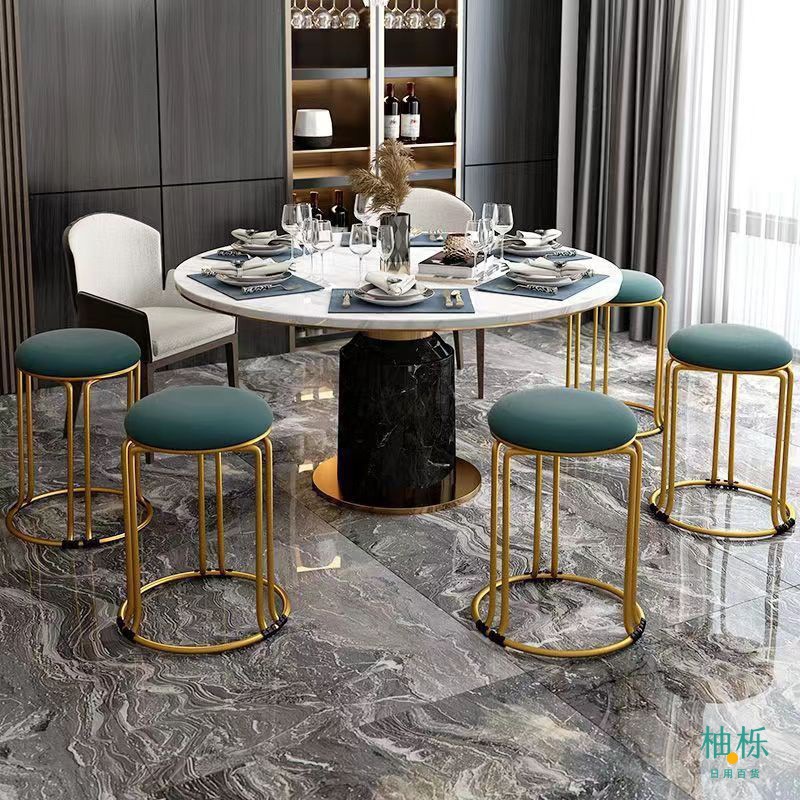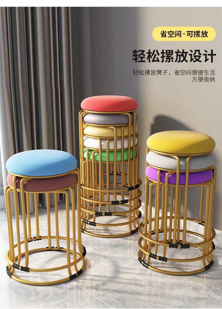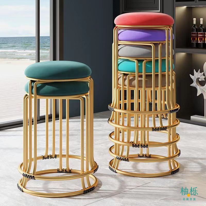 둥근 의자 가정용 현대 간단한 식탁 높은 쌓을 수있는 플라스틱 쌓을 수있는 의자 빛 고급 식당 의자 대기 작은 둥근 의자