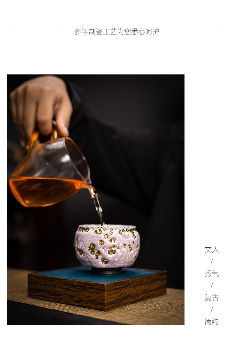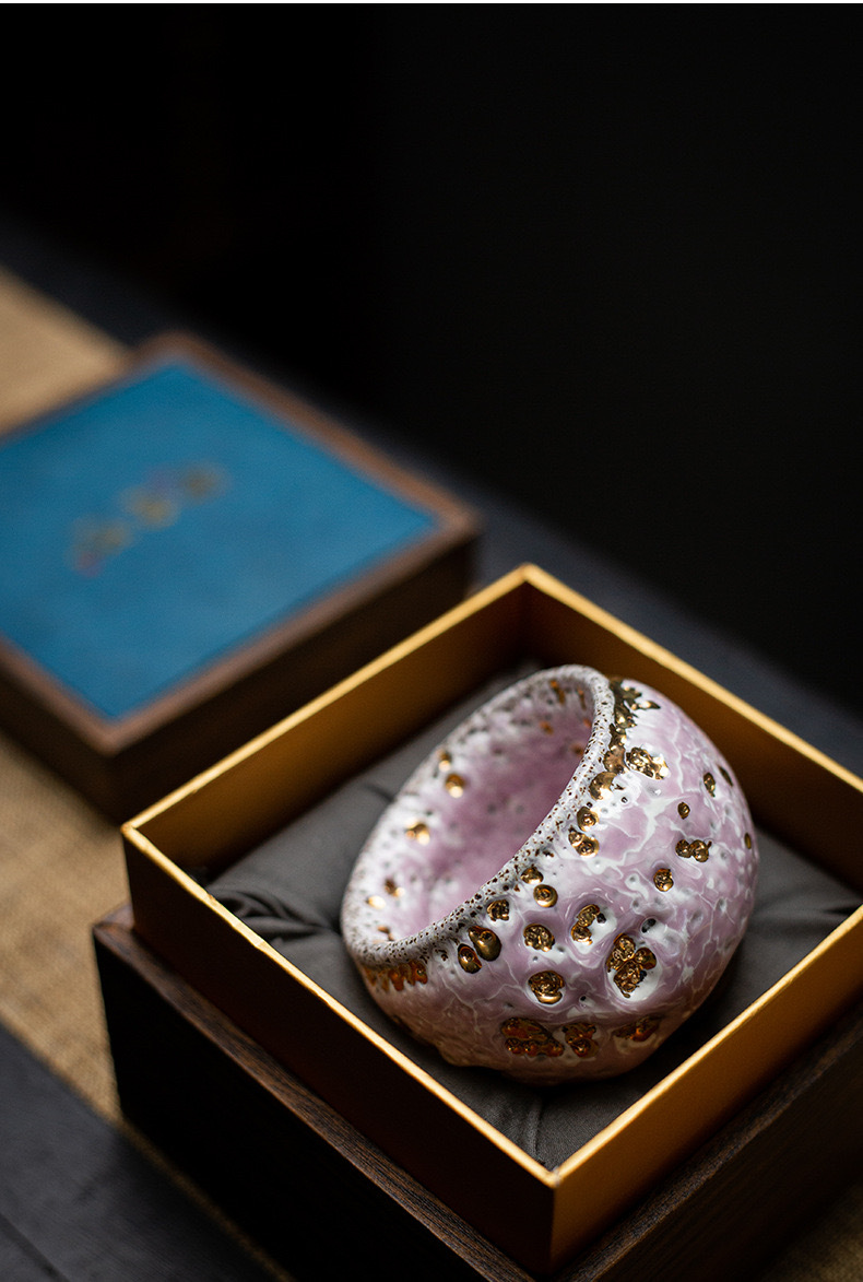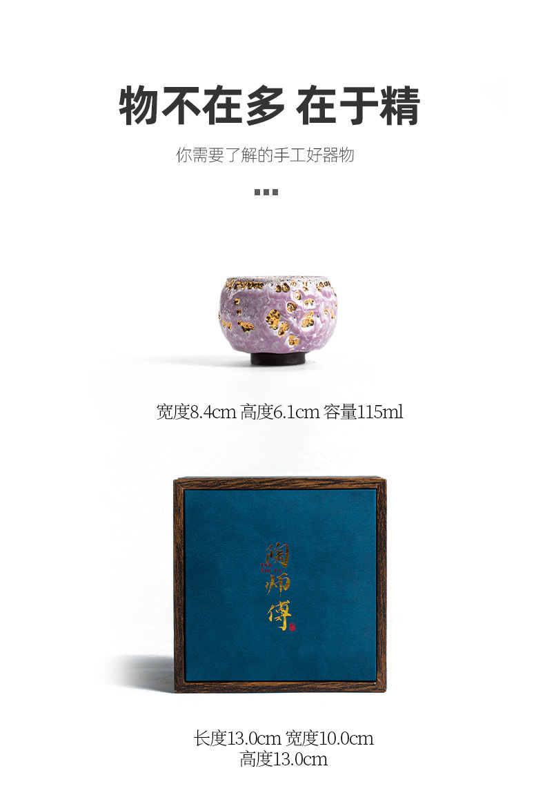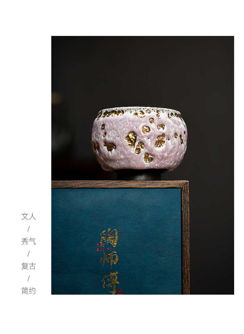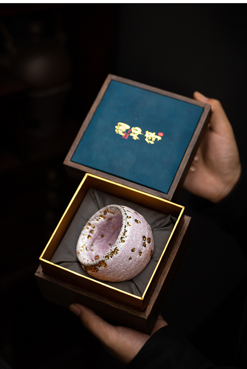 Zhiye 불타는 티 컵 파우더 여성 Zhiye 아이언 피트 마스터 컵 일본식 티 보울 웜홀 수제 골드 선물 상자 선택