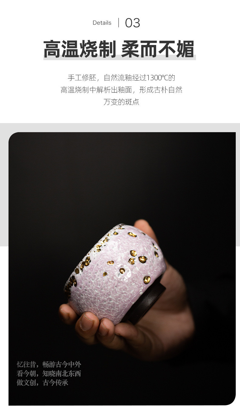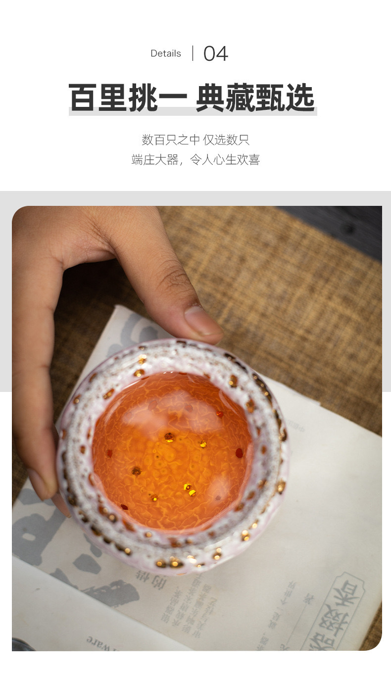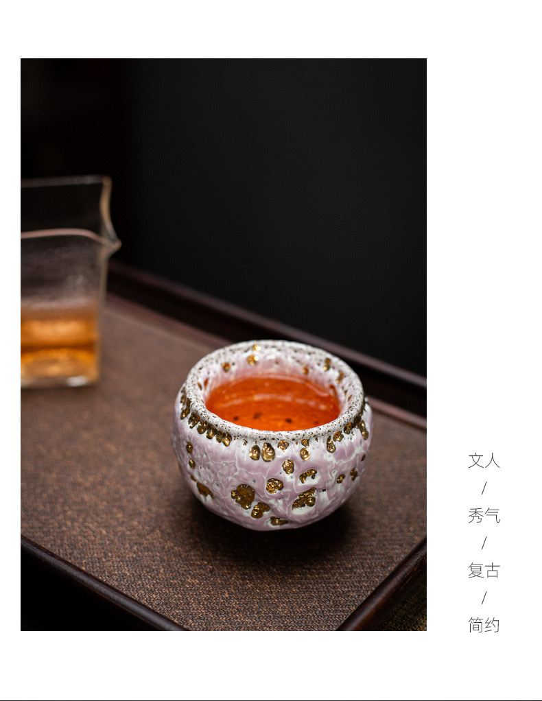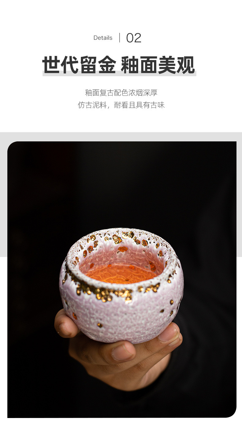 Zhiye 불타는 티 컵 파우더 여성 Zhiye 아이언 피트 마스터 컵 일본식 티 보울 웜홀 수제 골드 선물 상자 선택