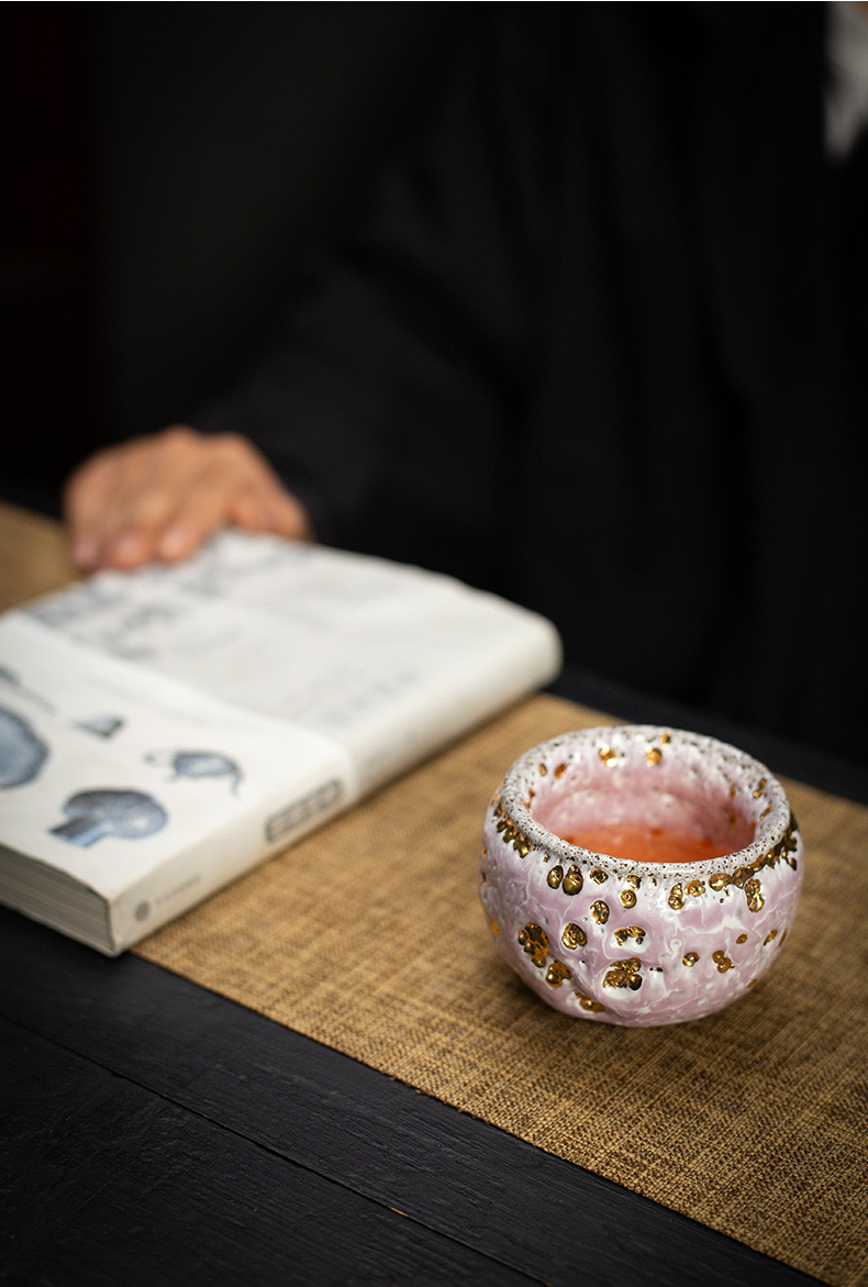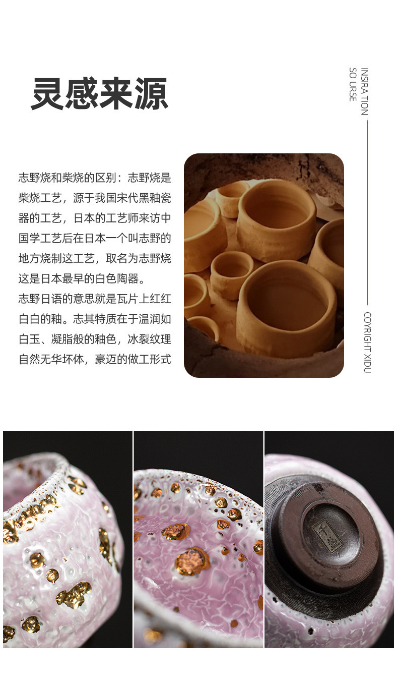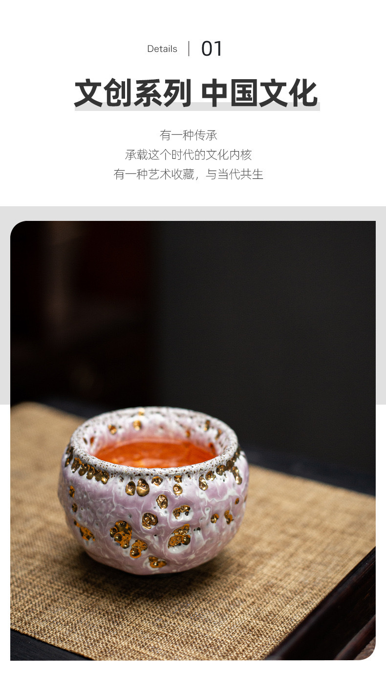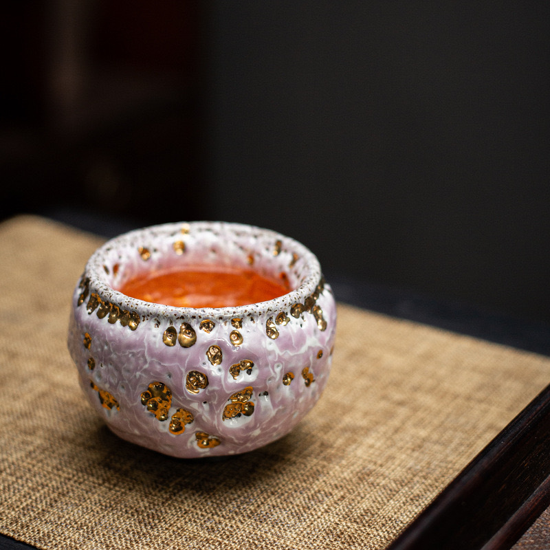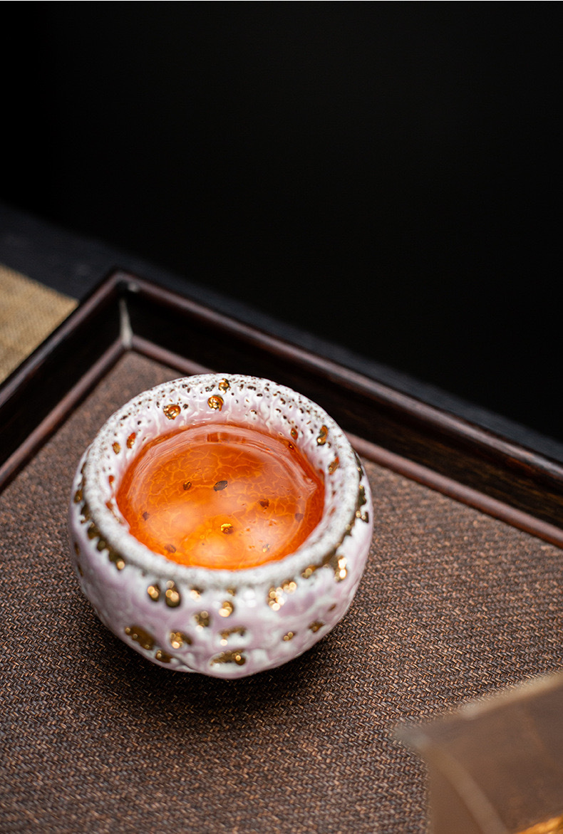 Zhiye 불타는 티 컵 파우더 여성 Zhiye 아이언 피트 마스터 컵 일본식 티 보울 웜홀 수제 골드 선물 상자 선택